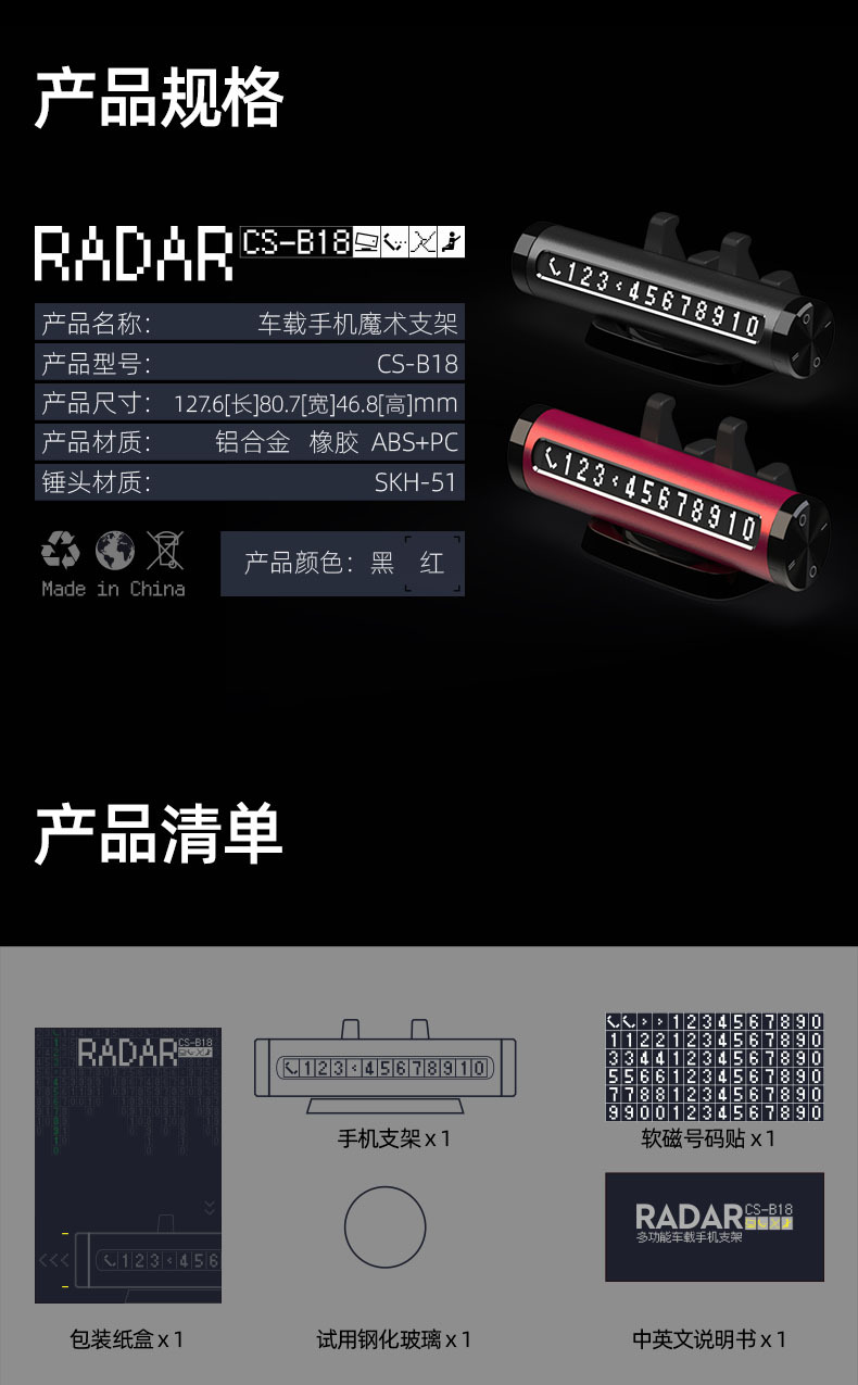 펄스 레드 제품 * 1 / 휴대폰 거치대 받침대 (조립 완료) / 자석 번호 스티커 6세트 / 테스트 유리 * 1
