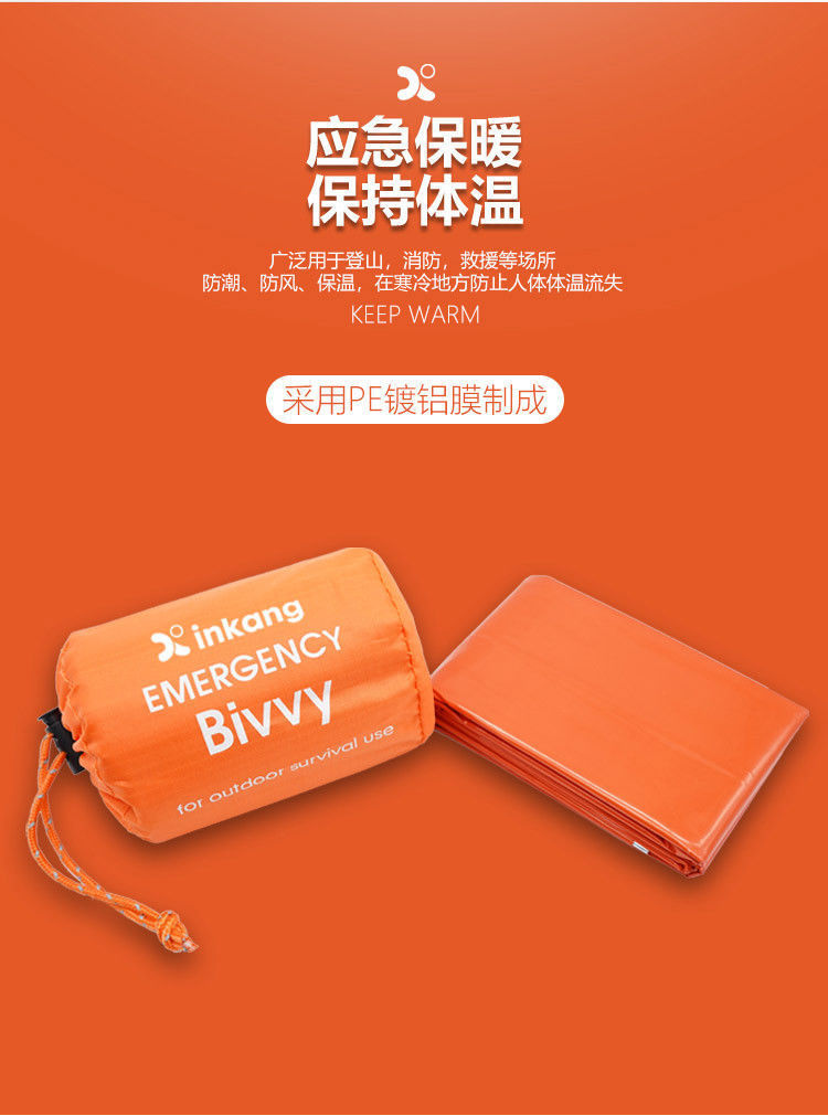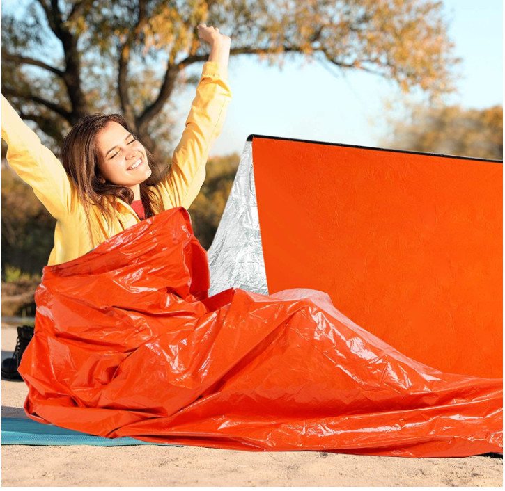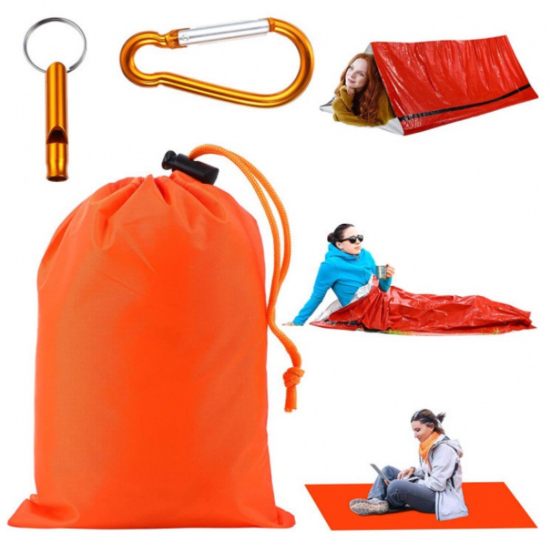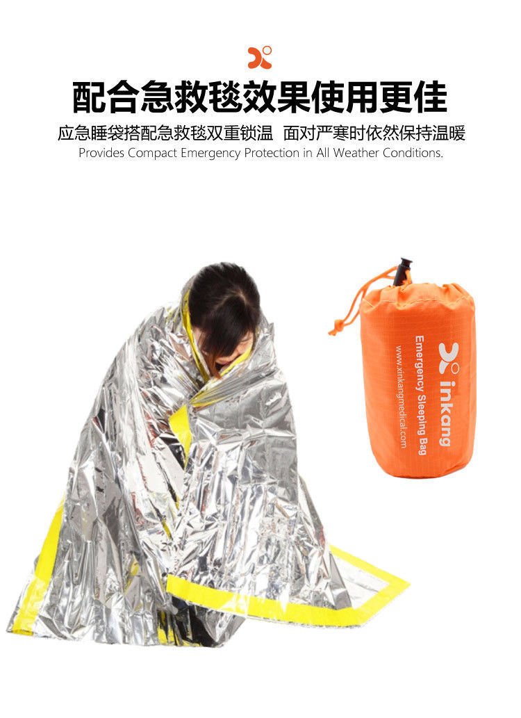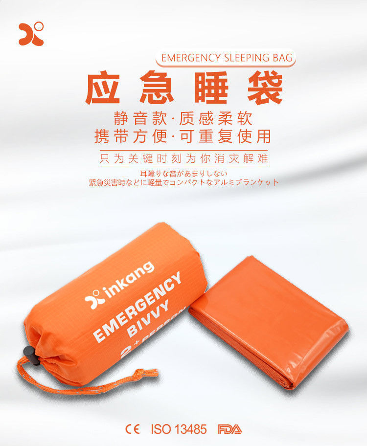 응급 처치용 침낭 보온 담요 26미크론 오렌지색 PE 알루미늄 필름 캠핑 생존 비상용 싱글 침낭 해외배송