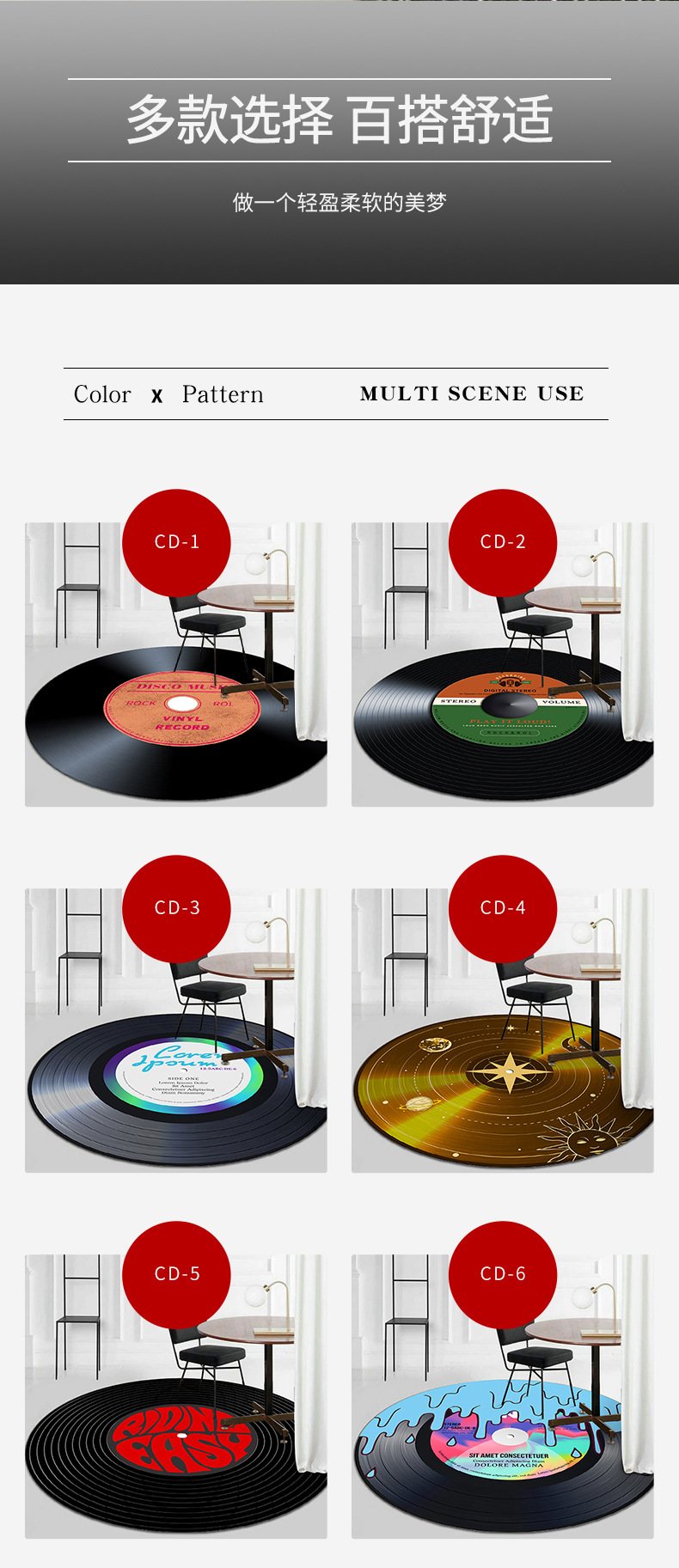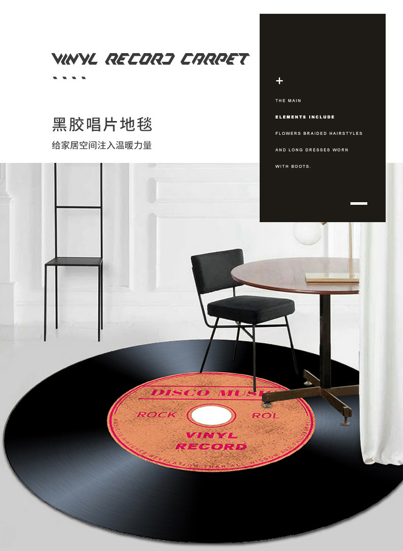 국경 간 크리에이티브 비닐 CD 기록 거실 카펫 라운드 데스크 컴퓨터 의자 바닥 매트 교수형 바구니 커피 테이블 매트 침실