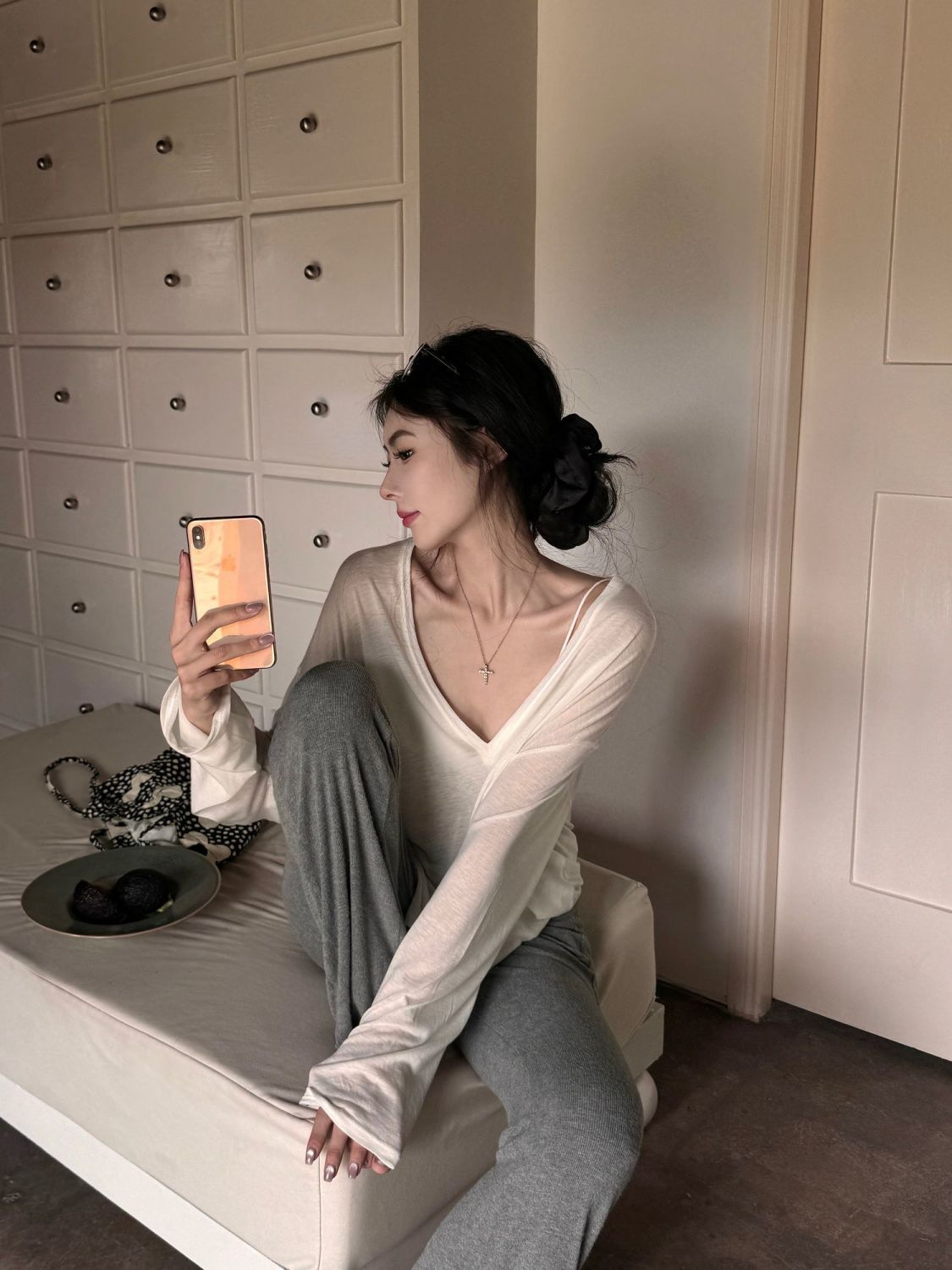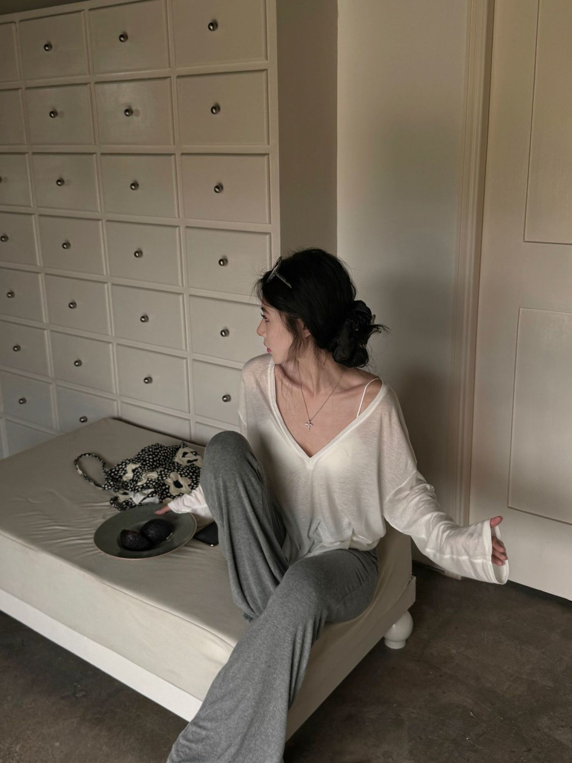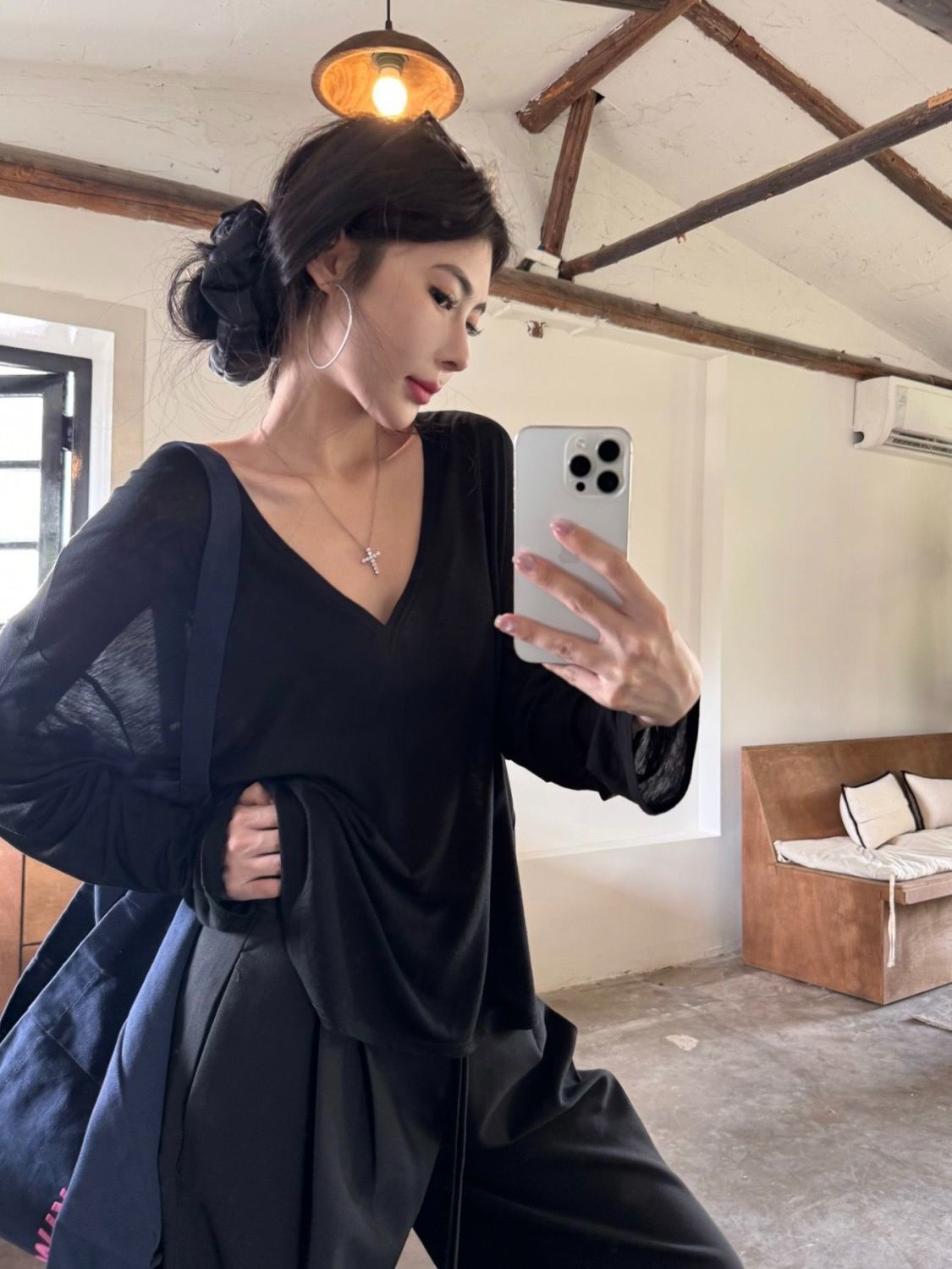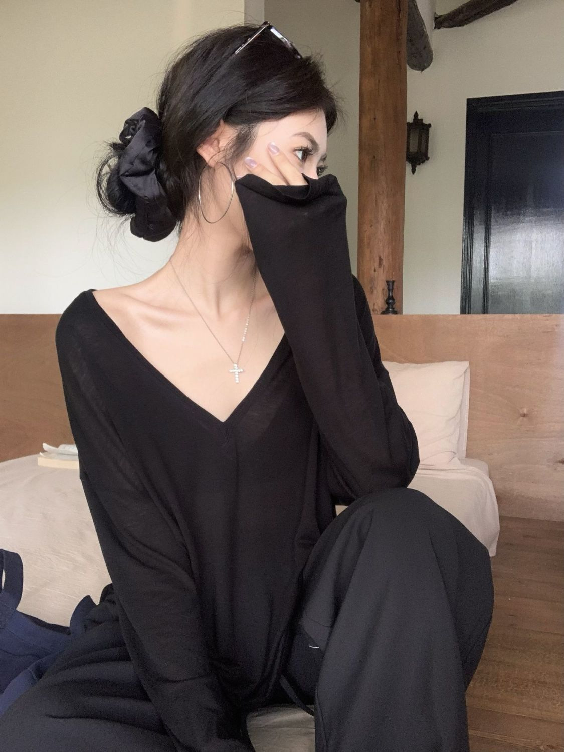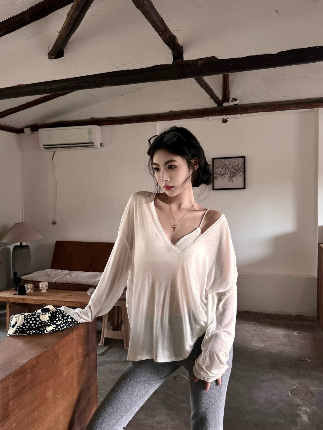 흰색 얇은 마이크로 투명 V 넥 긴팔 티셔츠 여성용 여름 느슨한 태양 보호 블라우스 캐주얼 게으른 스타일 오버볼