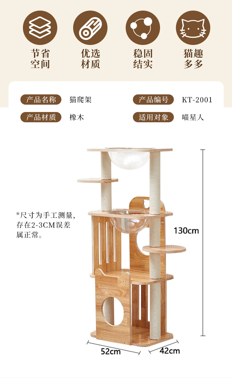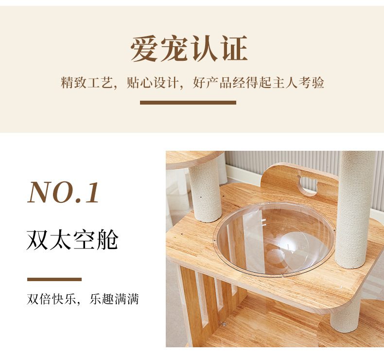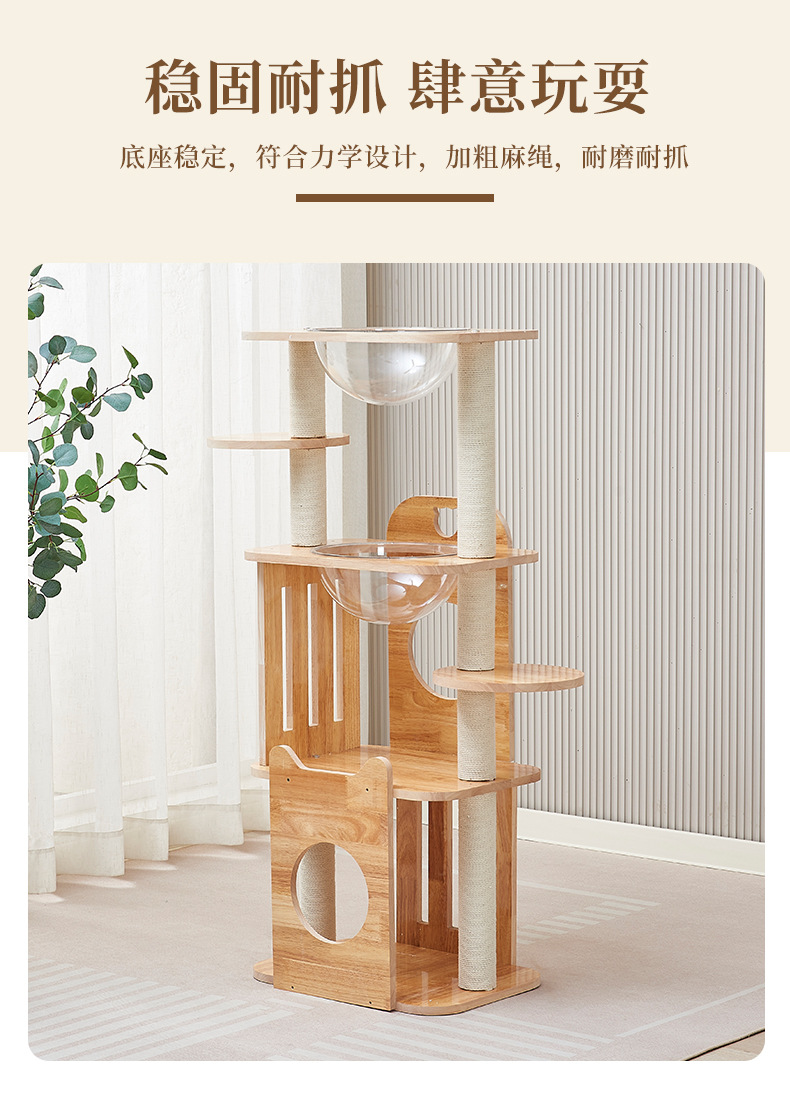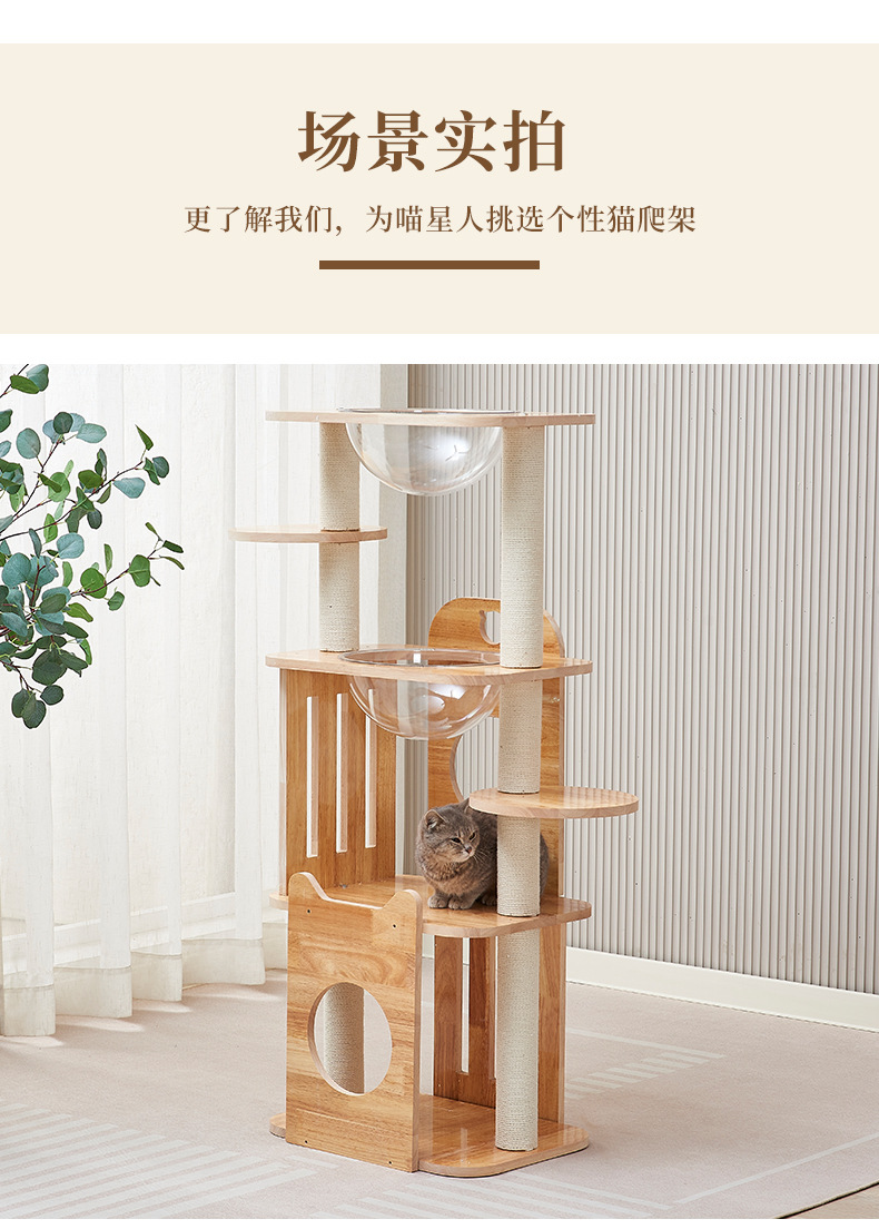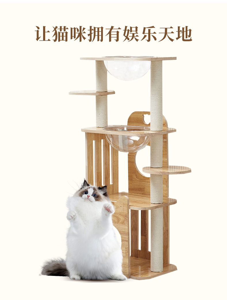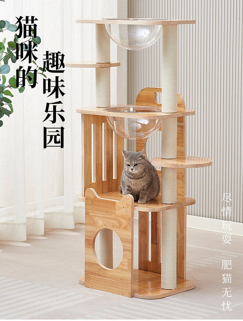 고급 오크 고양이 클라이밍 프레임, 무취 친환경 고양이 용품, 럭셔리 스페이스 캡슐 고양이 스크래쳐, 다층 고양이 클라이밍 프레임