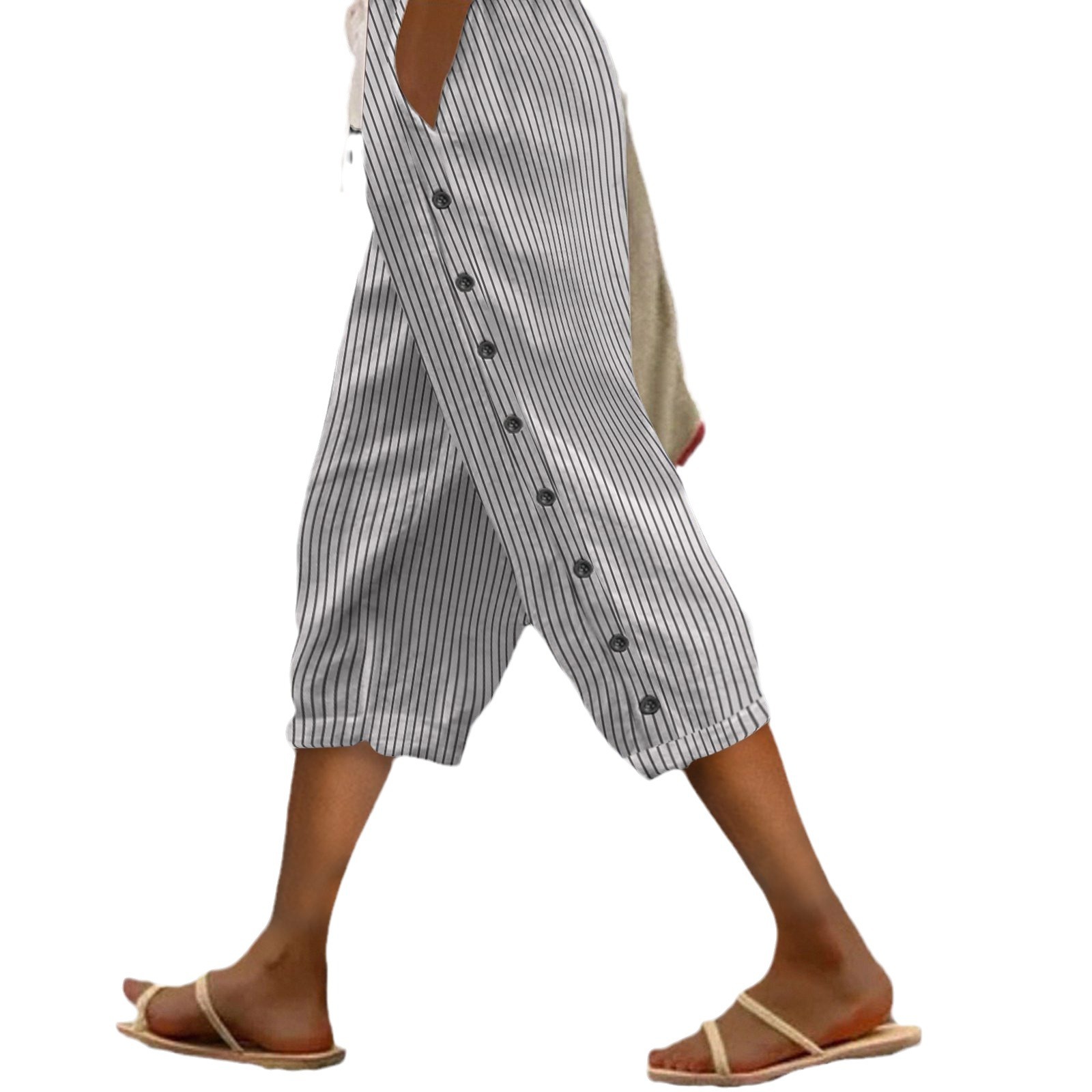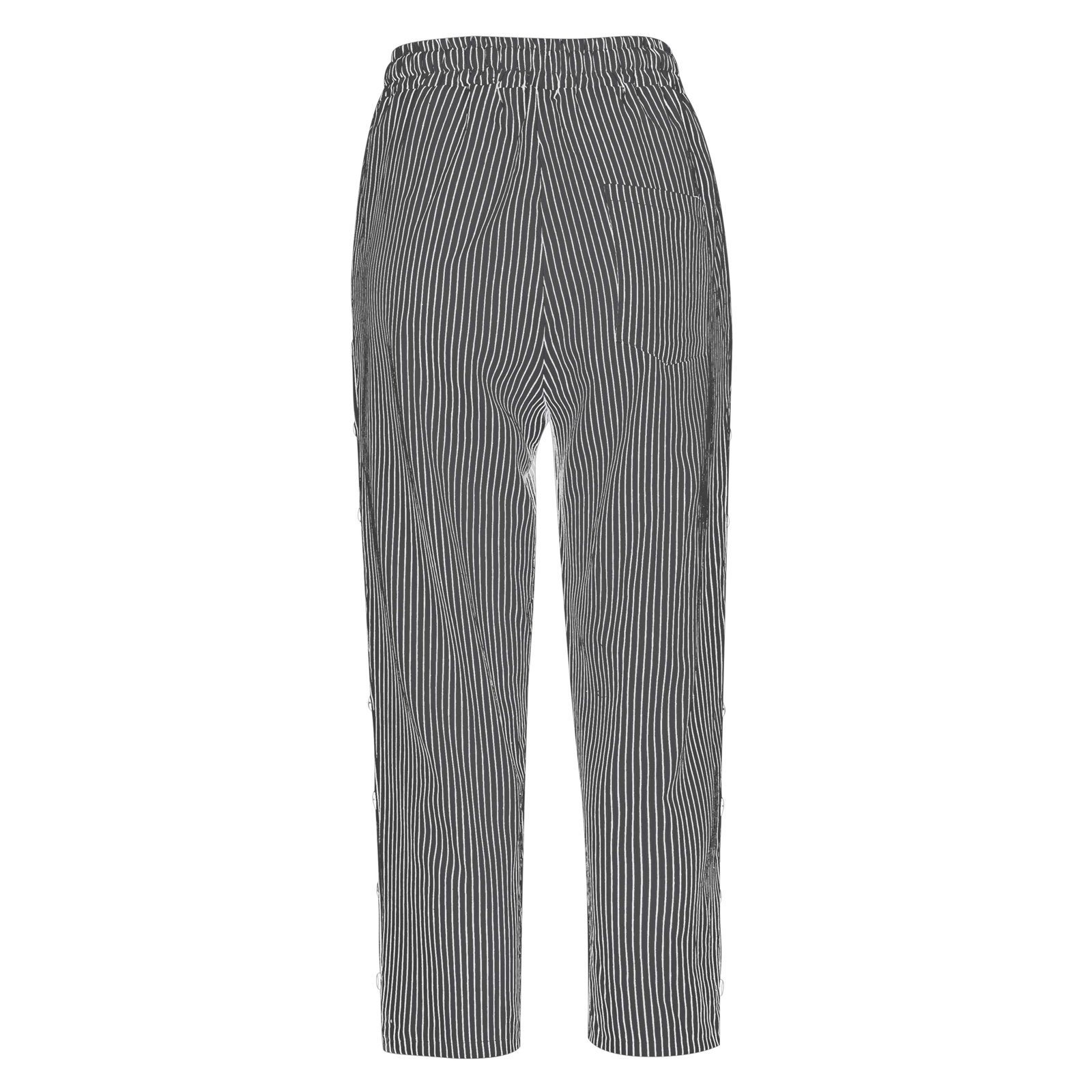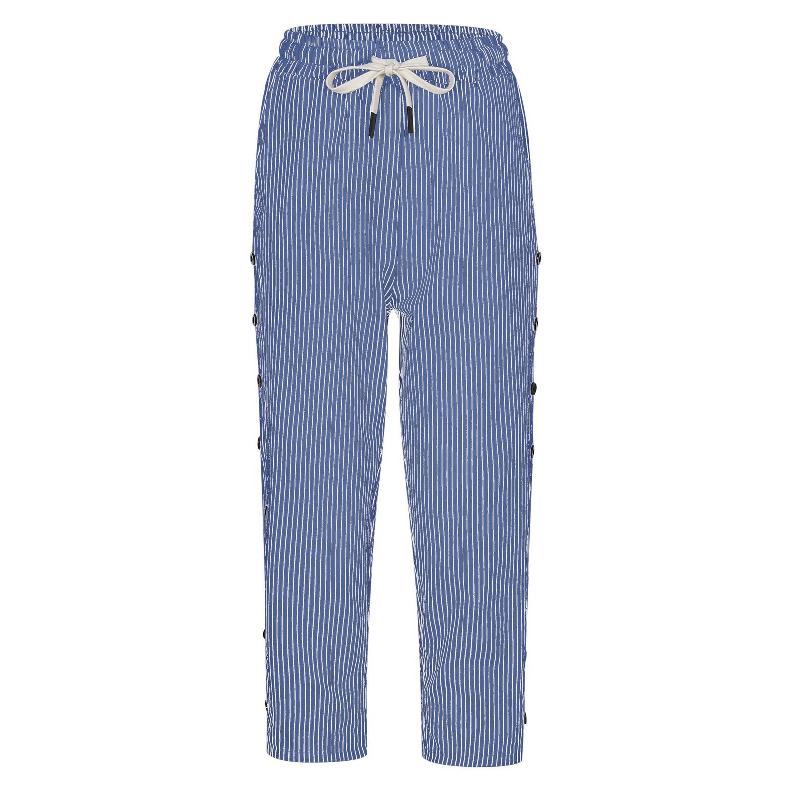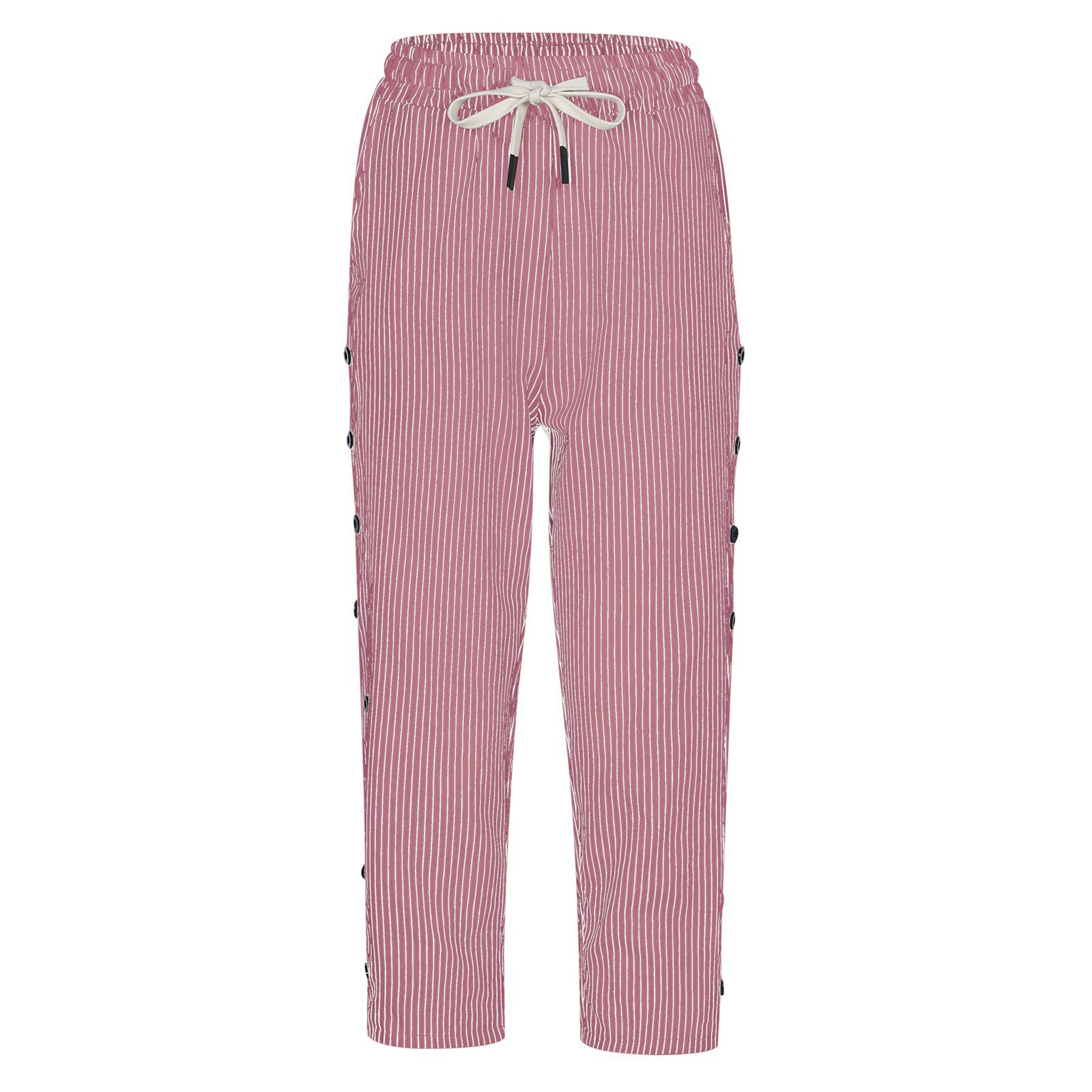 2024 유럽과 미국의 캐주얼 바지 여성 스트라이프 사이드 버튼 패션 느슨한 탄성 허리 스트레이트 편안한 크롭 바지