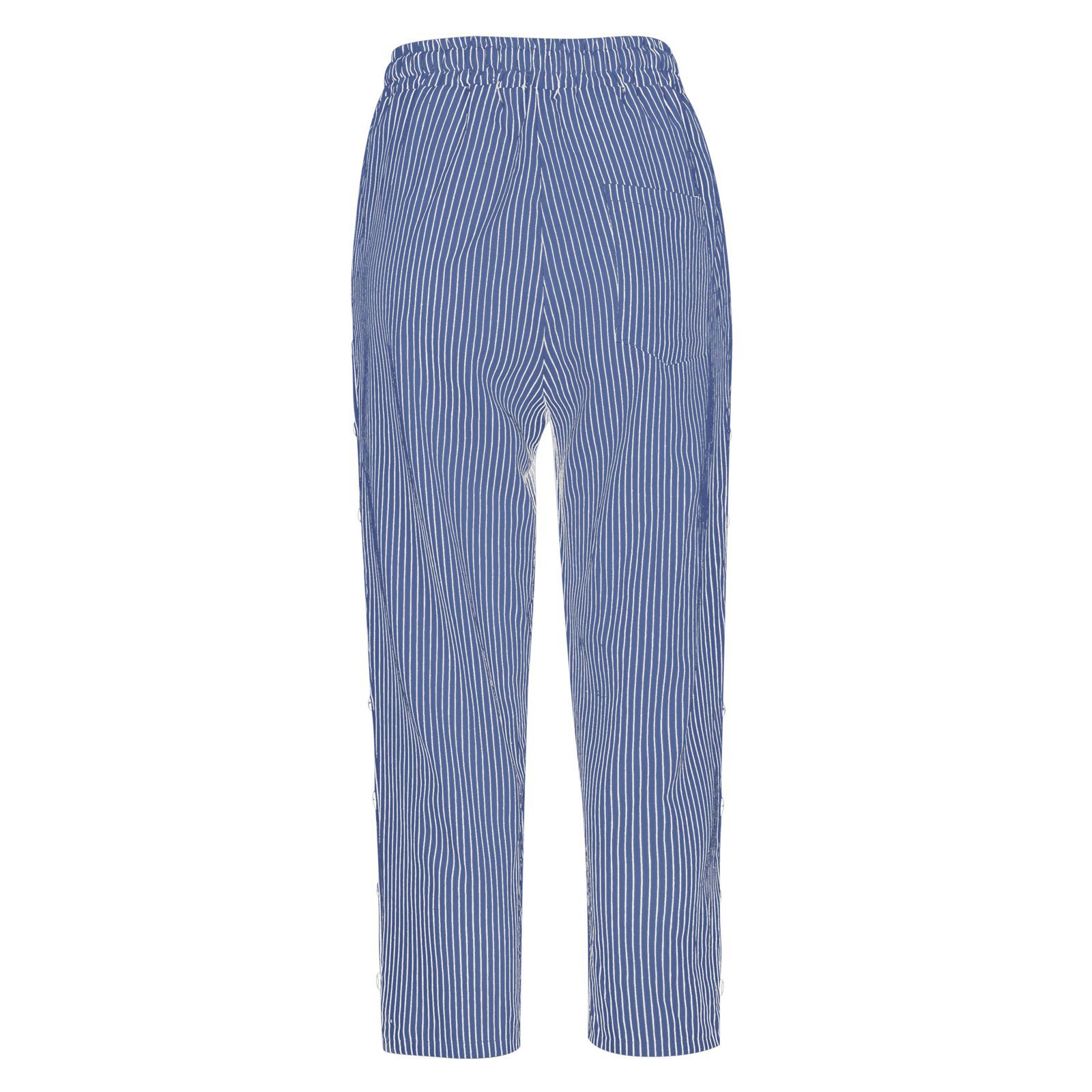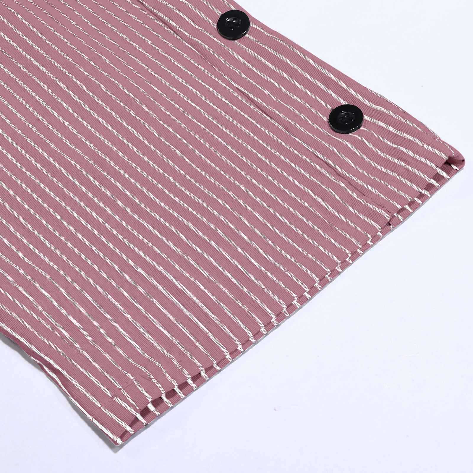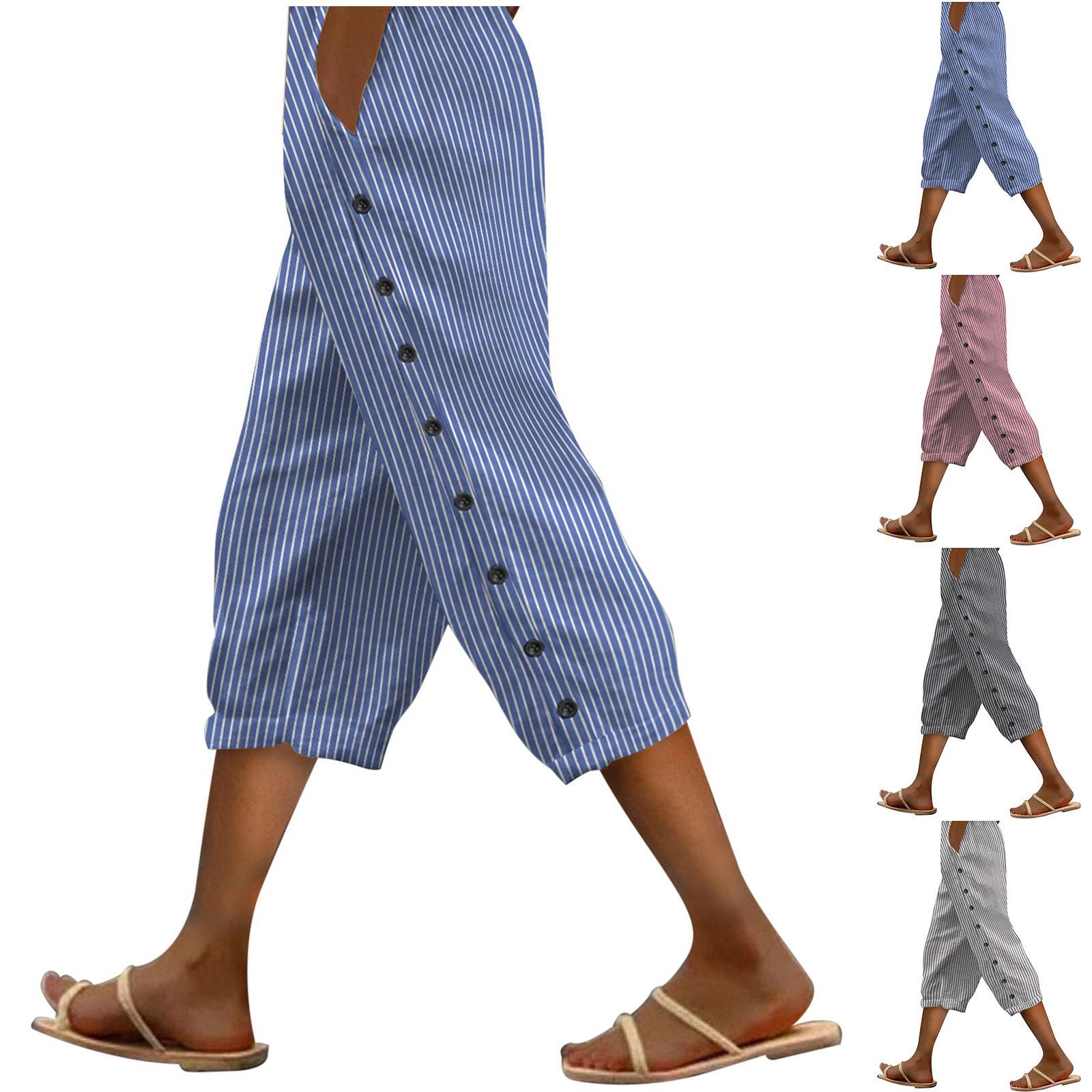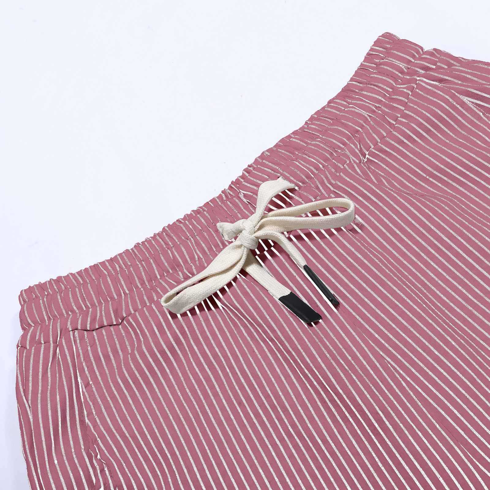 2024 유럽과 미국의 캐주얼 바지 여성 스트라이프 사이드 버튼 패션 느슨한 탄성 허리 스트레이트 편안한 크롭 바지