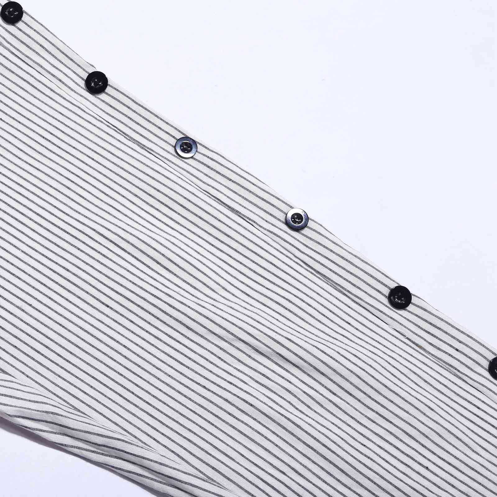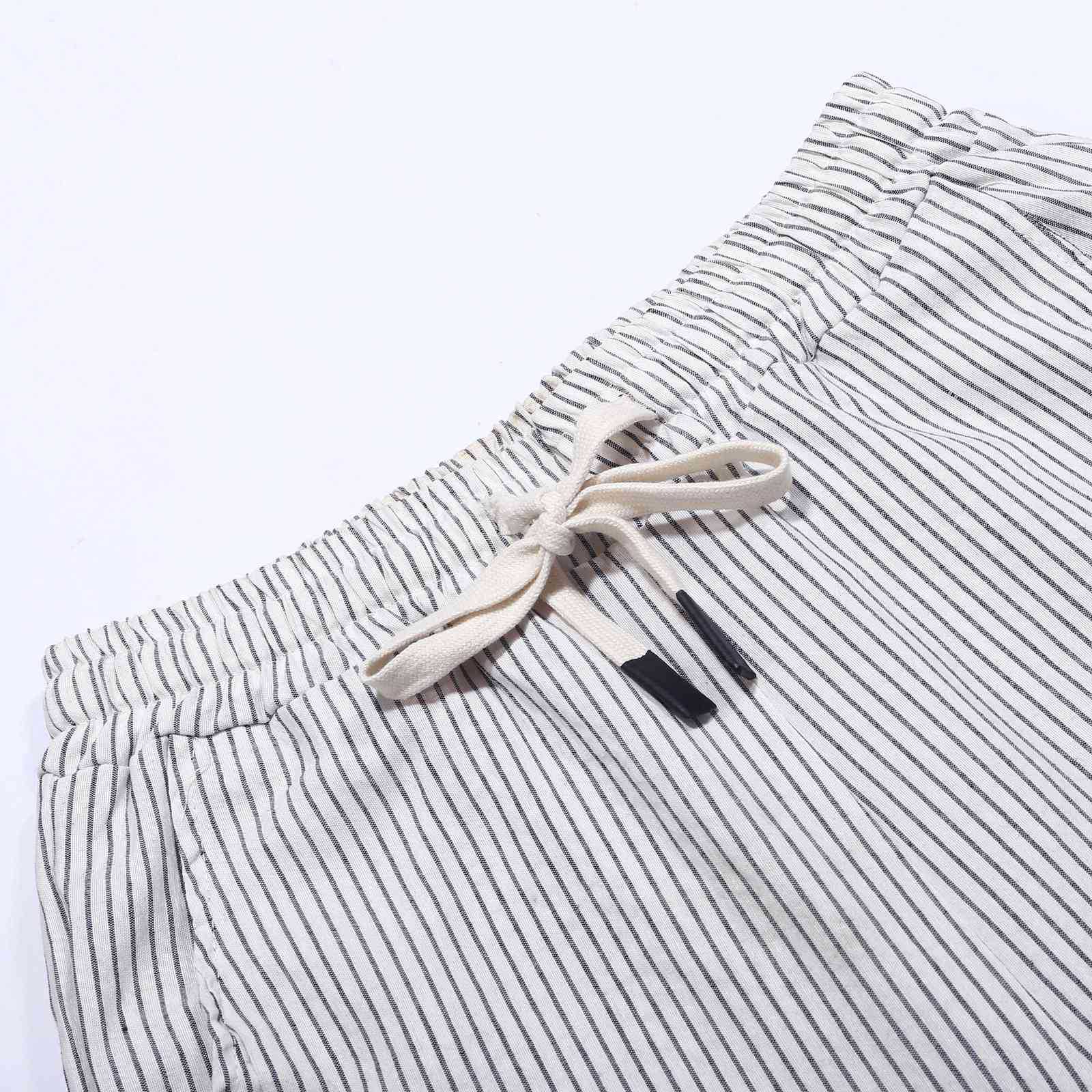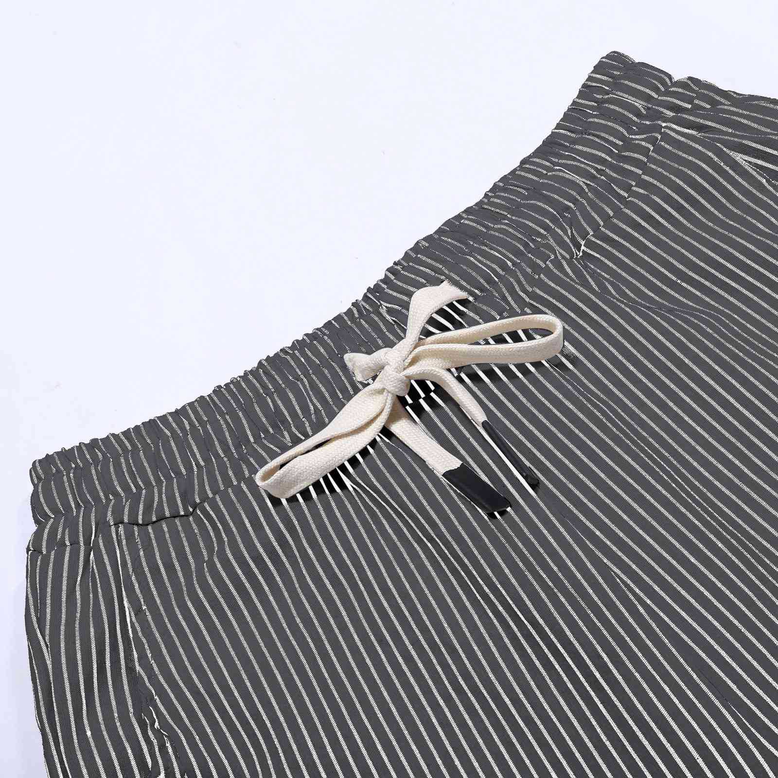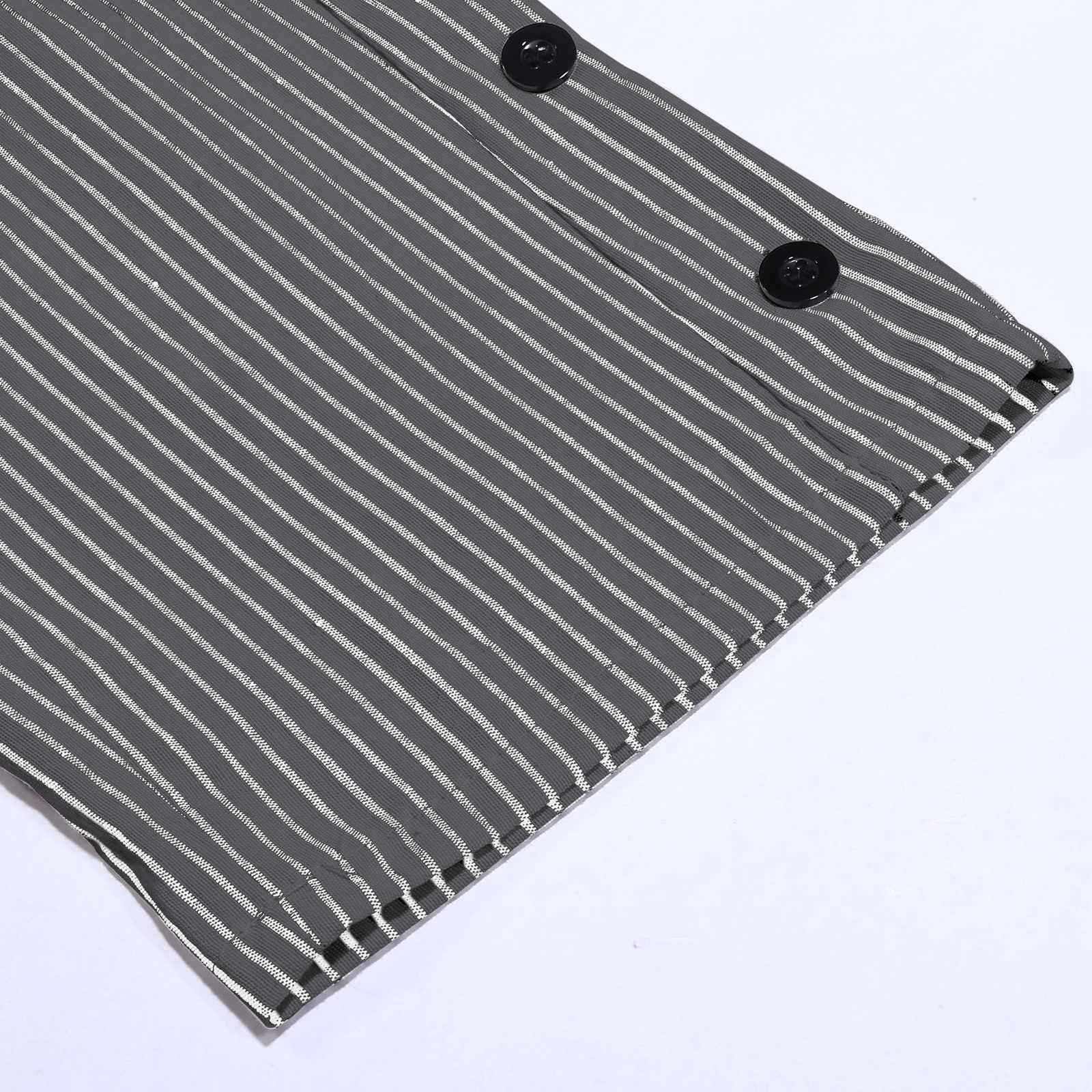 2024 유럽과 미국의 캐주얼 바지 여성 스트라이프 사이드 버튼 패션 느슨한 탄성 허리 스트레이트 편안한 크롭 바지