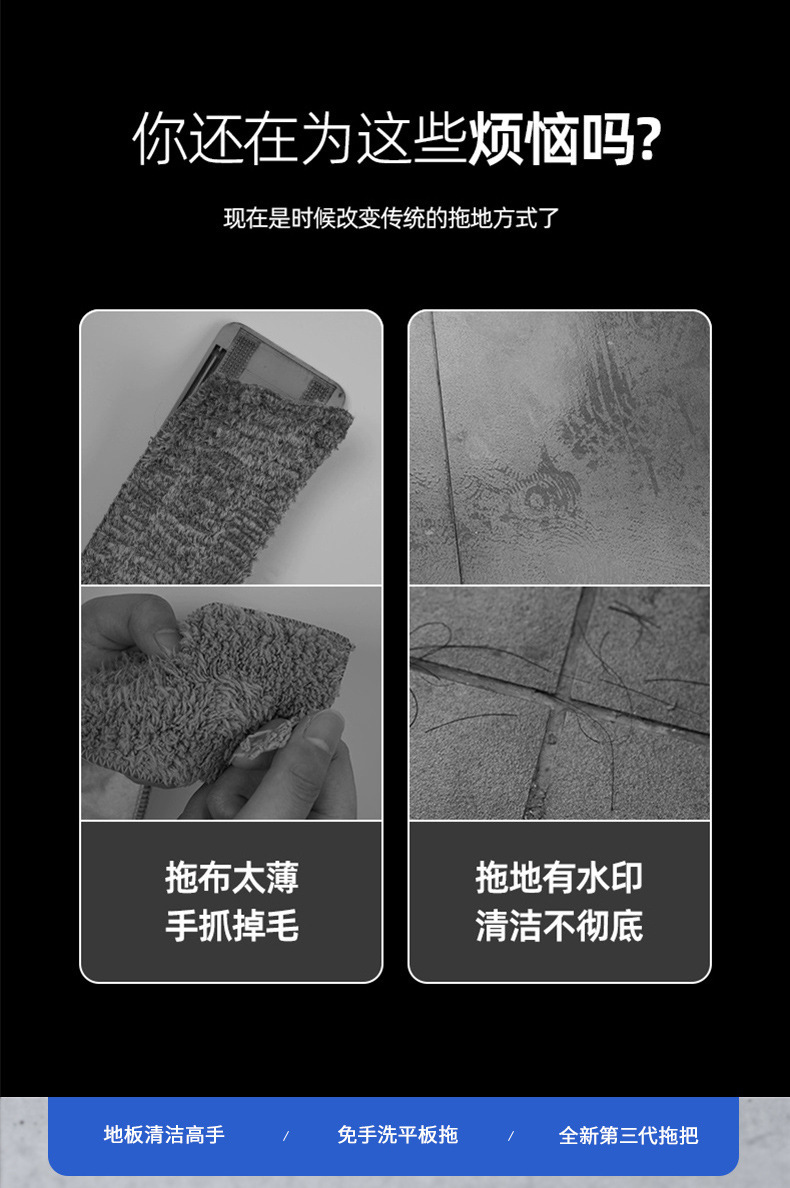플랫 걸레 핸드 프리 세탁 가정용 새로운 게으른 사람들 흡수성 도매 두꺼운 걸레 버킷 바닥 절단 유물