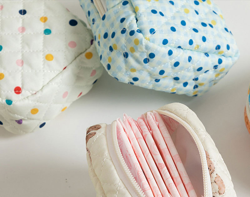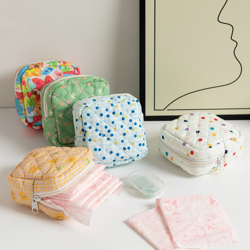 꽃 위생 면 저장 가방 퀼트 소녀의 달 위생 냅킨 휴대용 여행 가방 동전 지갑 빨간 가방