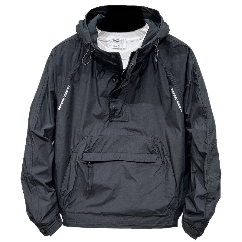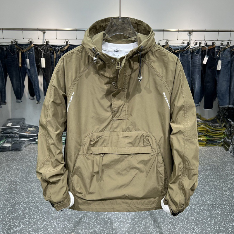 美式工装冲锋衣外套男春季ins潮牌青少年宽松半拉链连帽休闲夹克