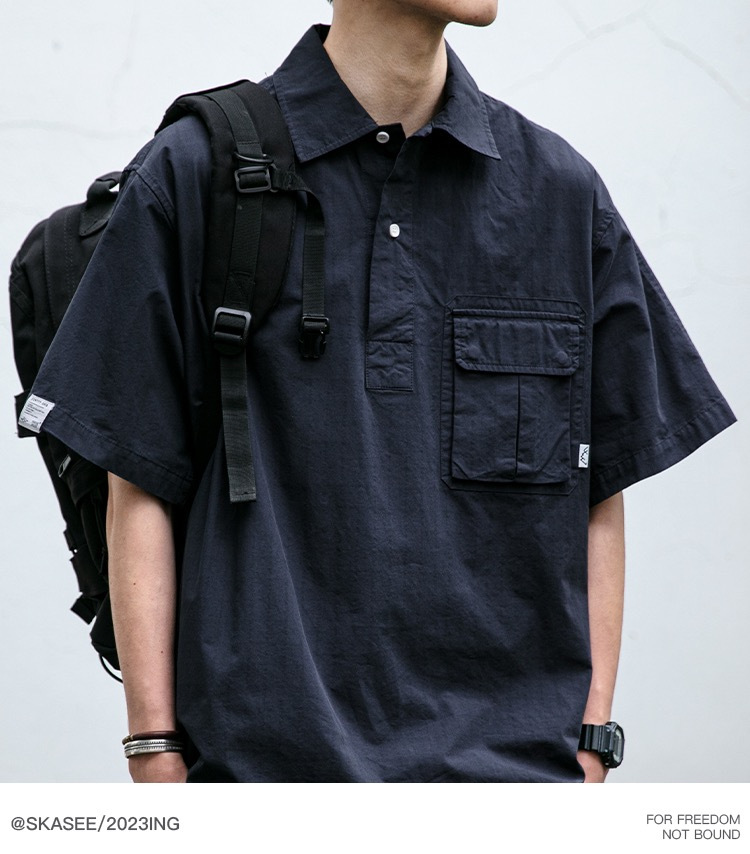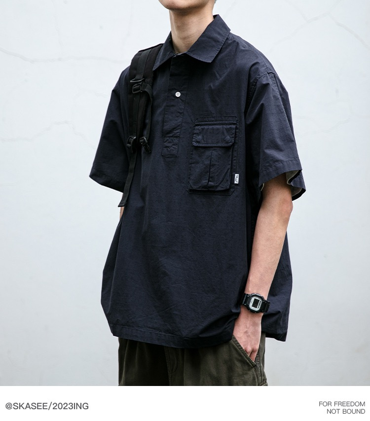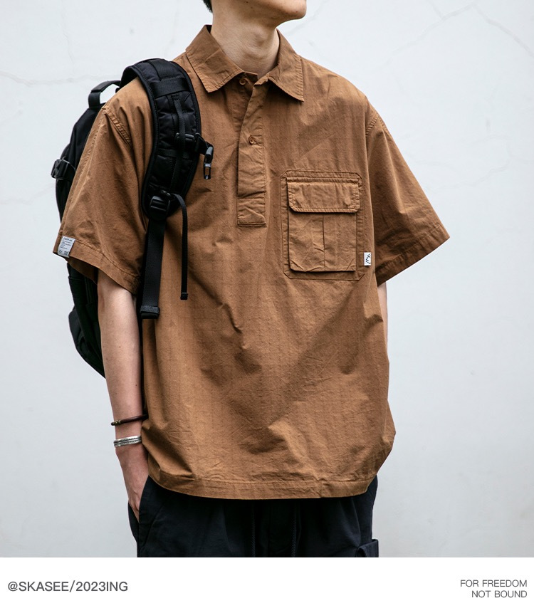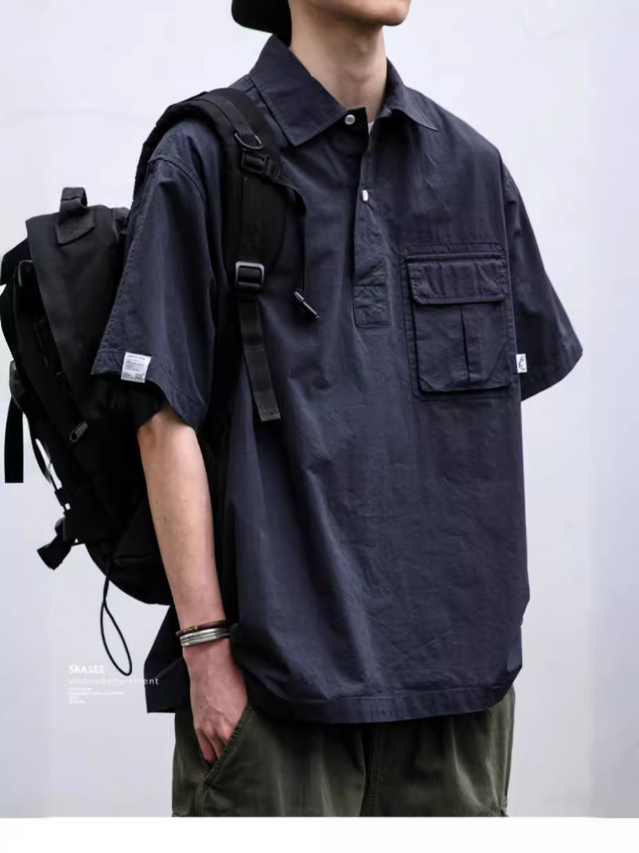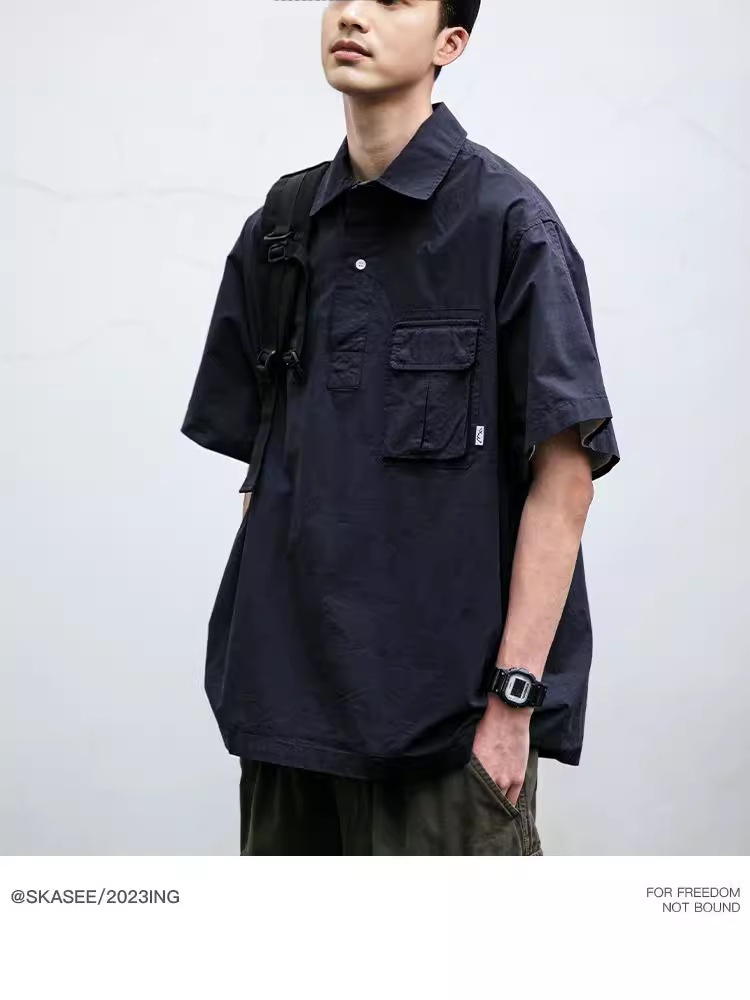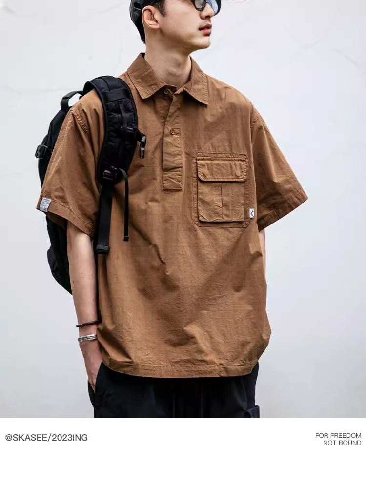 일본식 작업복 캐주얼 반팔 셔츠 남성용 트렌디 브랜드 여름 얇은 폴로 셔츠 느슨한 반소매 셔츠 재킷