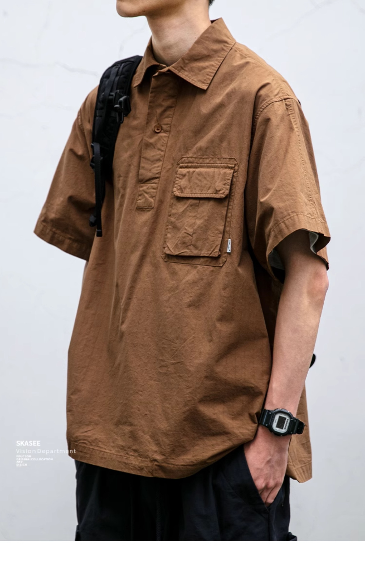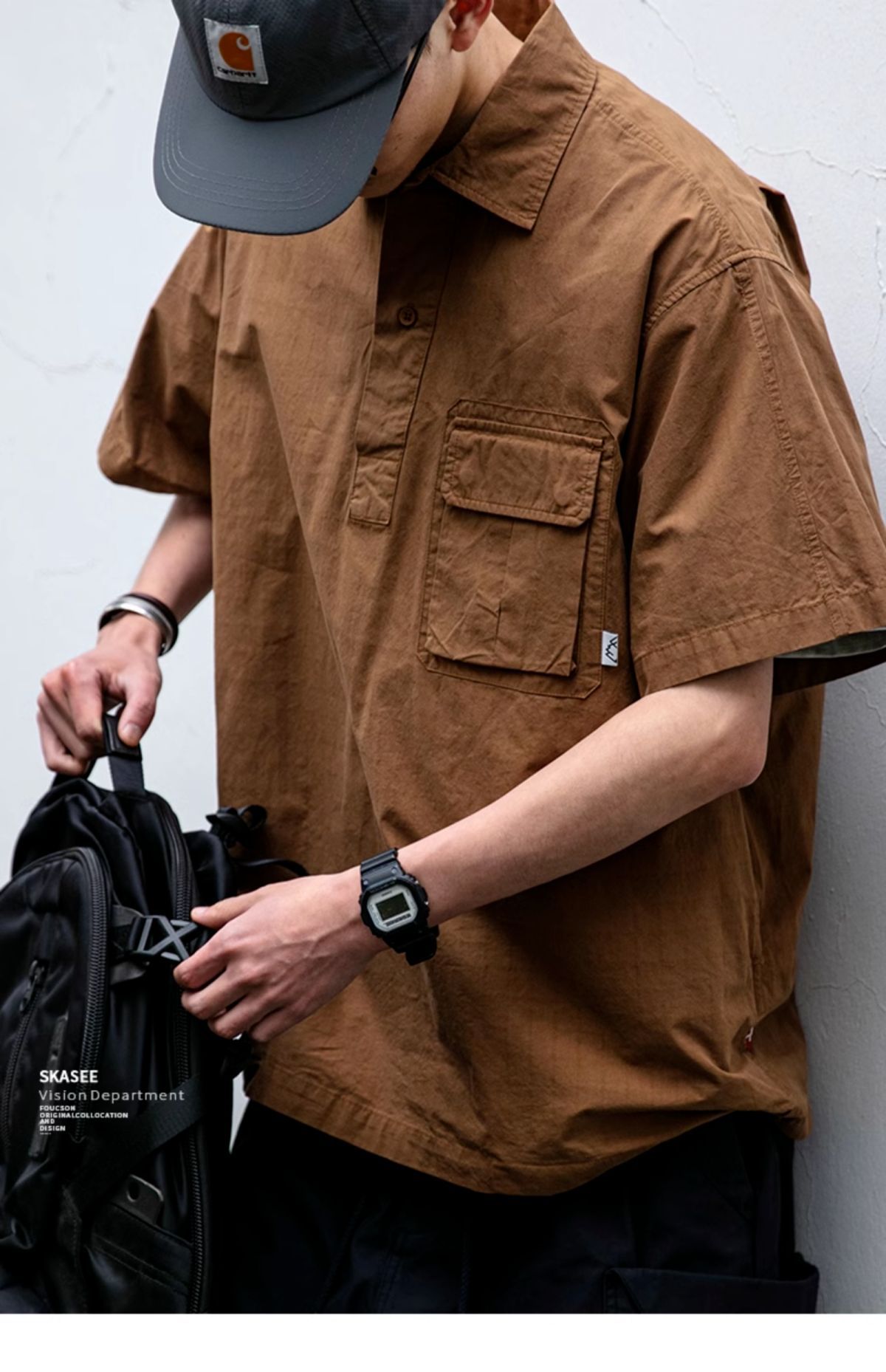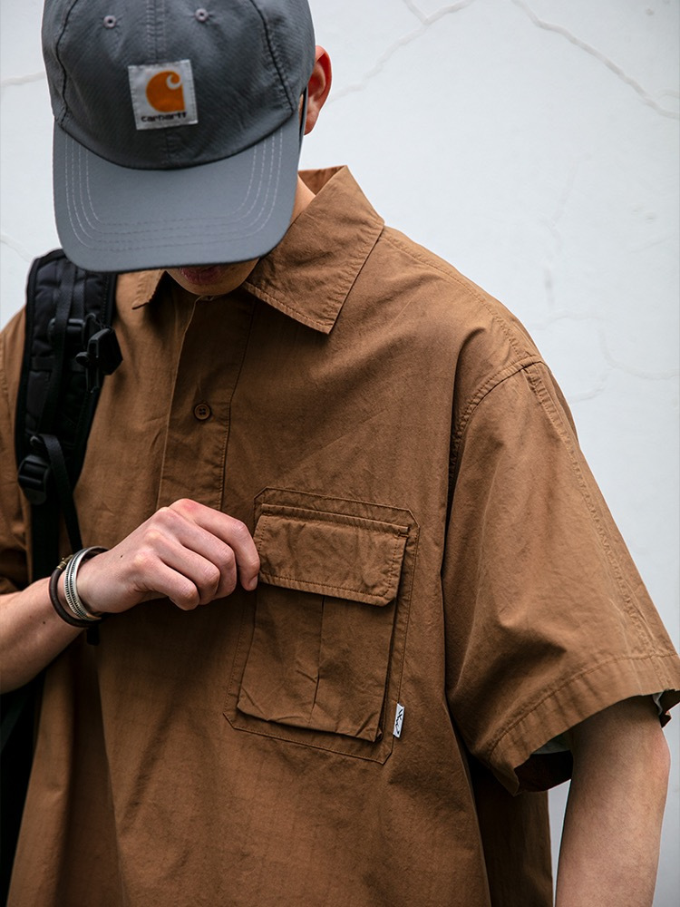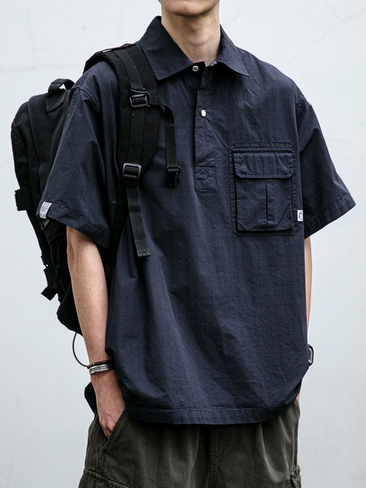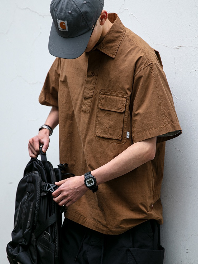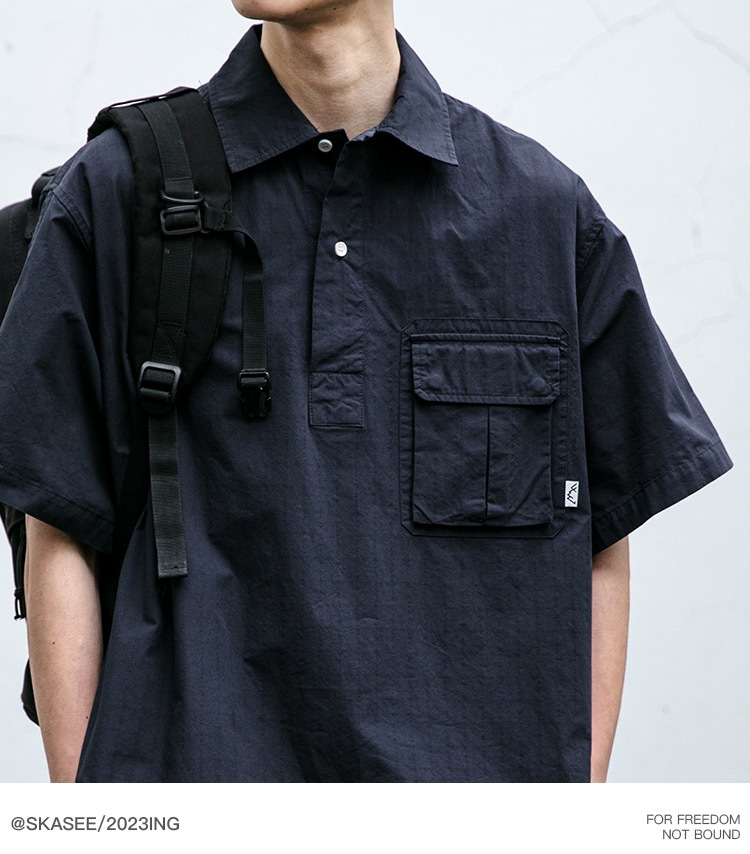 일본식 작업복 캐주얼 반팔 셔츠 남성용 트렌디 브랜드 여름 얇은 폴로 셔츠 느슨한 반소매 셔츠 재킷