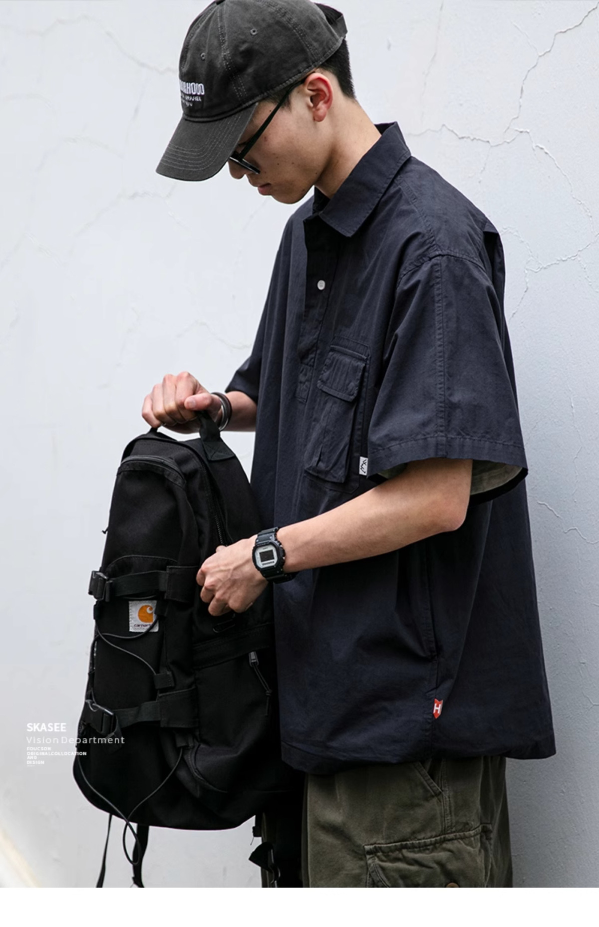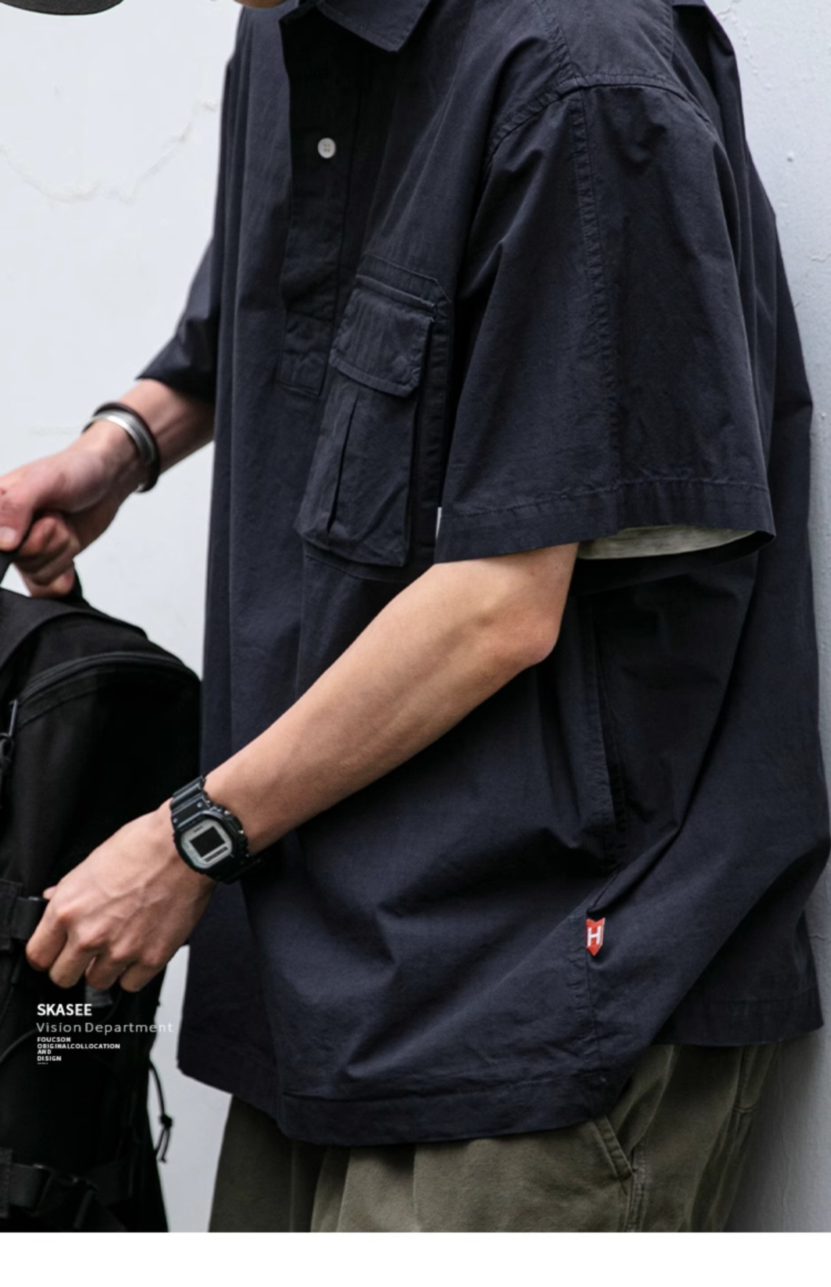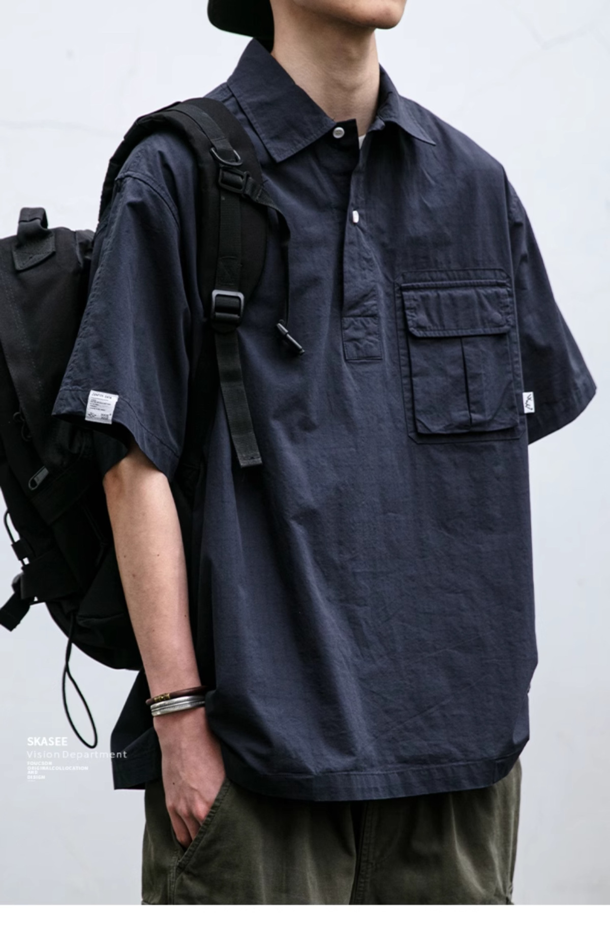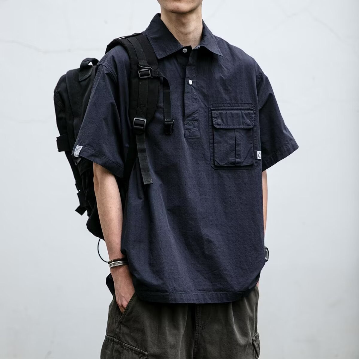 일본식 작업복 캐주얼 반팔 셔츠 남성용 트렌디 브랜드 여름 얇은 폴로 셔츠 느슨한 반소매 셔츠 재킷