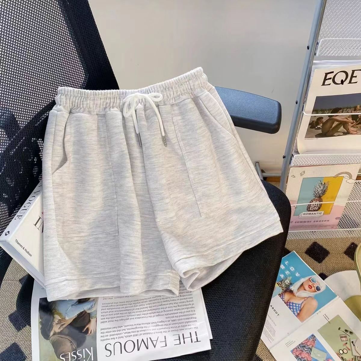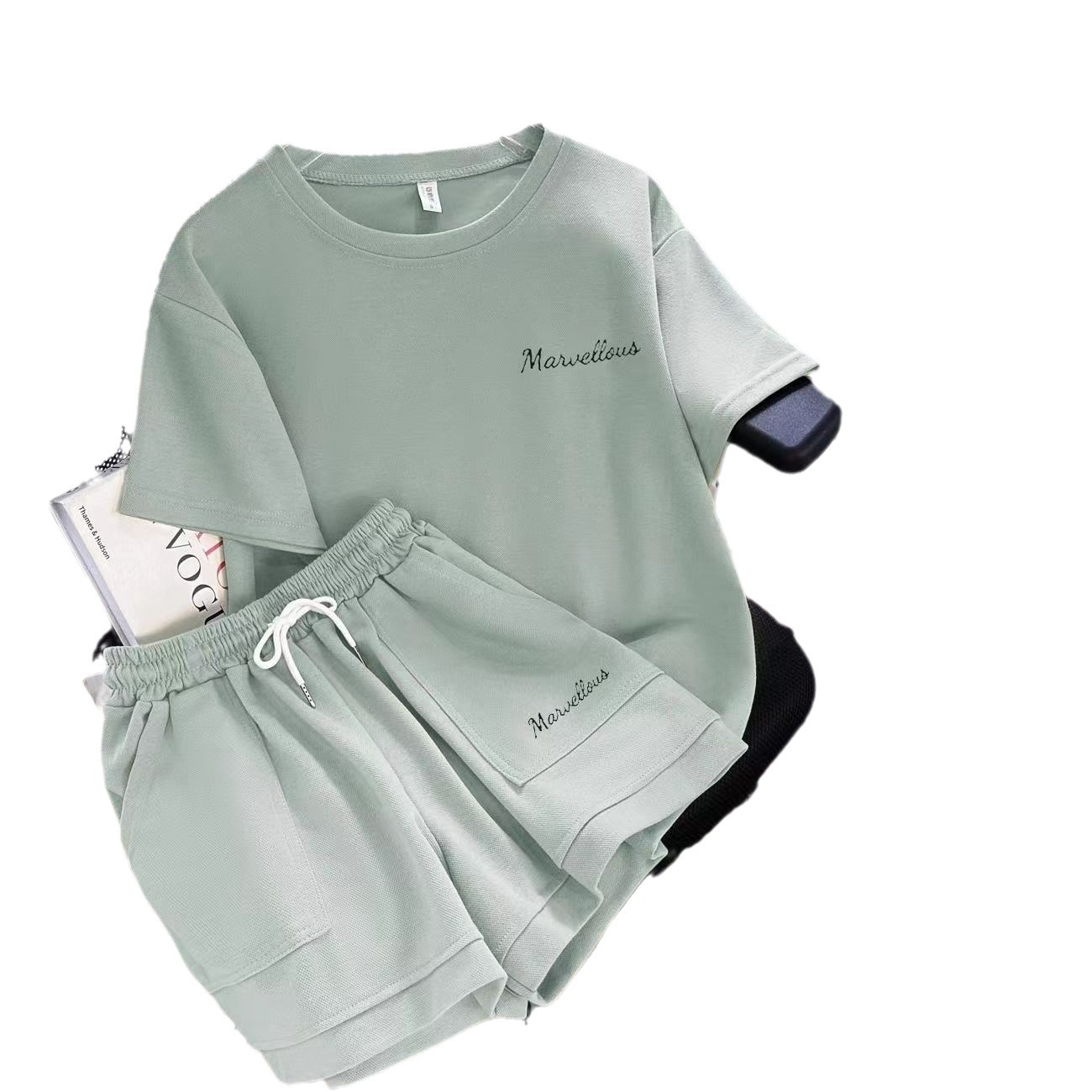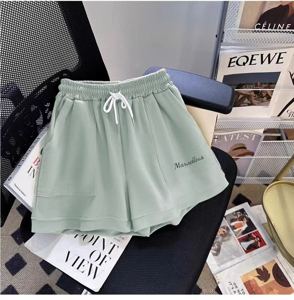 유행 연령 감소 반팔 반바지 스포츠 세트 여성 여름 한국식 느슨한 슬리밍 캐주얼 와이드 레그 바지 투피스 세트