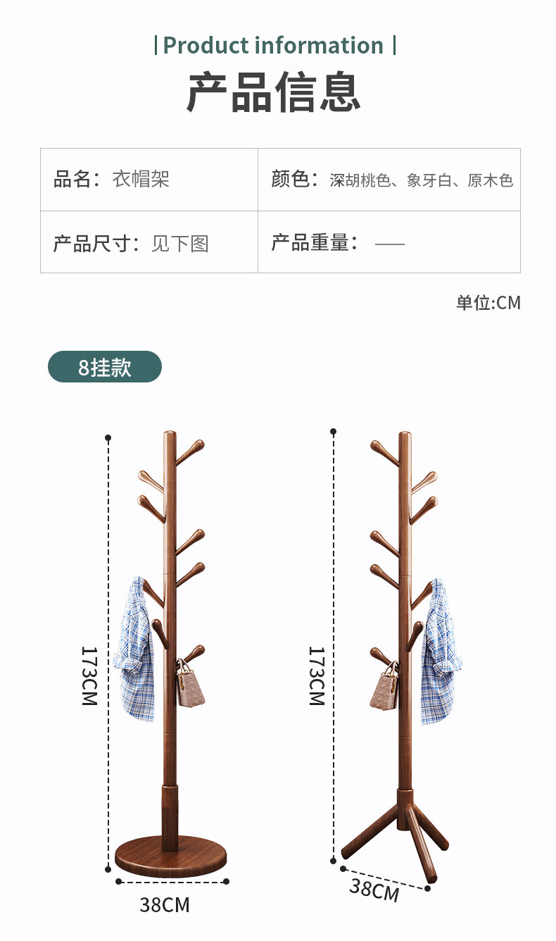 원목 스탠딩 옷걸이 침실용 옷걸이 가정용 스탠드형 임대실 옷걸이 필수품 모던 심플