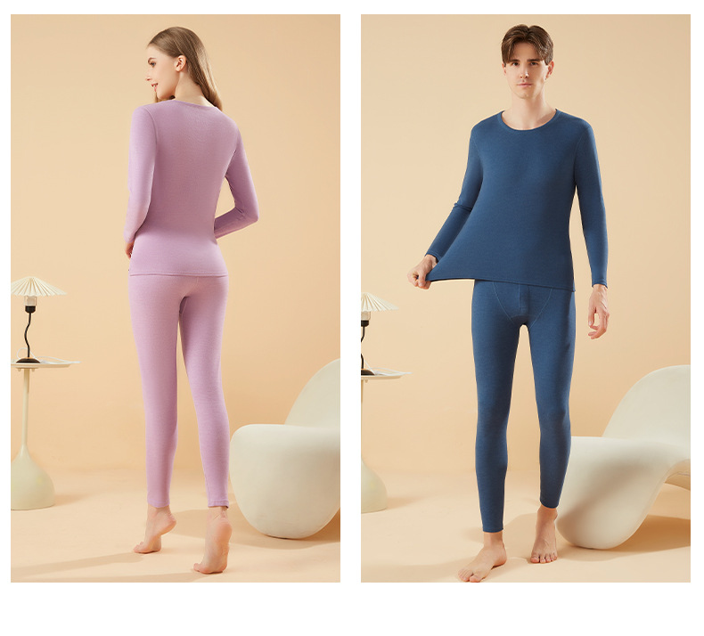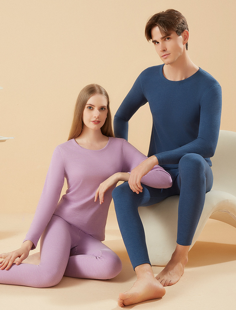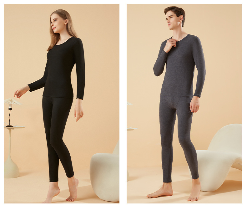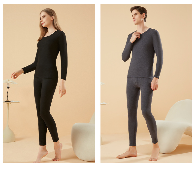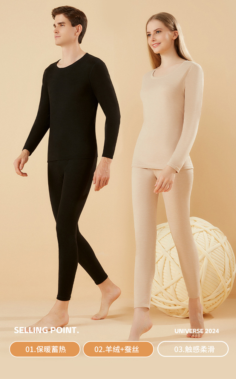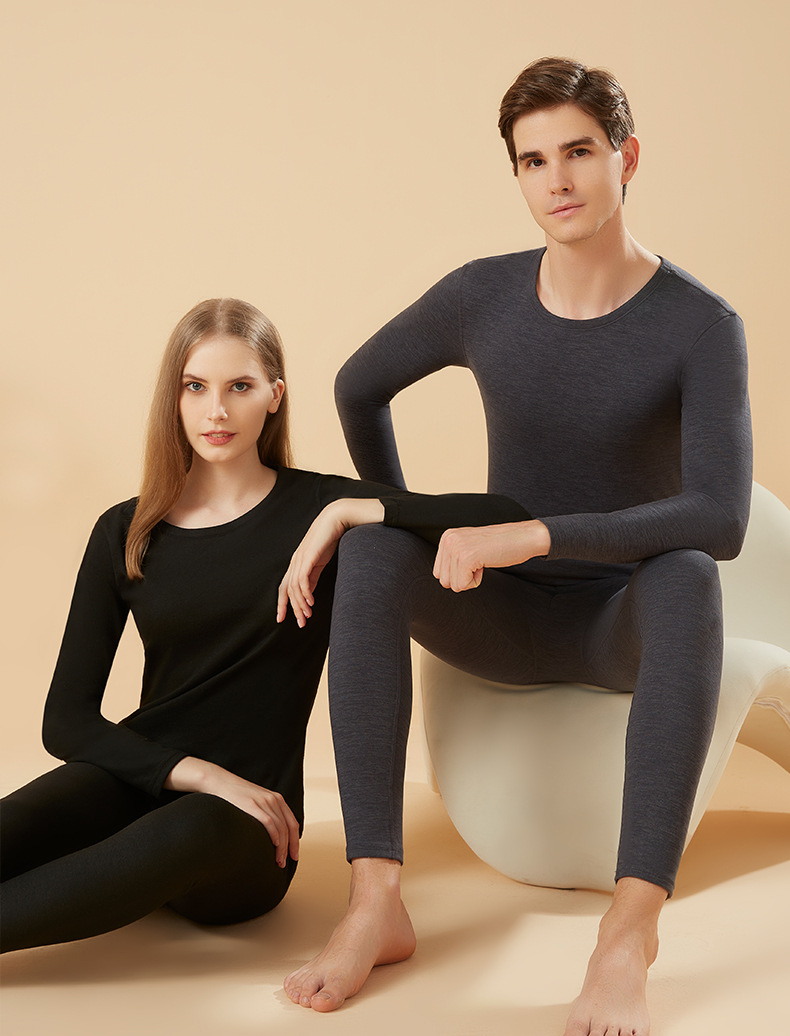 겨울 열 속옷 남자 세트 양모 캐시미어 실크 라운드 넥 플러스 벨벳 두꺼운 속옷 세트 년 여성 가을 의류