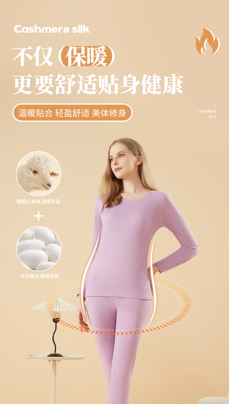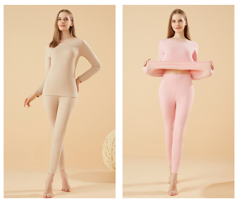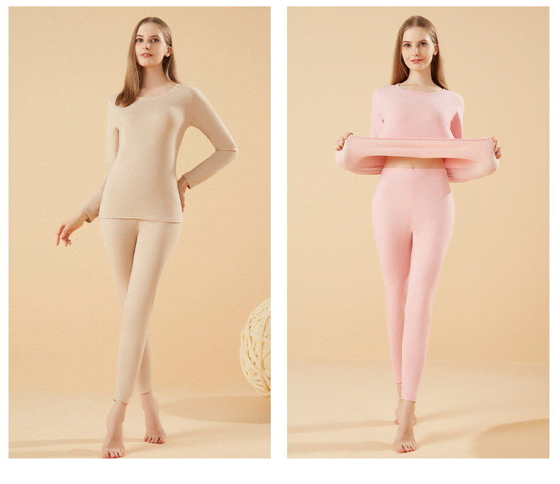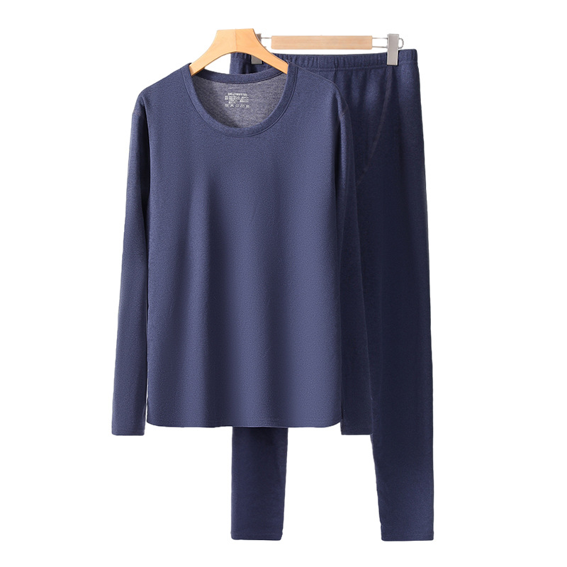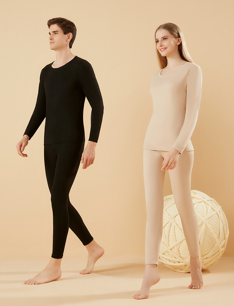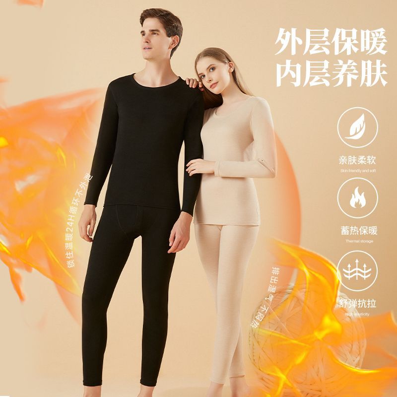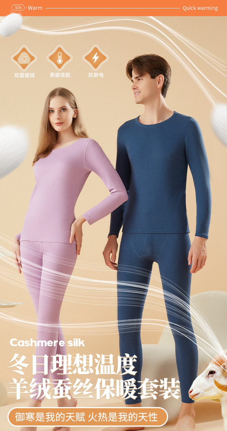 겨울 열 속옷 남자 세트 양모 캐시미어 실크 라운드 넥 플러스 벨벳 두꺼운 속옷 세트 년 여성 가을 의류