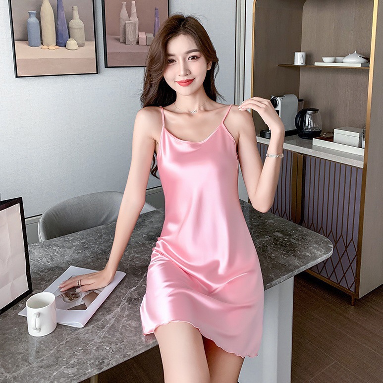 여름 아이스 실크 여성 나이트 가운 얇은 실크 섹시 실크 같은 홈 의류 카미솔 파자마 착용 가능한 보투