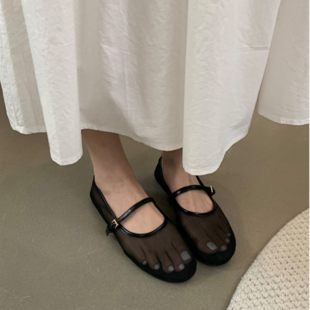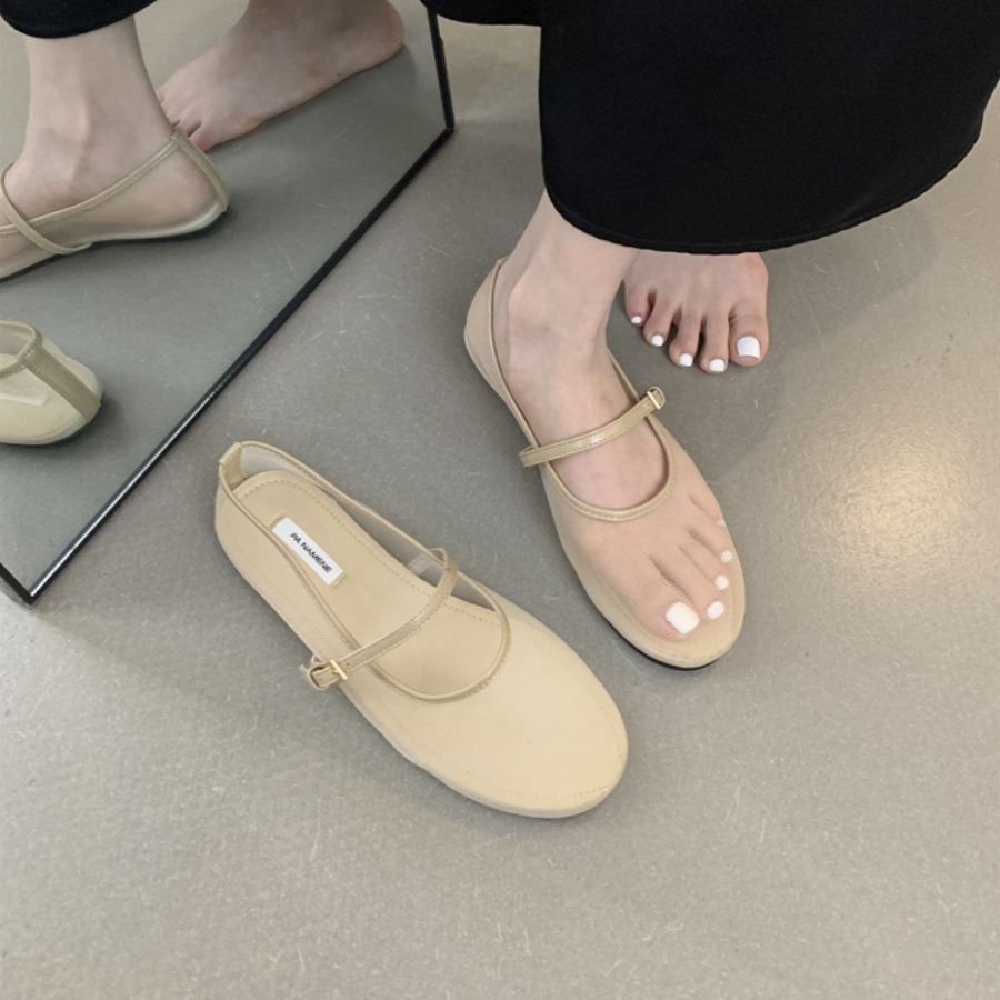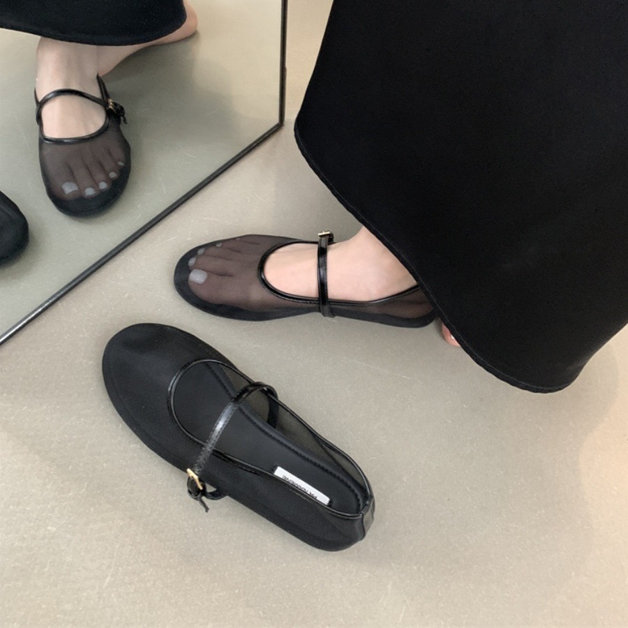 유럽 스타일 20256 봄 여름 신상 유럽풍 플랫 라운드 토 패션 메쉬 통기성 얕은 입구 싱글 슈즈 여성용 할머니 신발