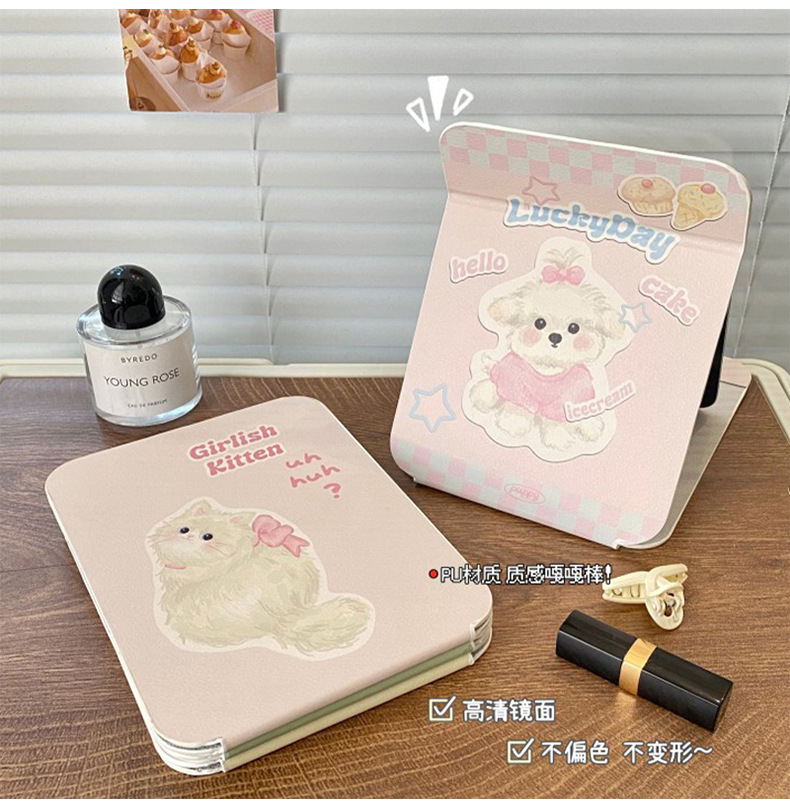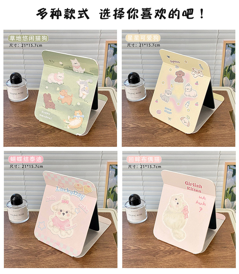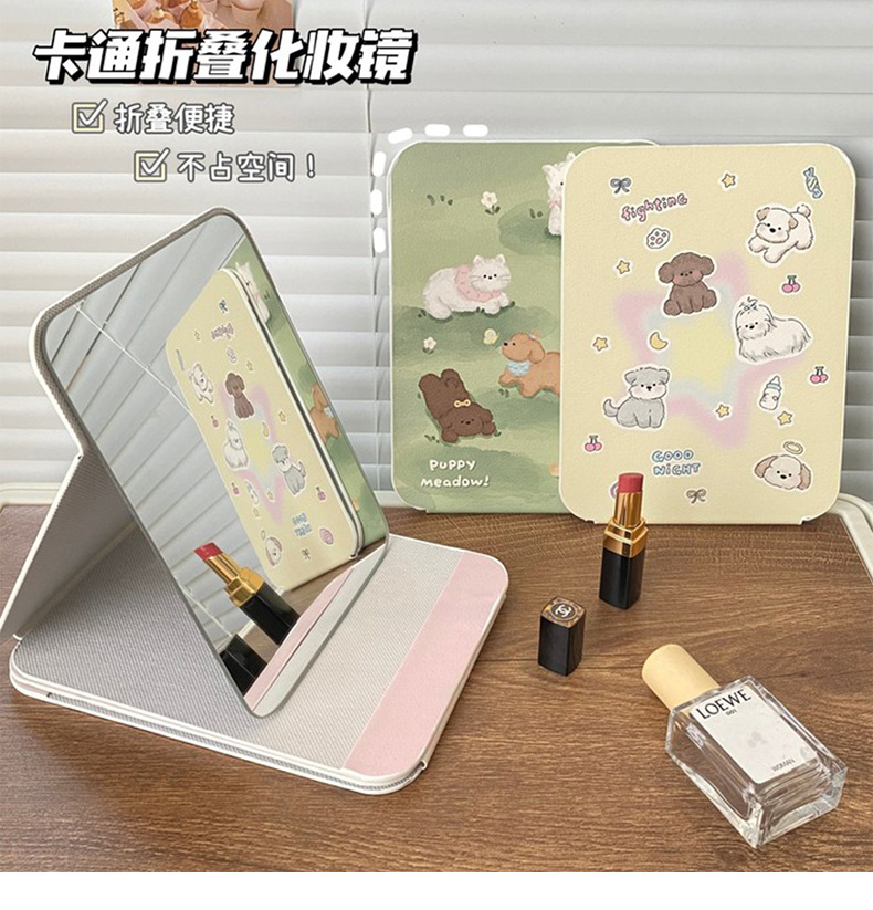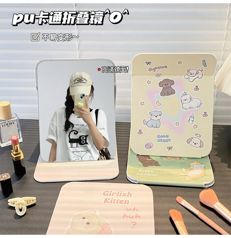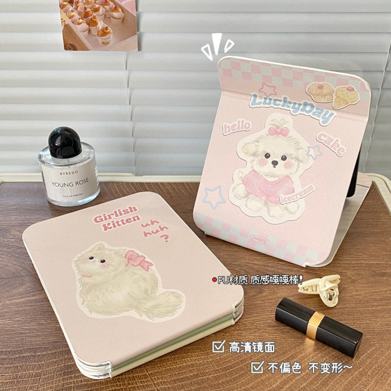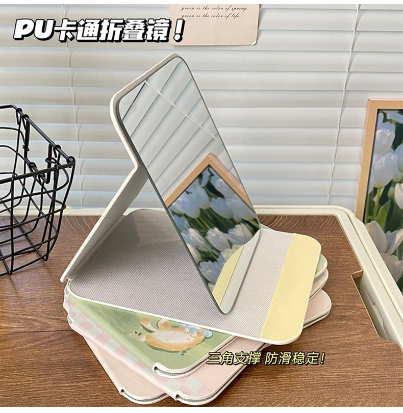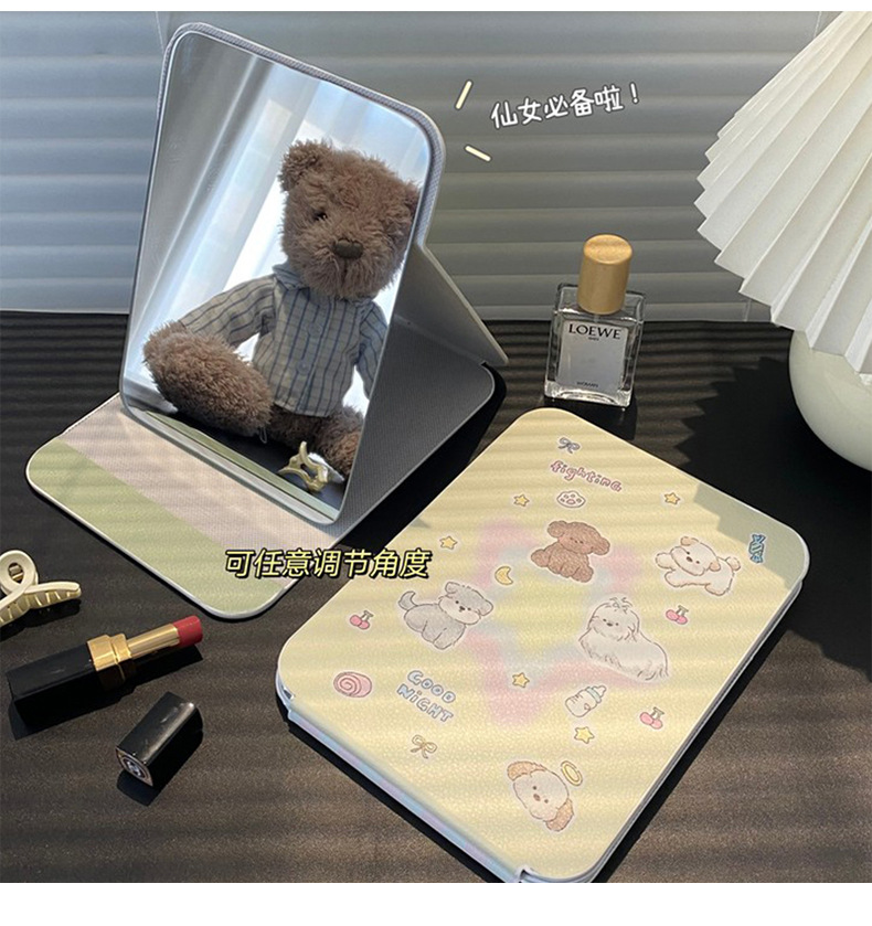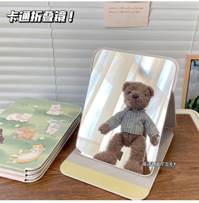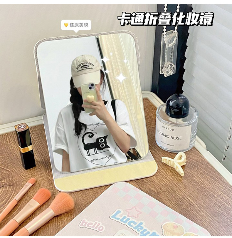 높은 가치의 접이식 거울 휴대용 메이크업 거울 HD Ins 스타일 거울 기숙사 데스크탑 스탠드 여성용 거울