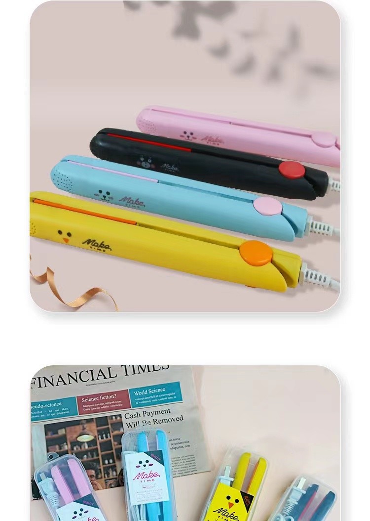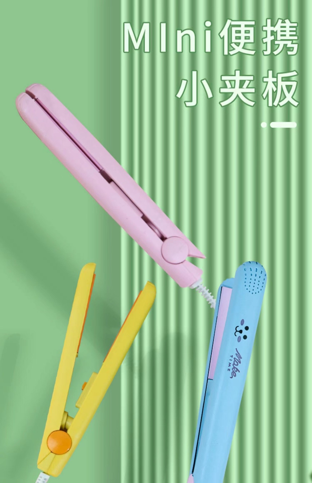 귀여운 만화 캔디 컬러 컬링 아이언 휴대용 미니 소녀 헤어 스트레이트 너 에어 뱅 헤어 아이언 컬링 로드