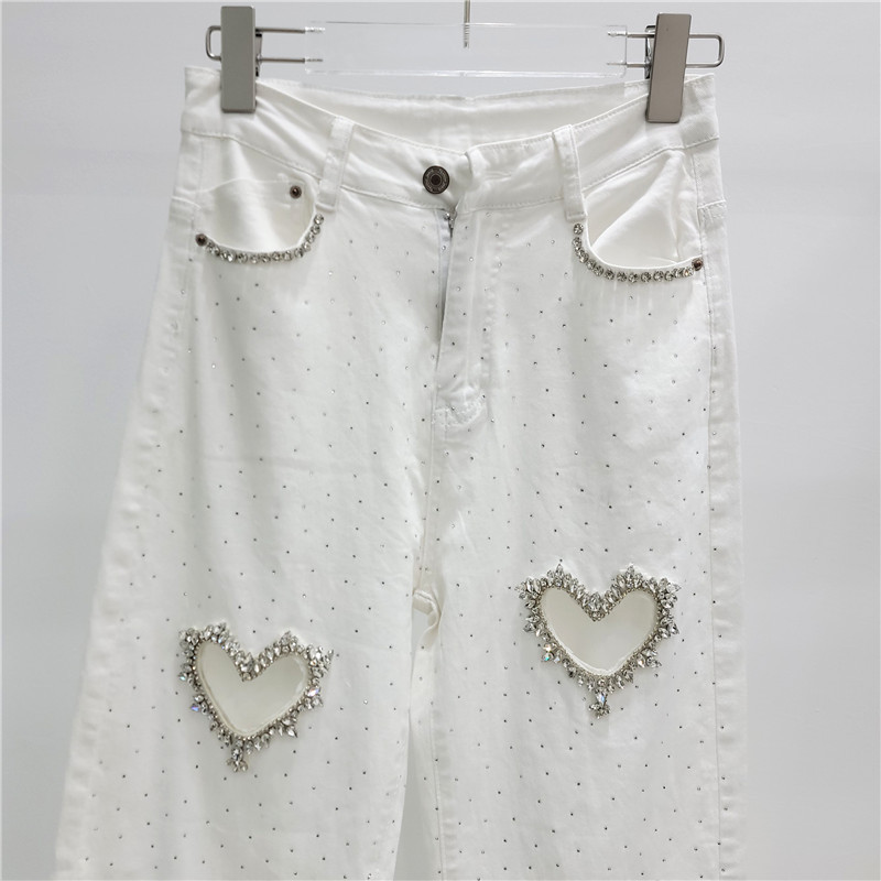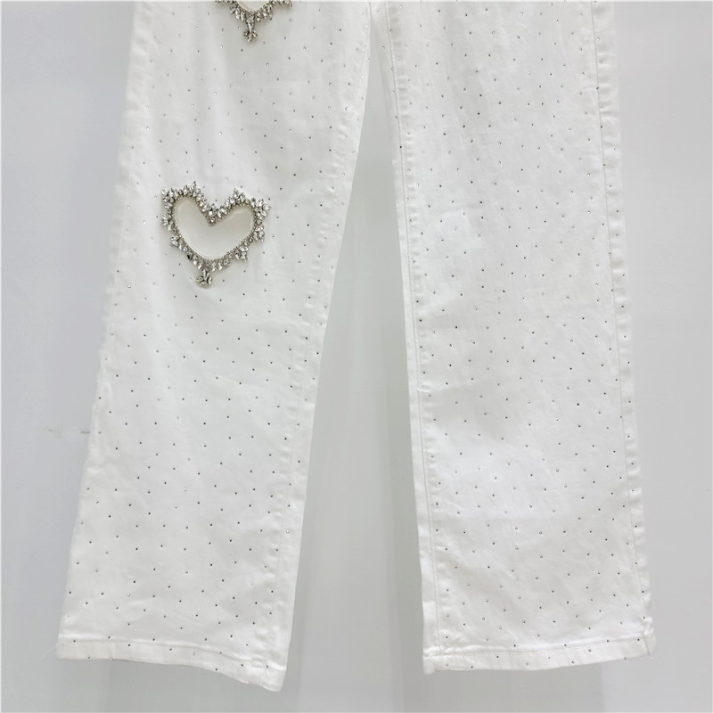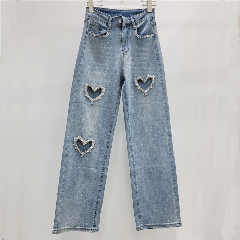고급 중공업 사랑 뜨거운 드릴링 청바지 여성의 2024 봄과 가을 새로운 스타일 유행 와이드 레그 스트레이트 바지