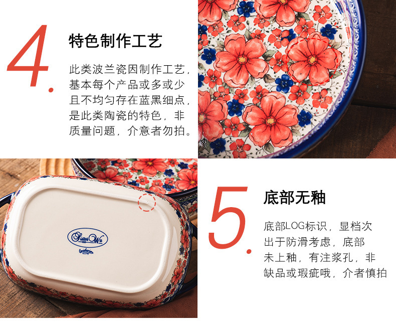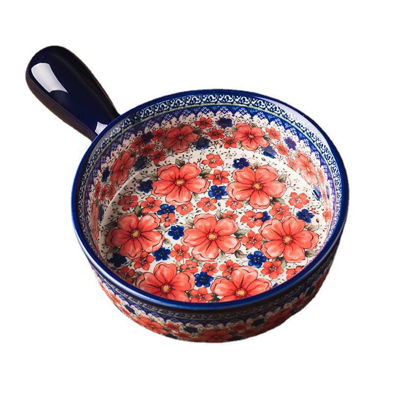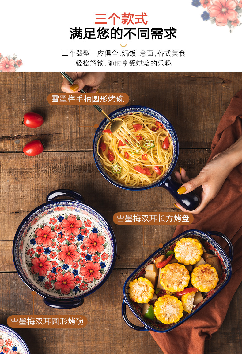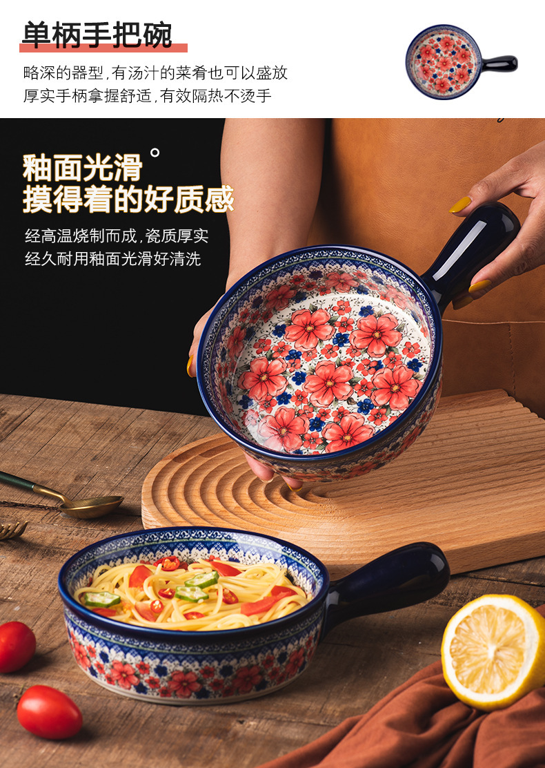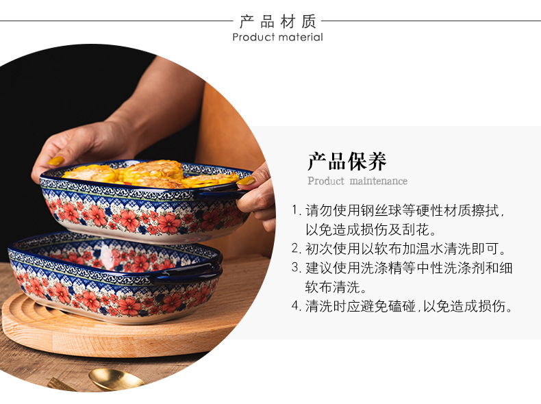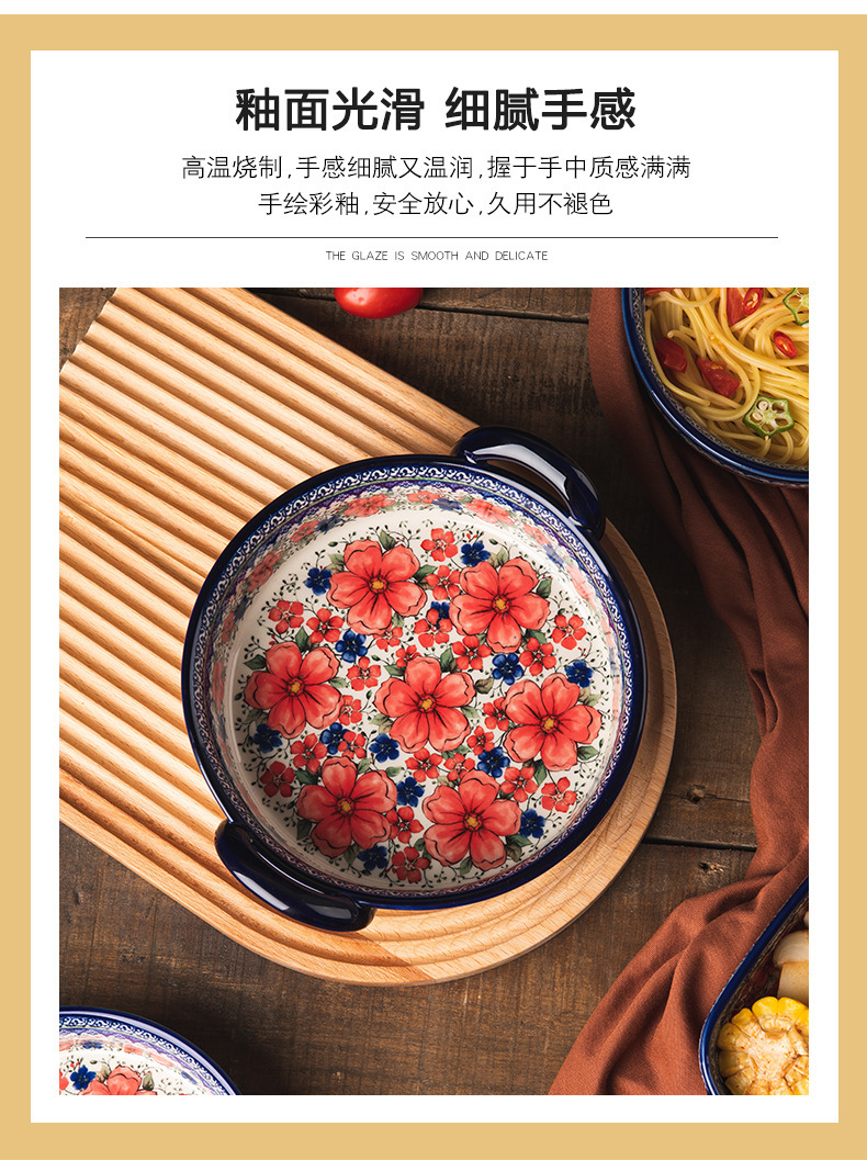 핸들 그릇 폴란드어 식기 가정용 샐러드 그릇 국수 그릇 수프 그릇 더블 이어 플레이트 베이킹 롱 스퀘어 플레이트 아마존 도매