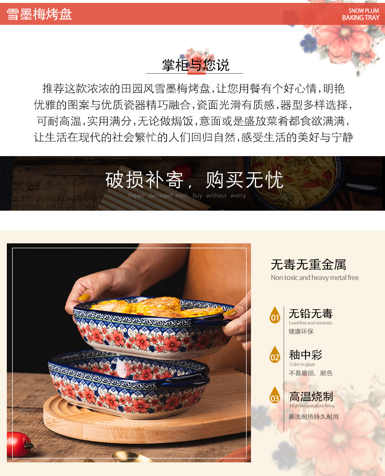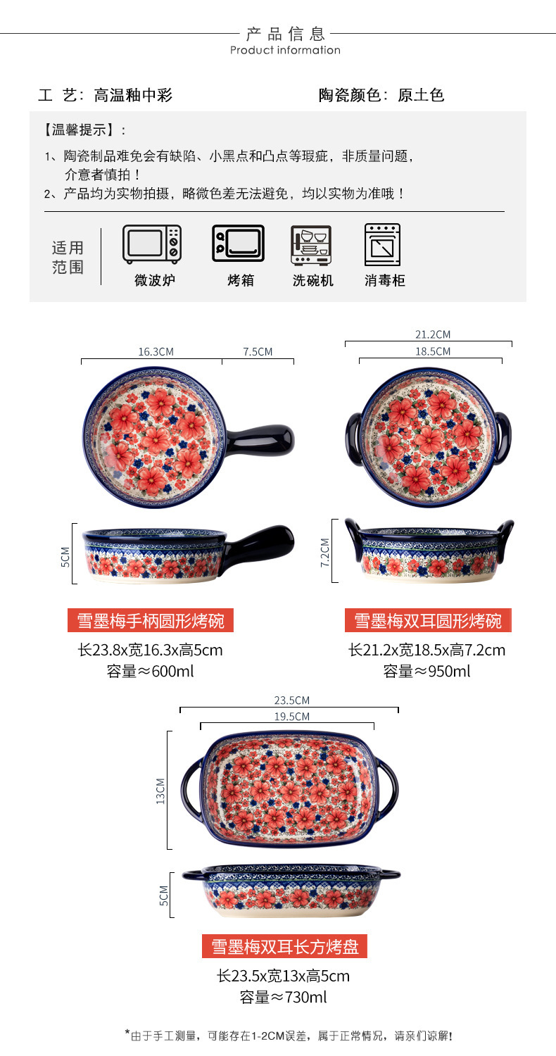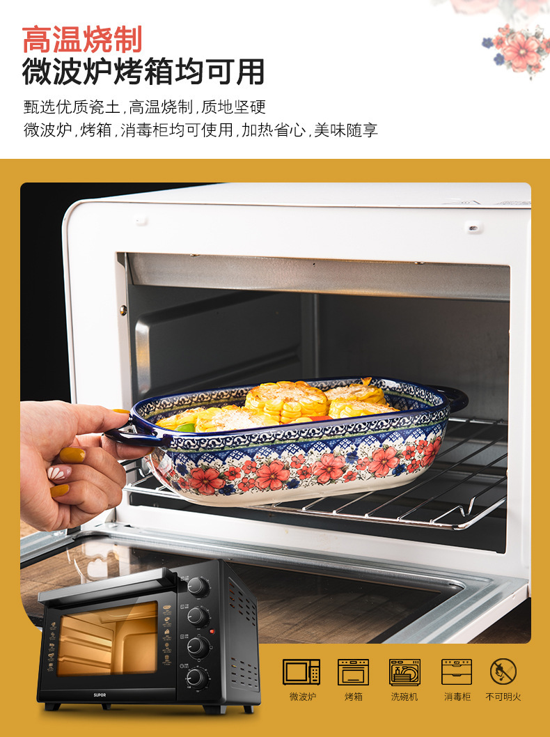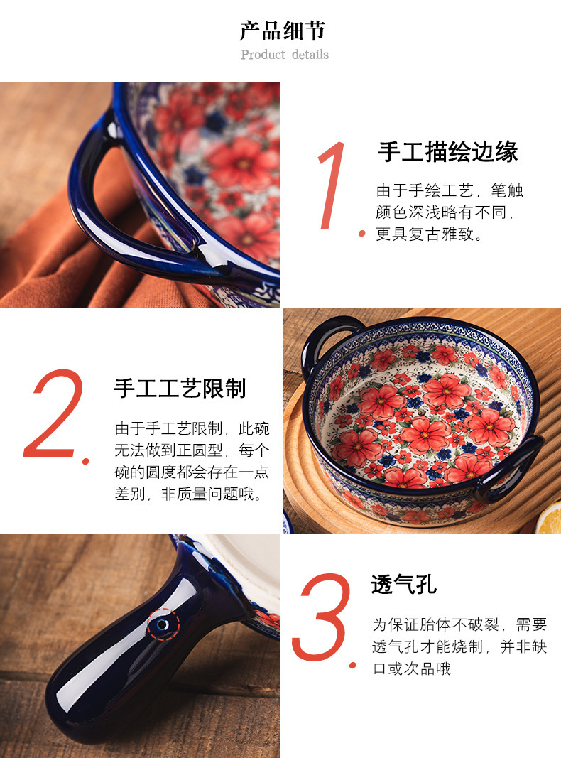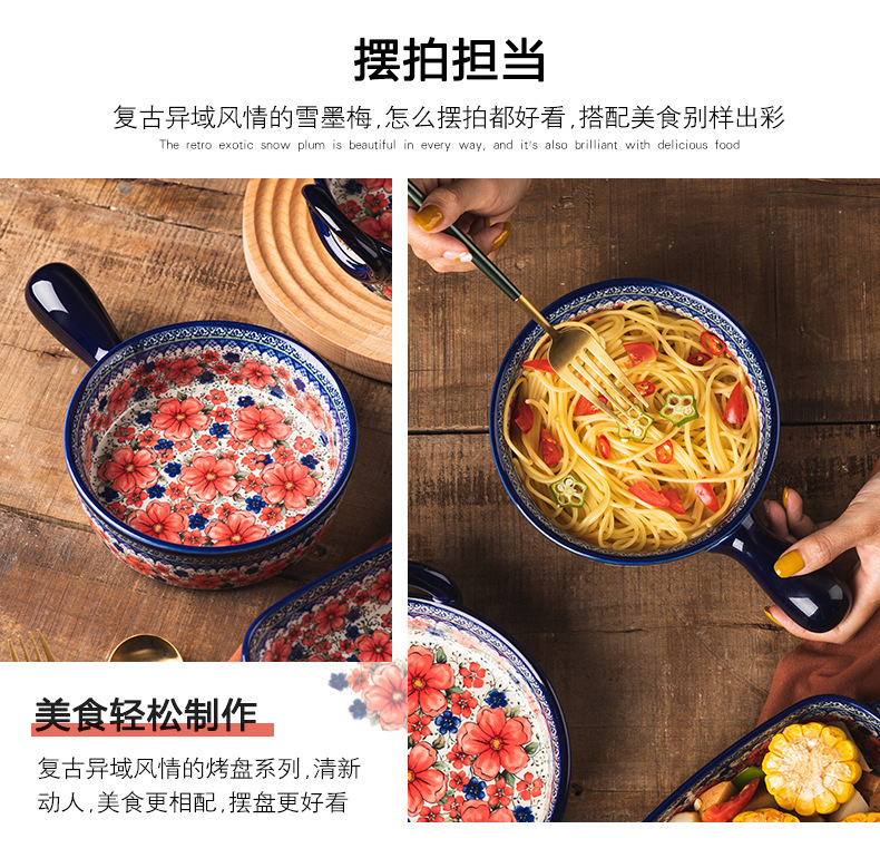 핸들 그릇 폴란드어 식기 가정용 샐러드 그릇 국수 그릇 수프 그릇 더블 이어 플레이트 베이킹 롱 스퀘어 플레이트 아마존 도매