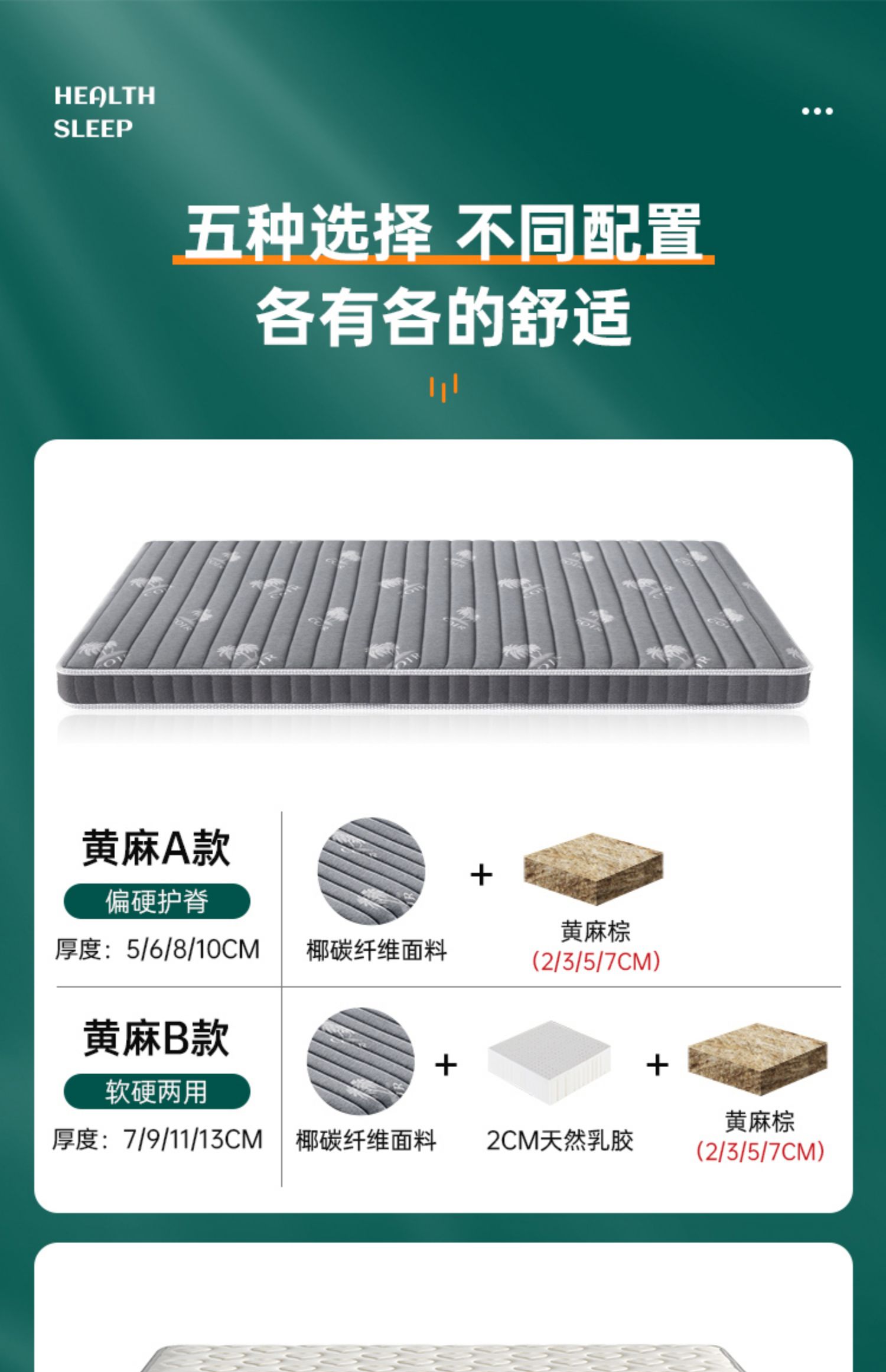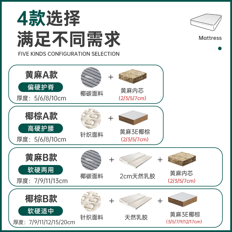 7cm (황마 2CM 라텍스 코코넛 탄소 섬유) 적당한 편안함