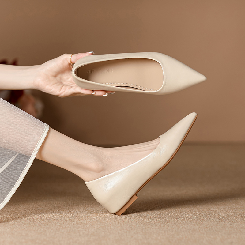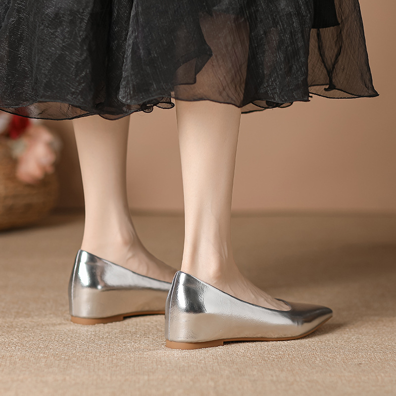 플랫 신발 여성의 2024 여름 새로운 인테리어 높이 증가 레트로 올매치 포인팅 우아한 요정 부드러운 싱글 신발 여성