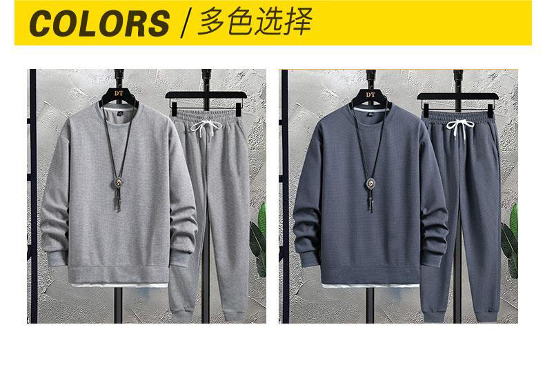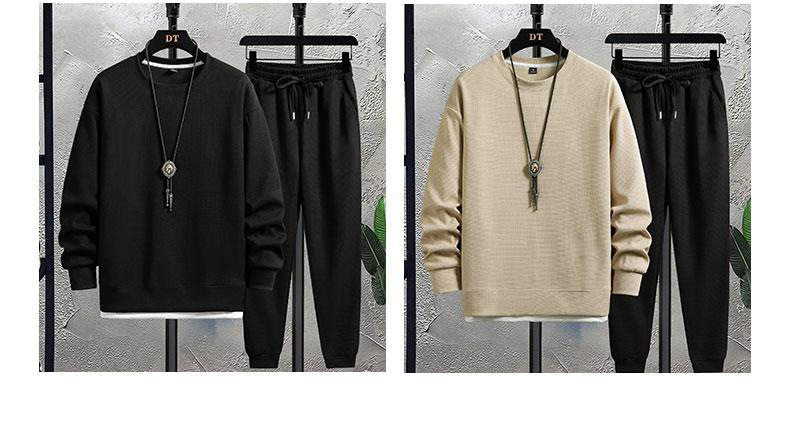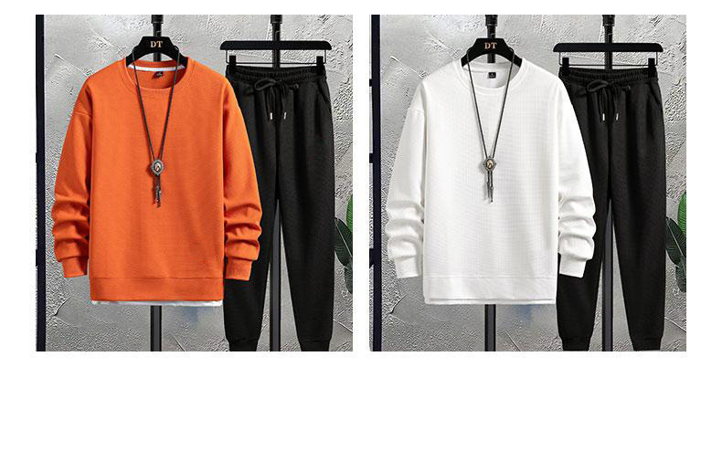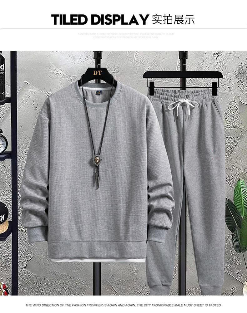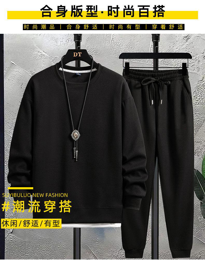 가을 2023 남자 크루 넥 새로운 와플 세트 캐주얼 잘 생긴 스포츠 긴팔 바지 투피스 패션 브랜드