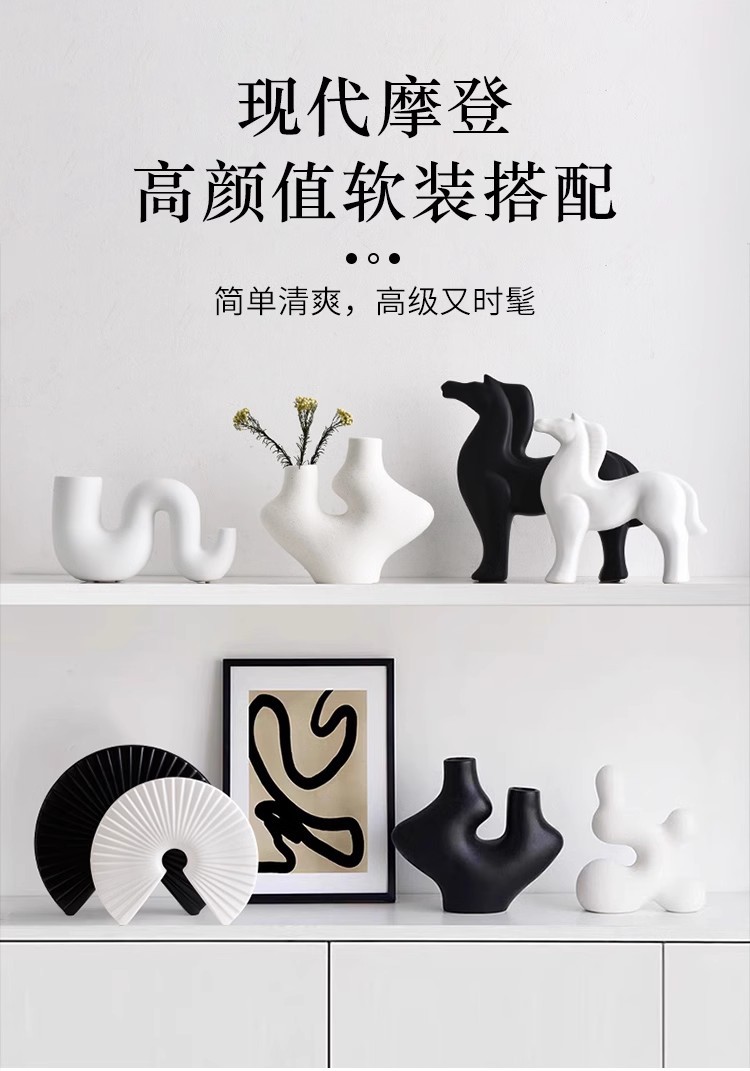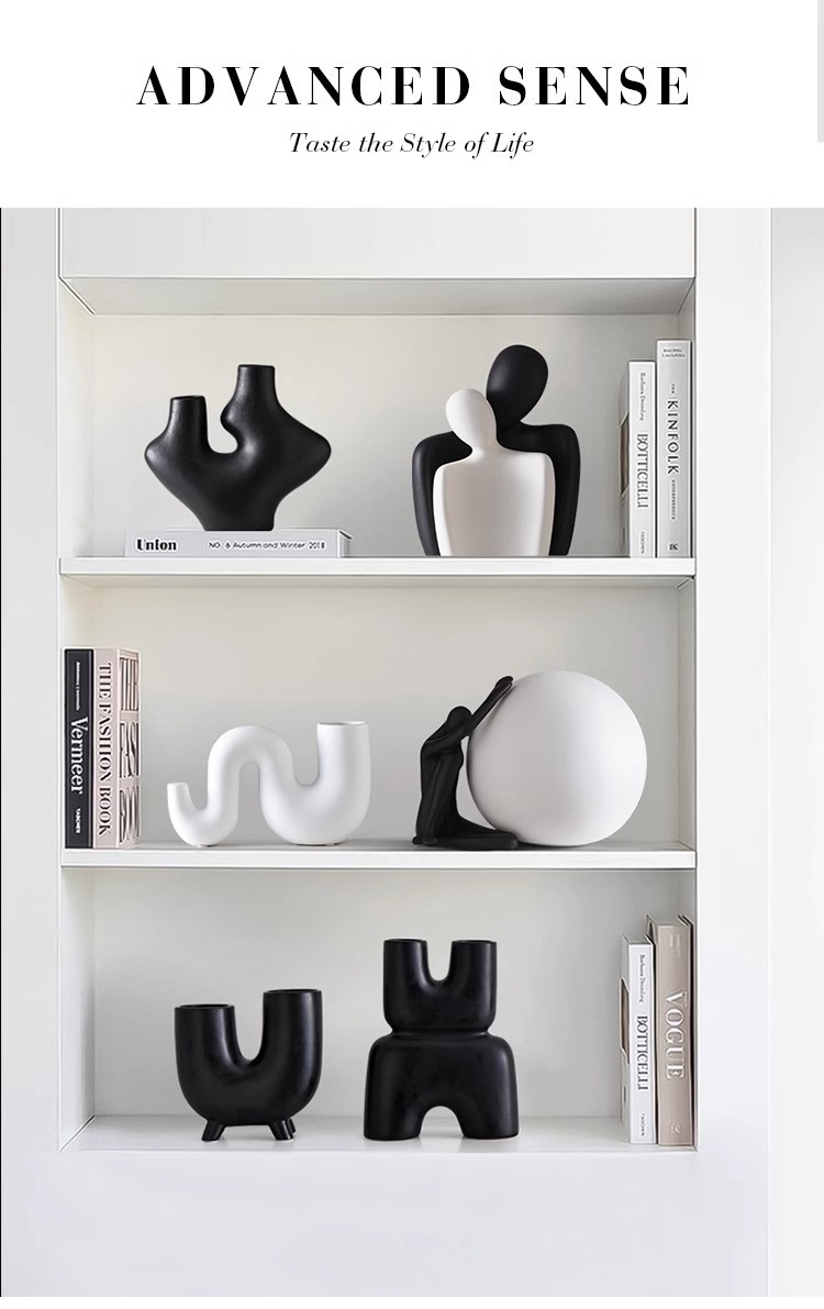 흑백 줄무늬 꽃병 장식품