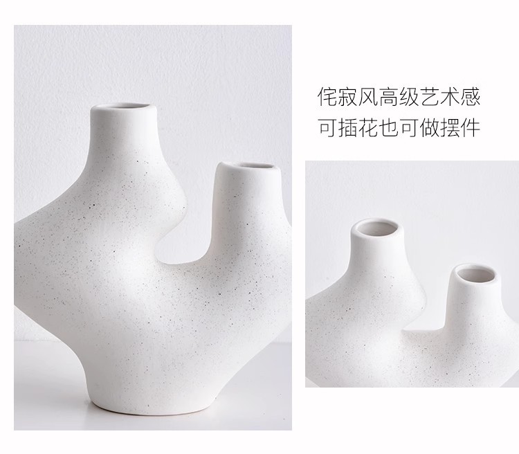 특별한 모양의 꽃병 장식품 - 황백색