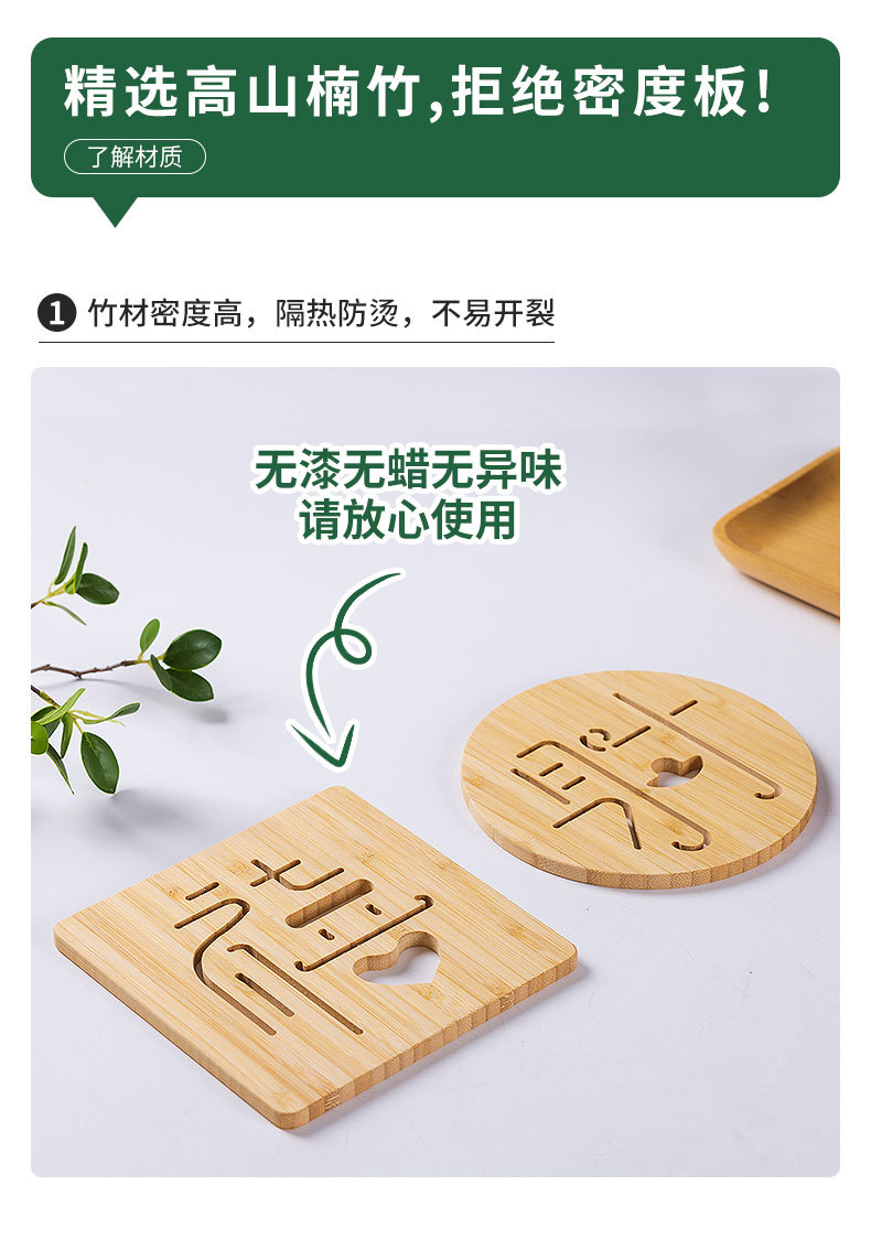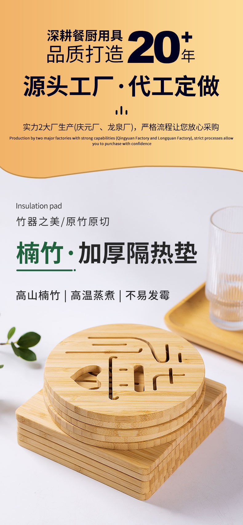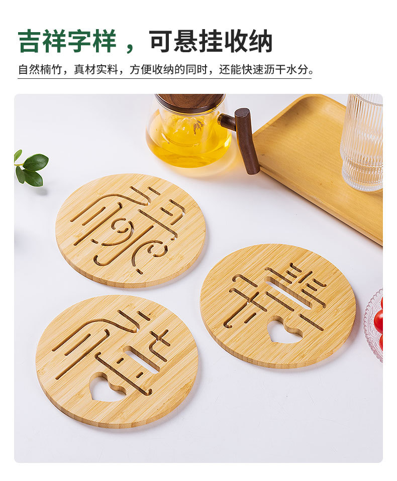 단열 매트 새로운 중국 스타일 대나무 가정용 식탁 매트 냄비 바닥 안티 스케일 코스터 플레이트 매트 보울 매트 제조 업체 재고 빠른 머리