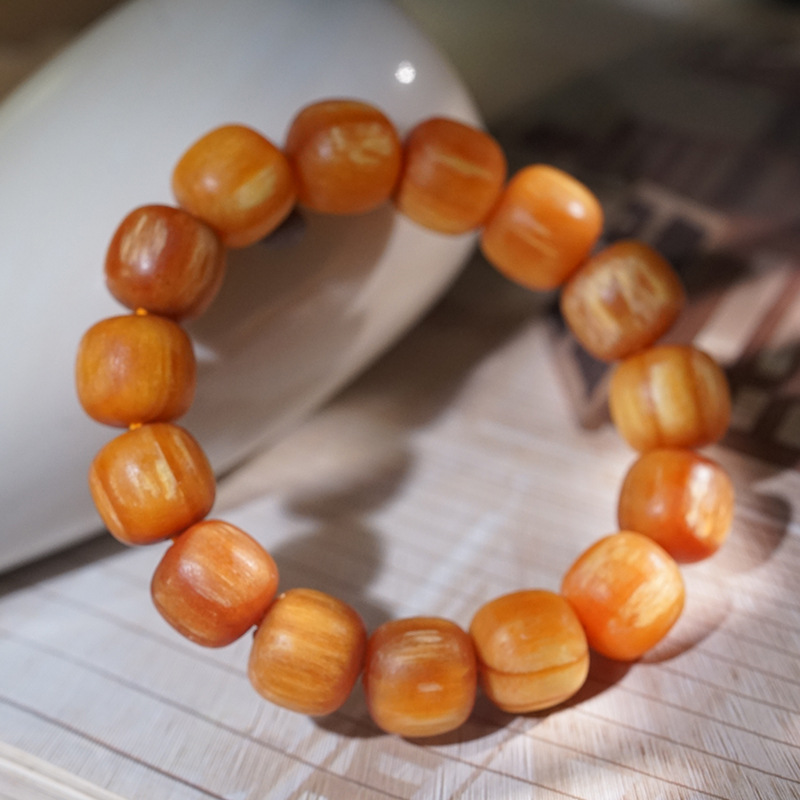 Pinus tabulaeformis Akiko 20MM 풀 옥 텍스트 플레이로 가득 찬 투명한 황실 용 호박색 나무 팔찌 Changbai 산 알로
