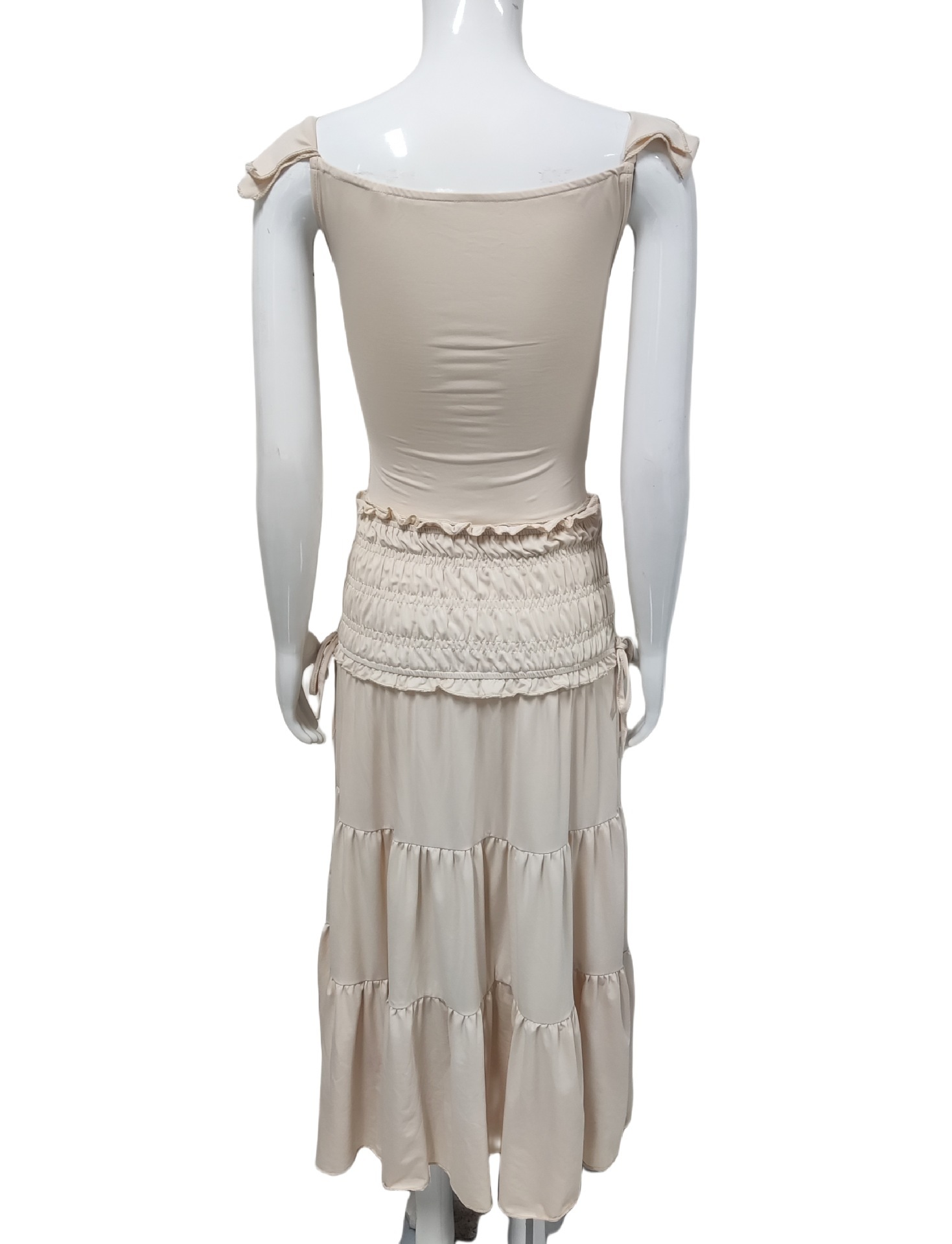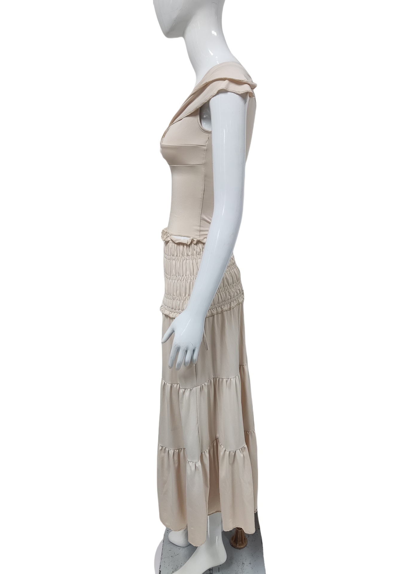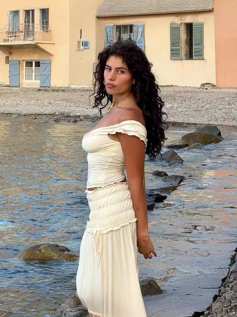 夏季新款女性露脐低胸短款背心法式气质褶皱半身裙女套装