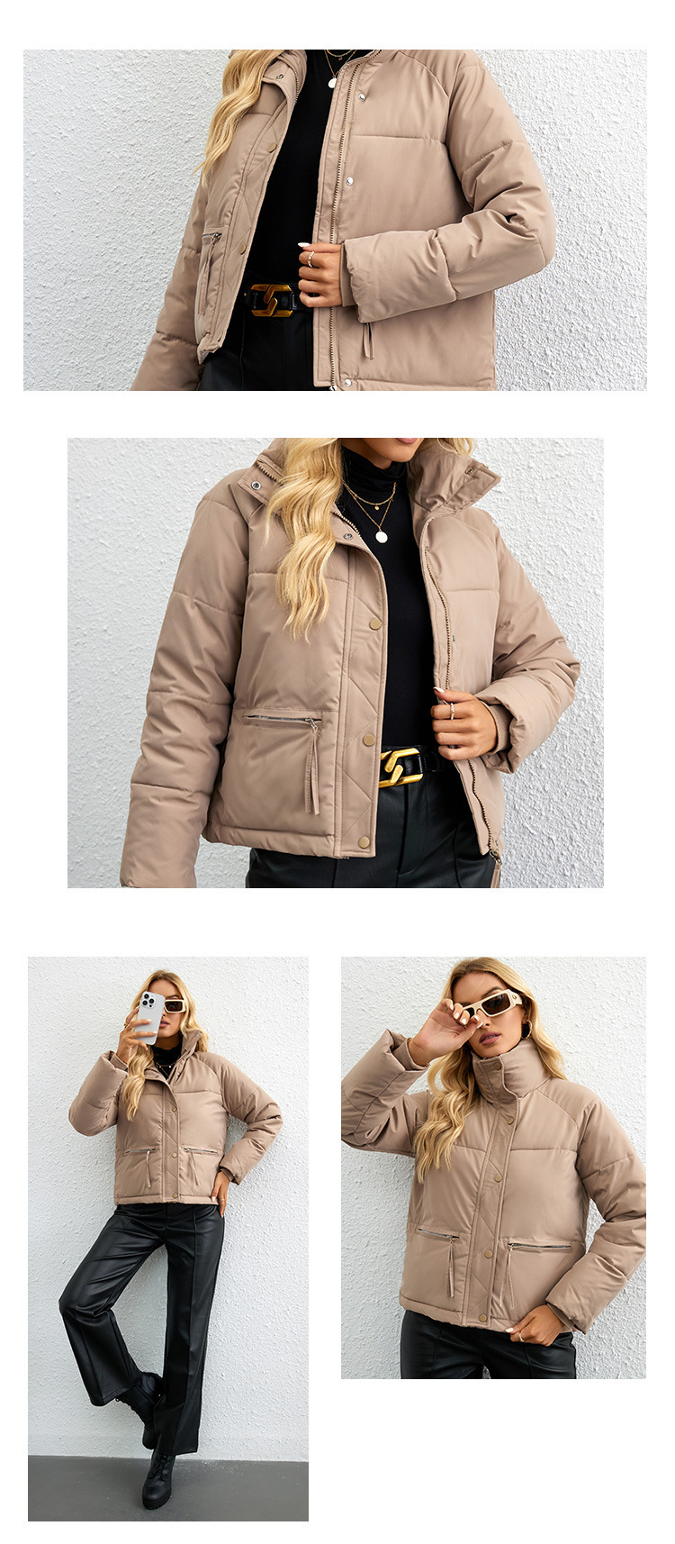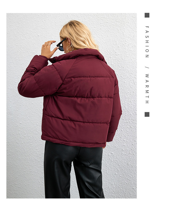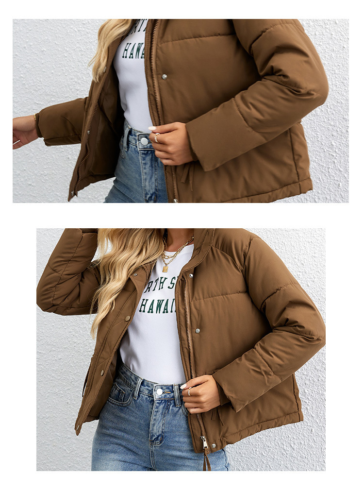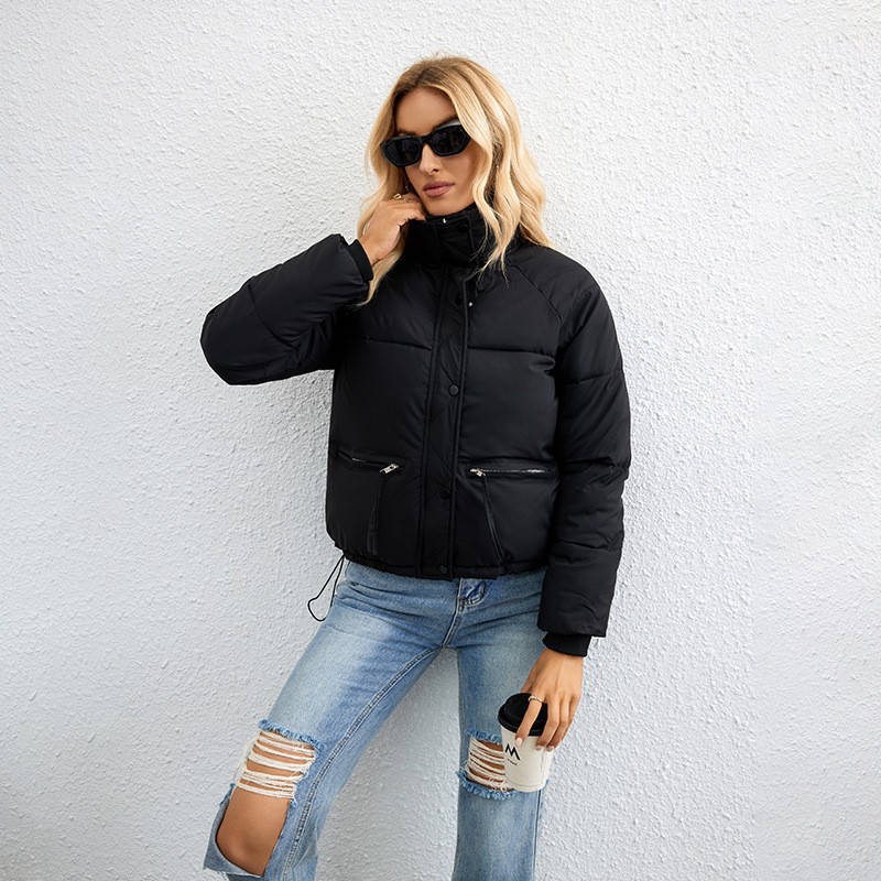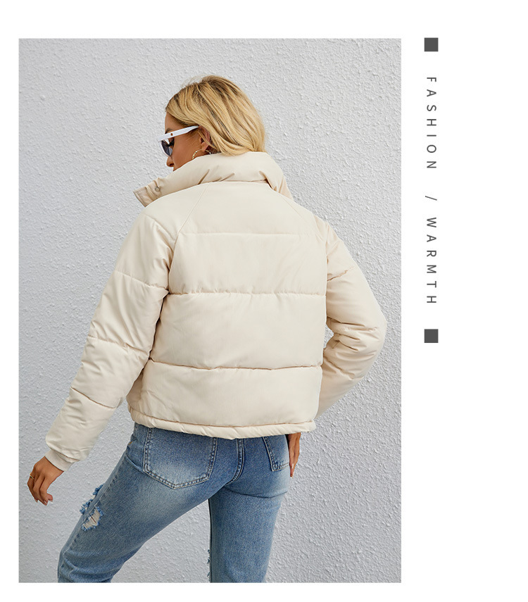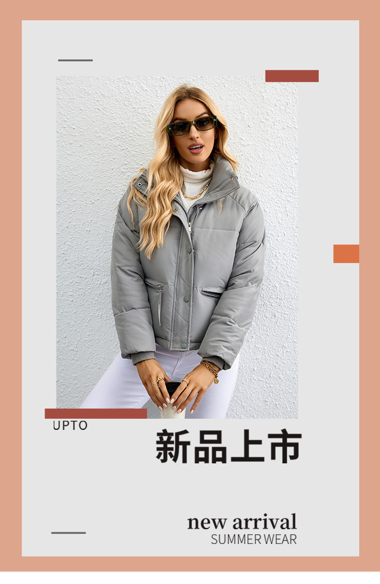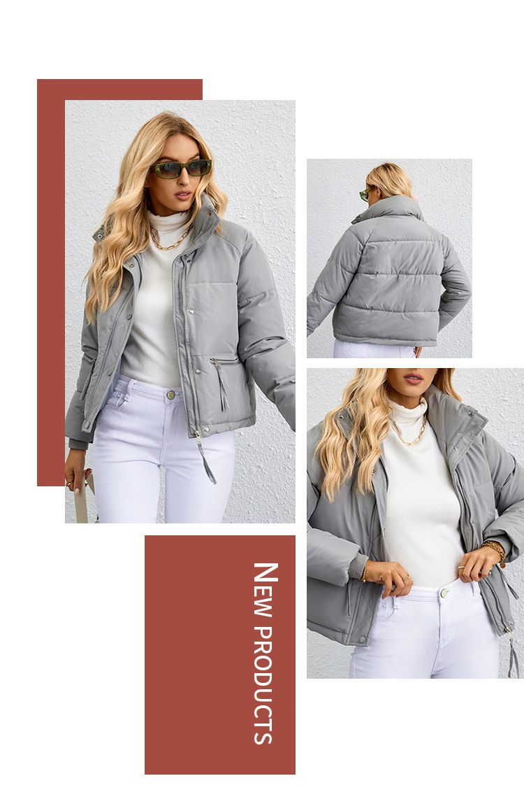 [재고] 유럽과 미국식 한국식 쇼트 스탠드 칼라 작은 다운 코튼 패딩 재킷 여성용 지퍼 빵면 패딩 재킷