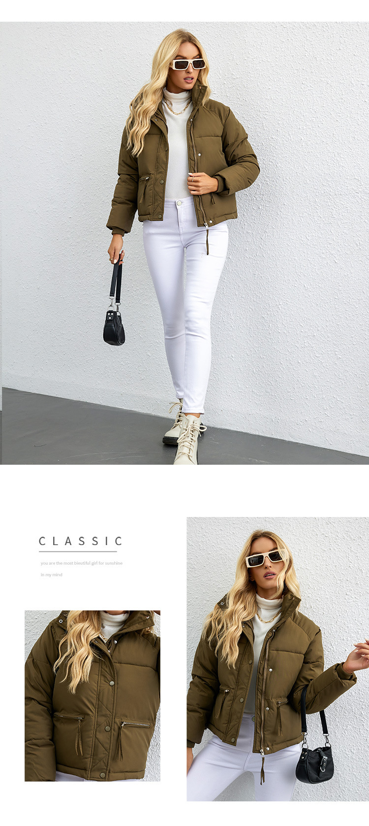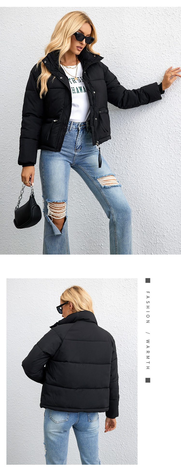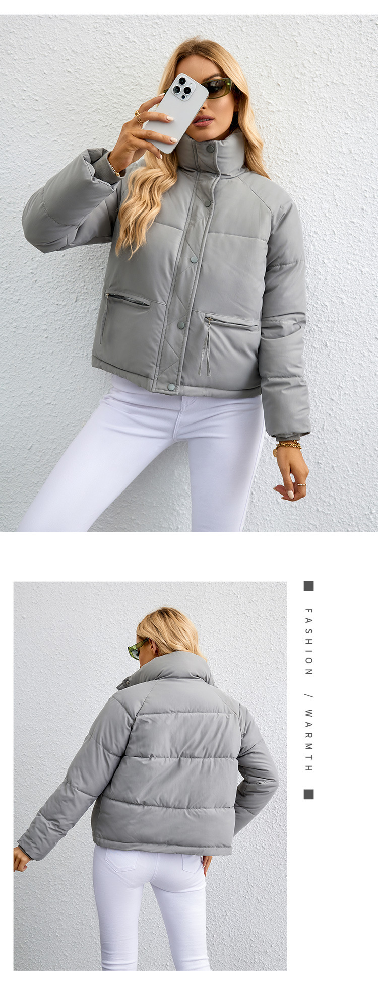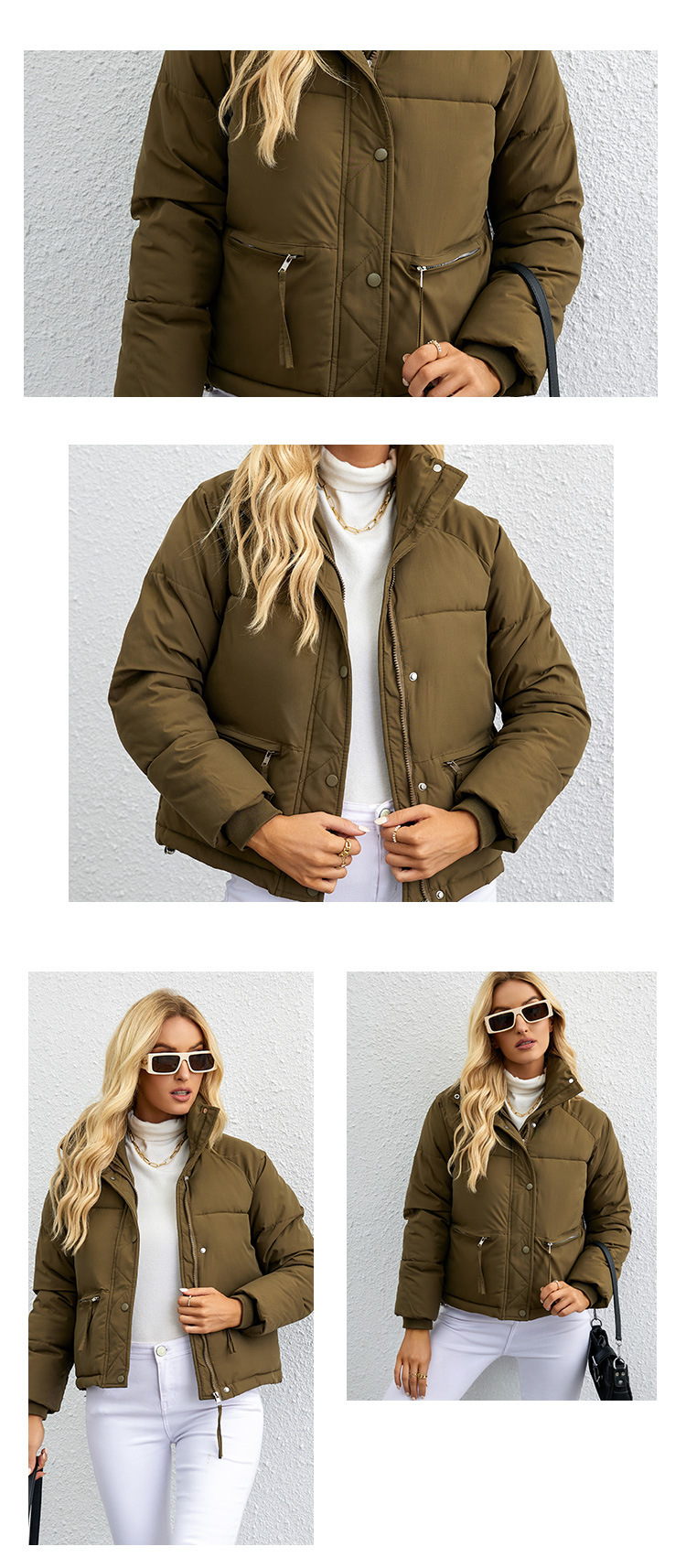 [재고] 유럽과 미국식 한국식 쇼트 스탠드 칼라 작은 다운 코튼 패딩 재킷 여성용 지퍼 빵면 패딩 재킷