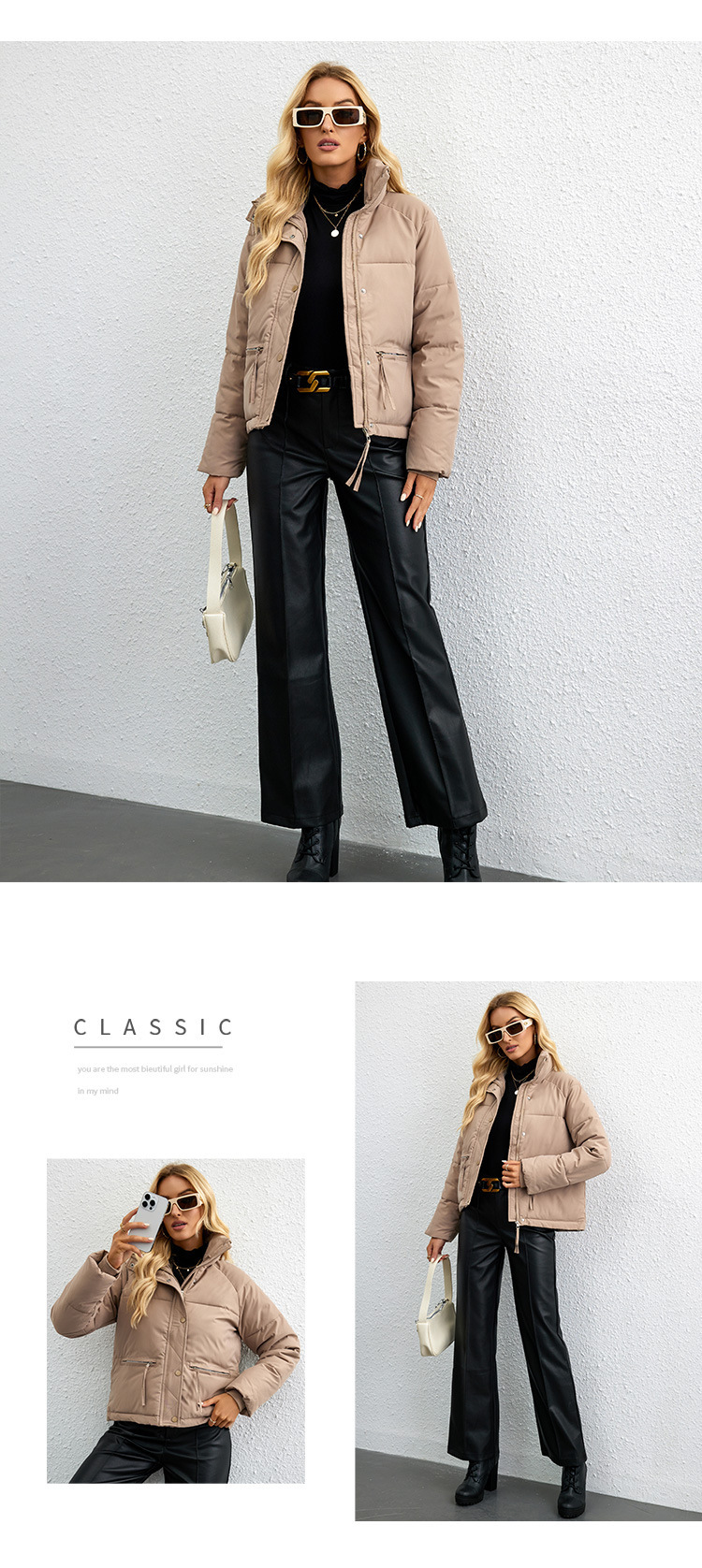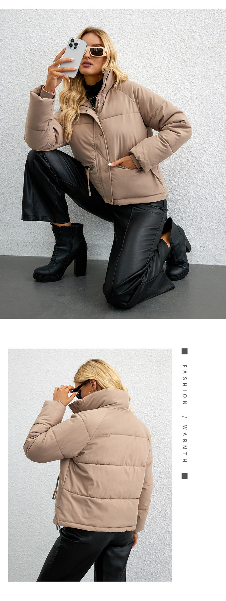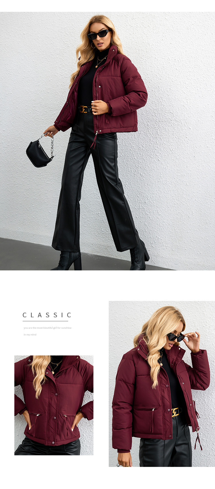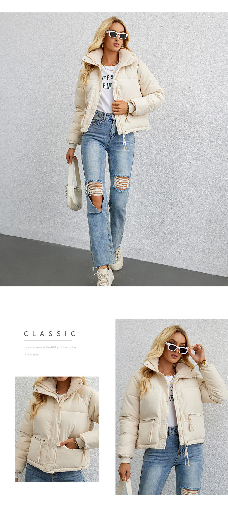 [재고] 유럽과 미국식 한국식 쇼트 스탠드 칼라 작은 다운 코튼 패딩 재킷 여성용 지퍼 빵면 패딩 재킷