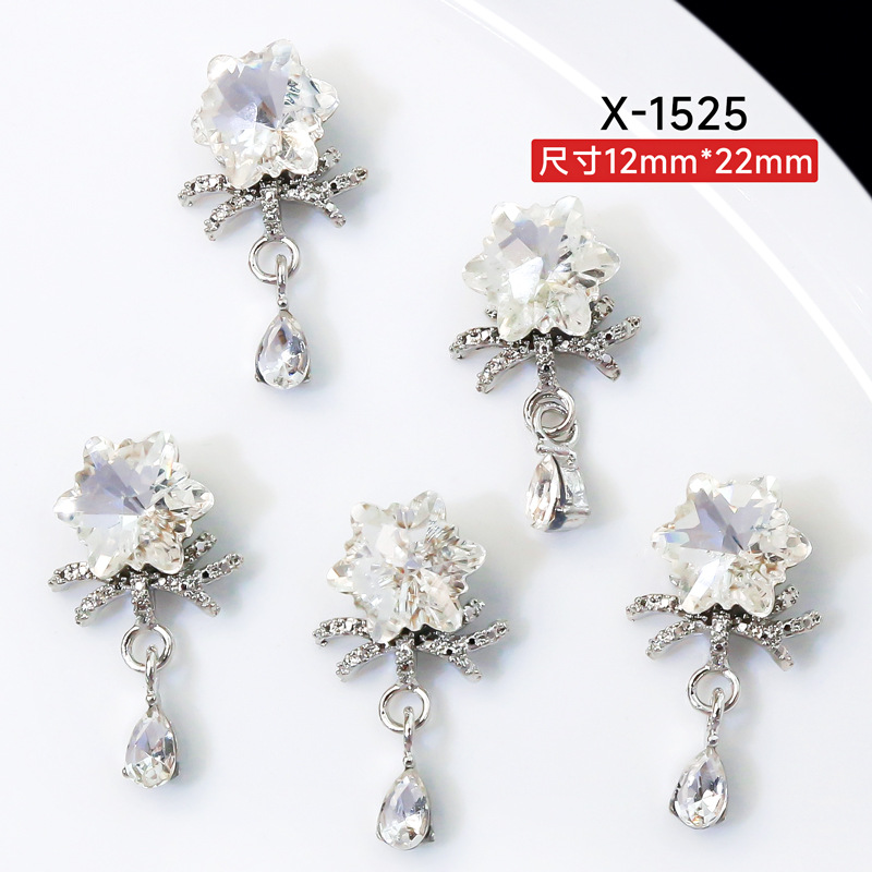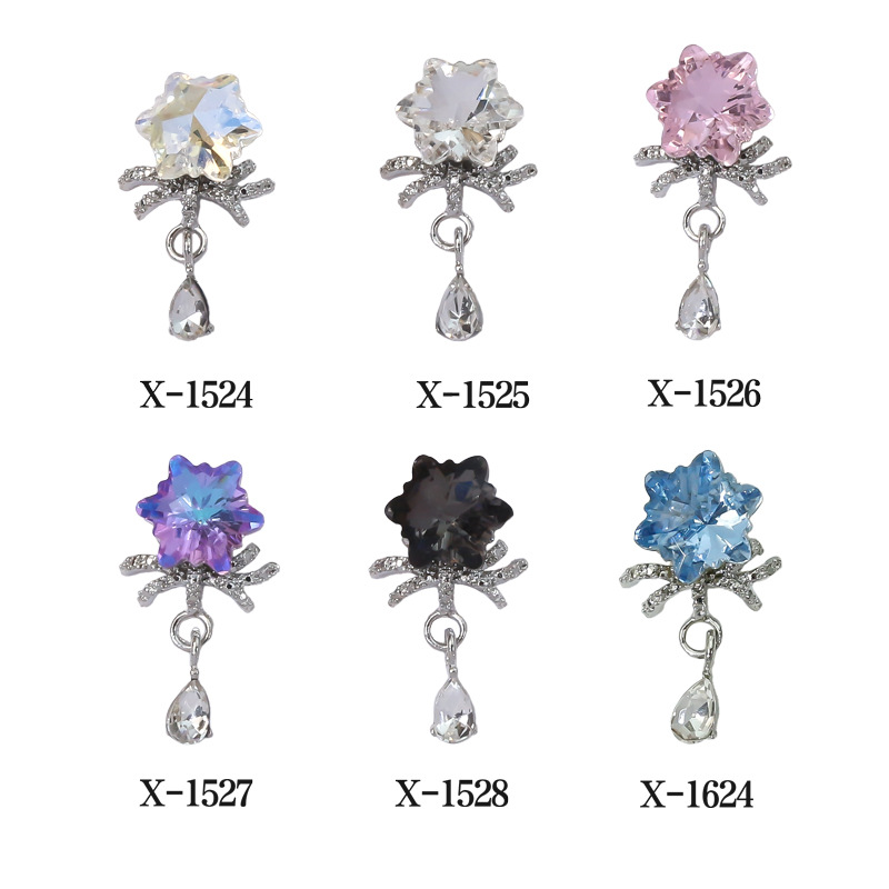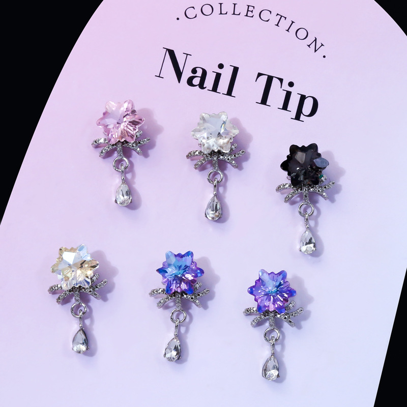 새로운 판타지 눈송이 펜던트 체인 네일 아트 액세서리 슈퍼 반짝이는 합금 다이아몬드 라이트 럭셔리 네일 아트 액세서리 네일 장식