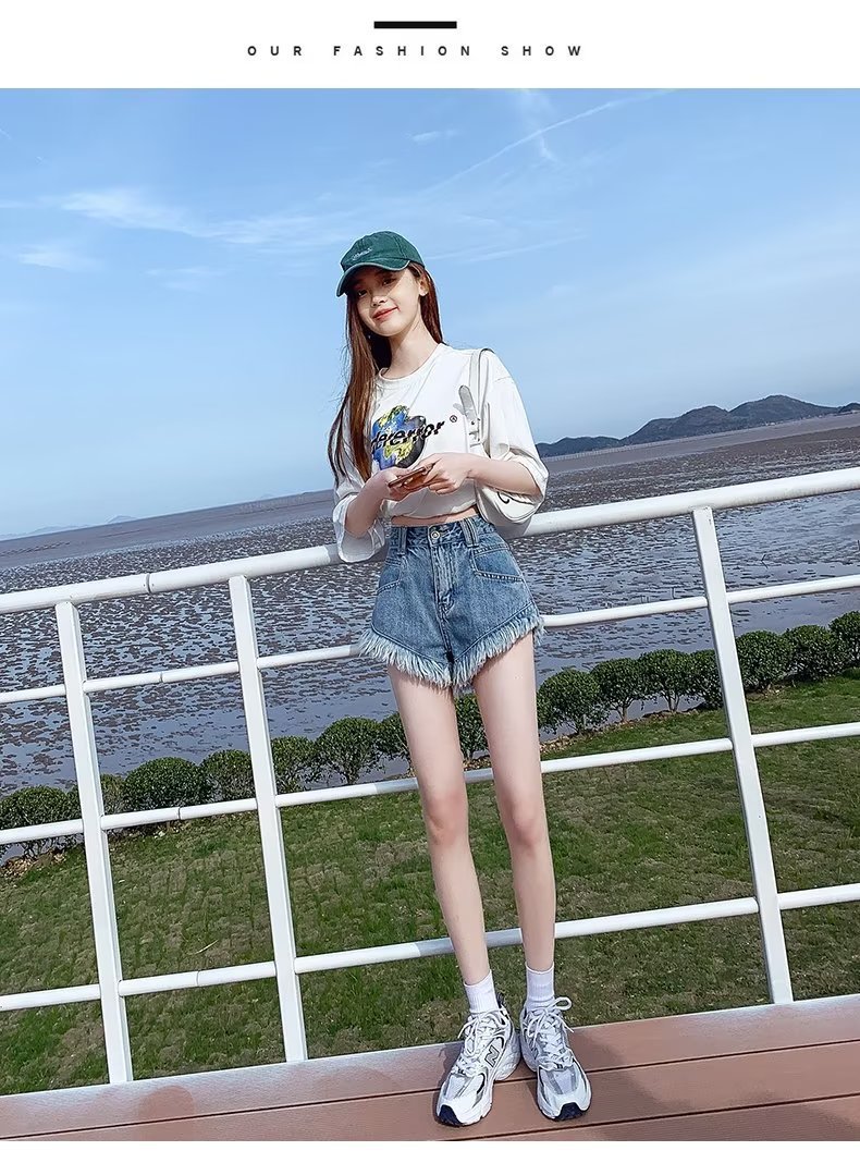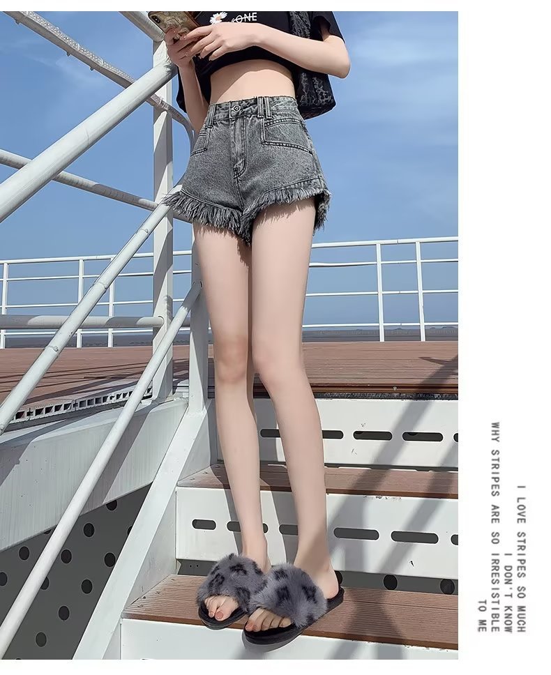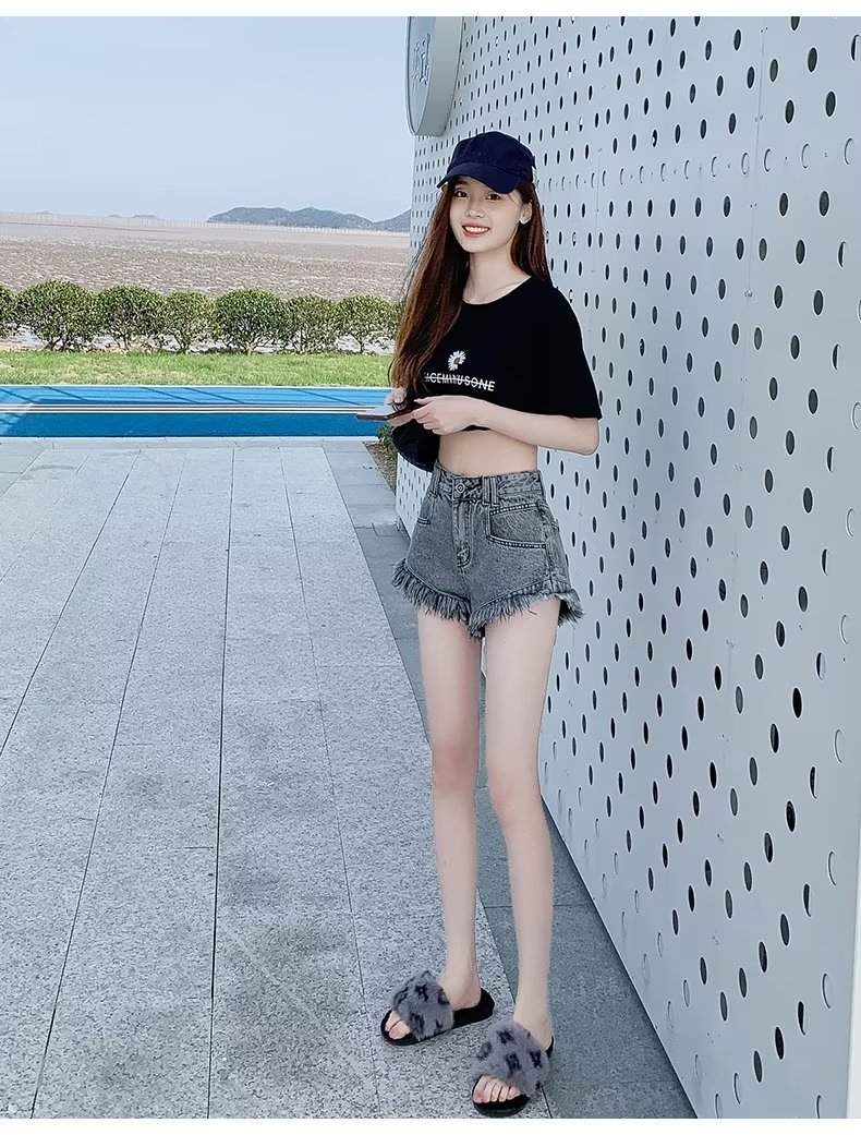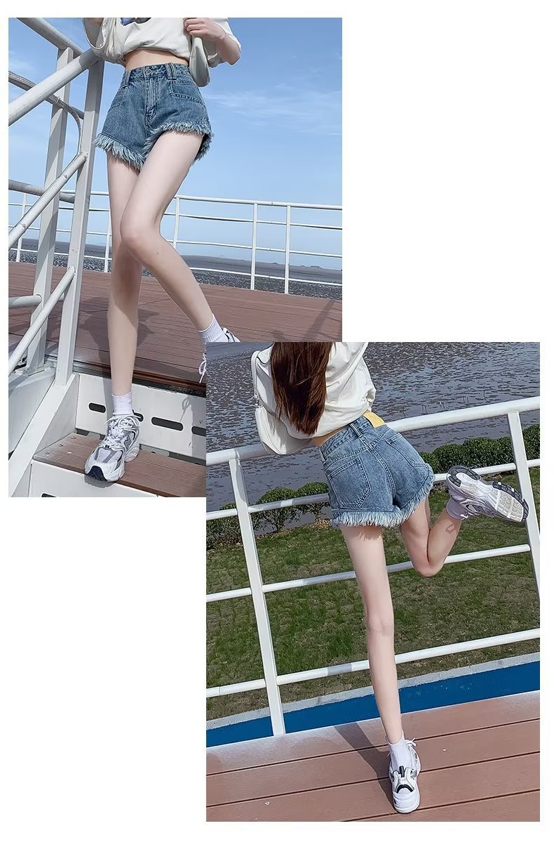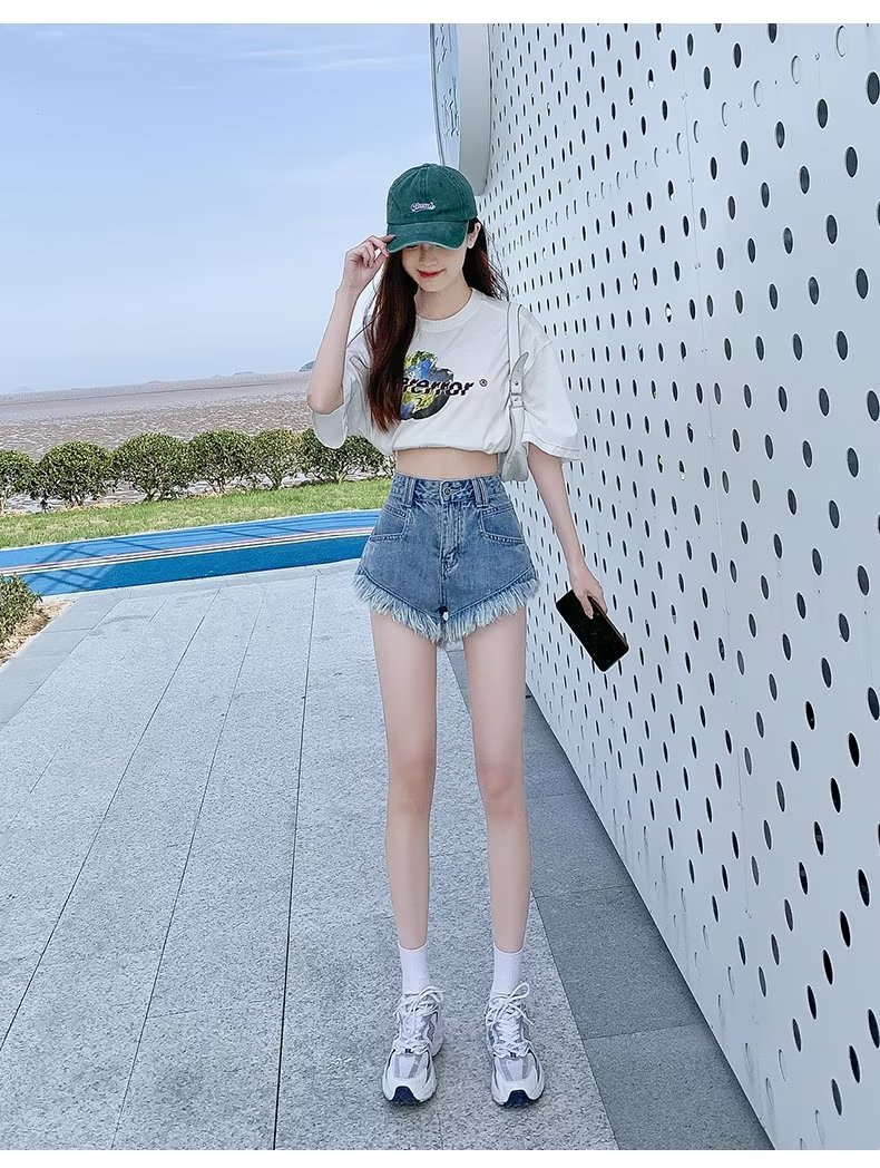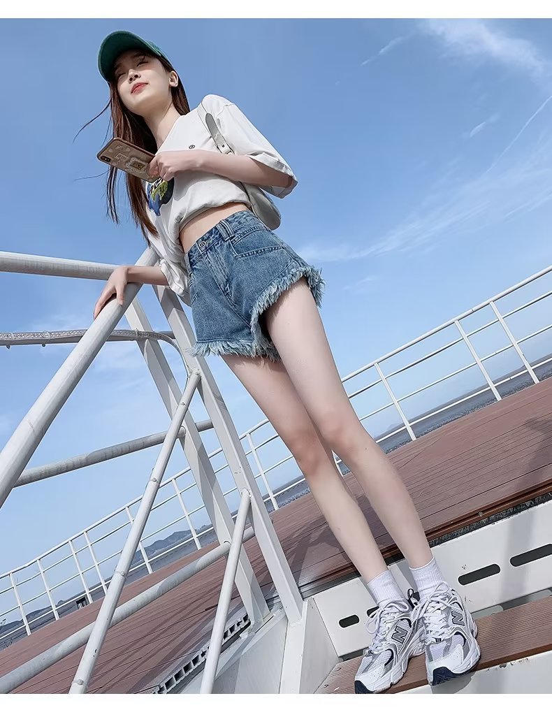 높은 허리 슬림 룩 핑크 데님 반바지 여성 여름 2023 새로운 스타일 작은 느슨한 산조각 슬림 룩 핫 바지