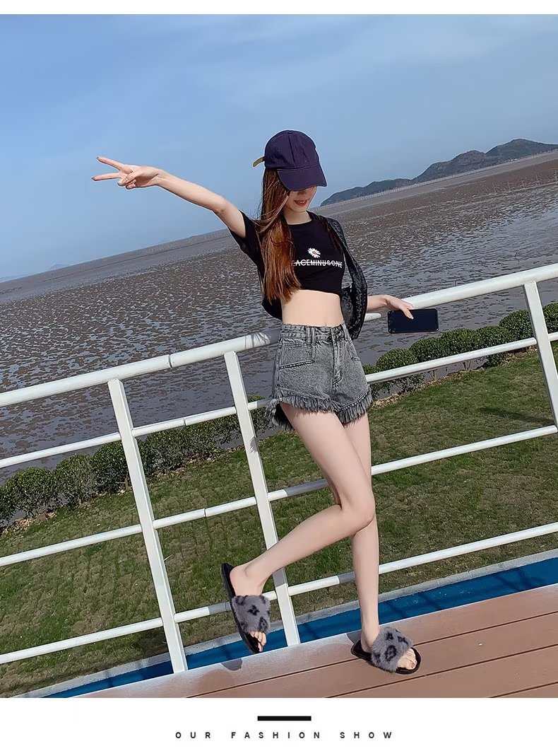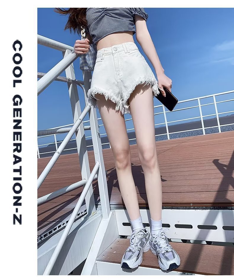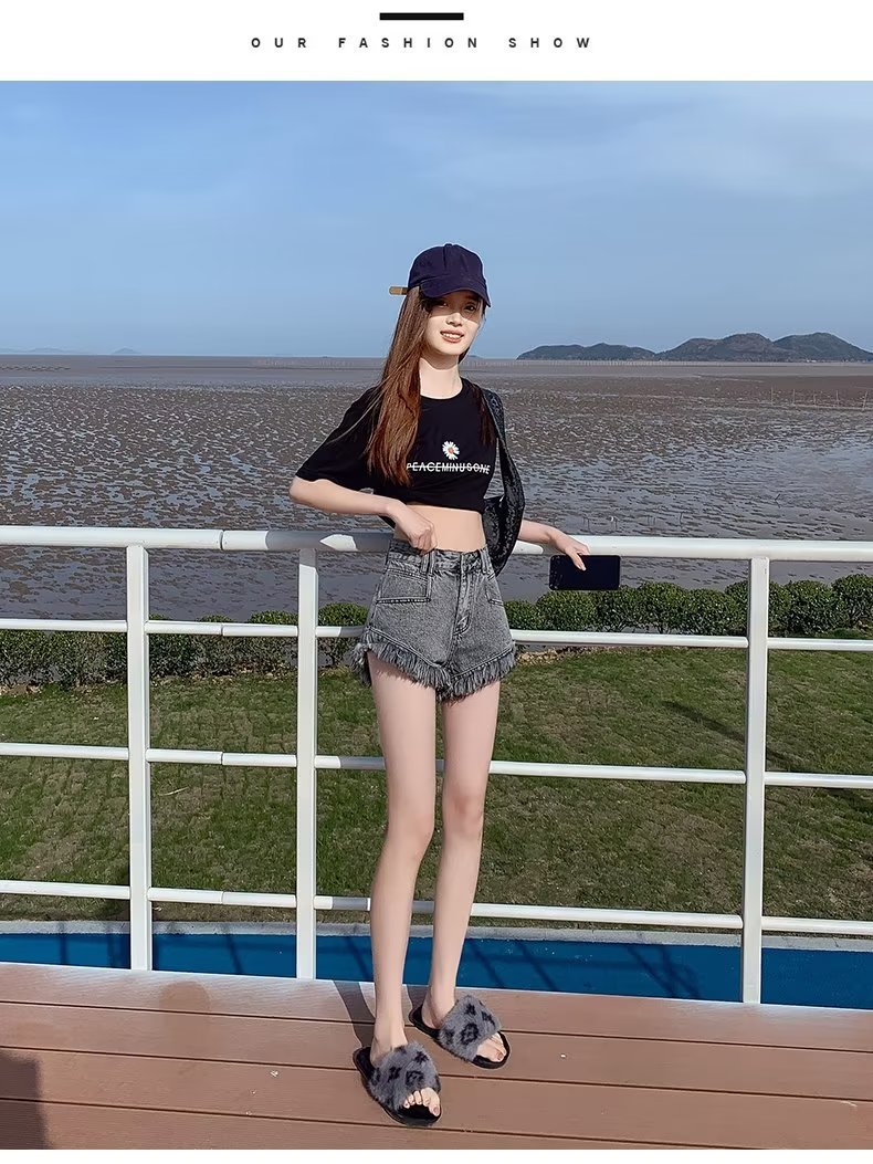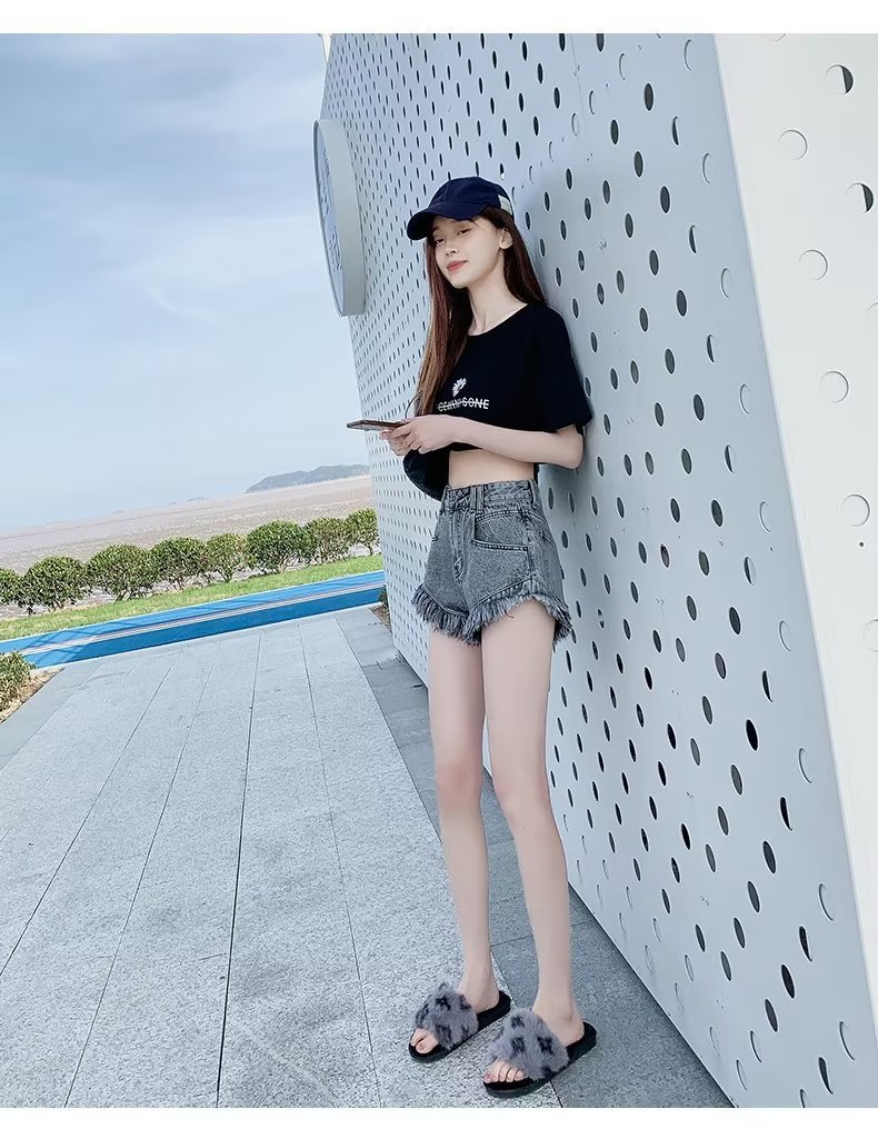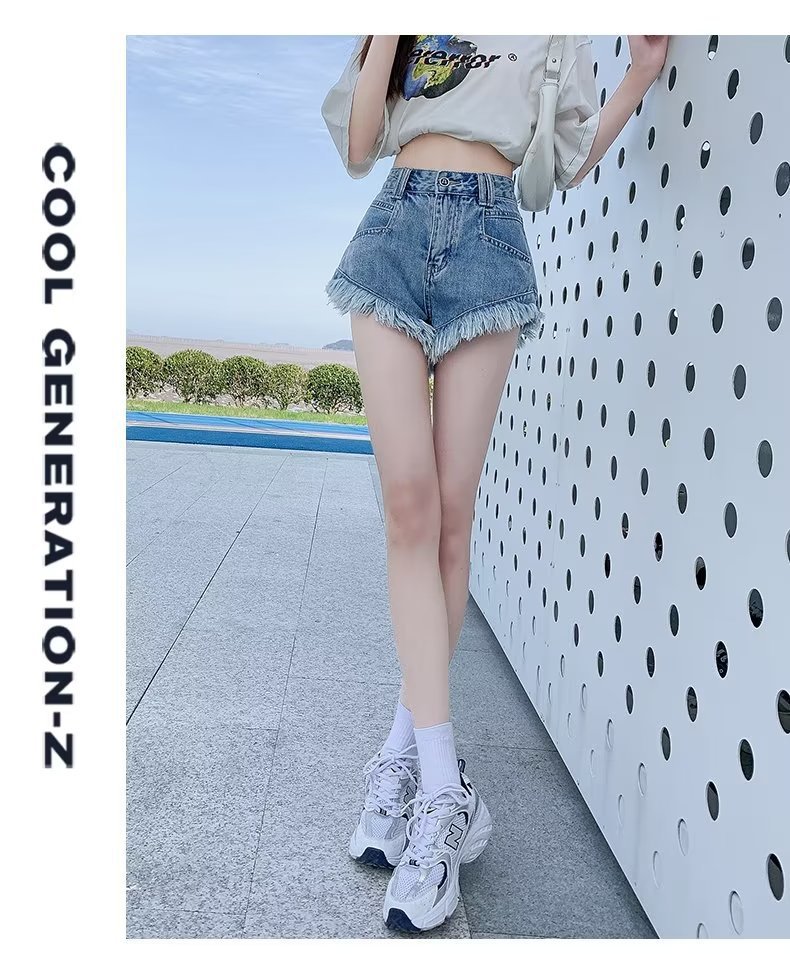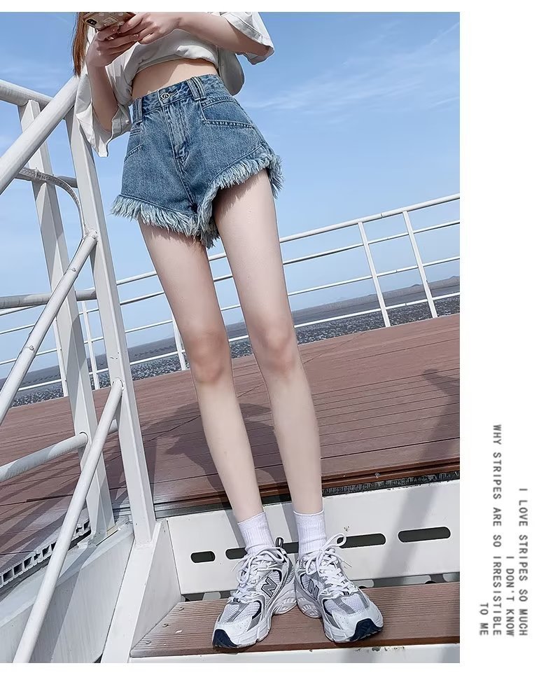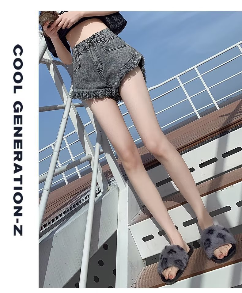 높은 허리 슬림 룩 핑크 데님 반바지 여성 여름 2023 새로운 스타일 작은 느슨한 산조각 슬림 룩 핫 바지