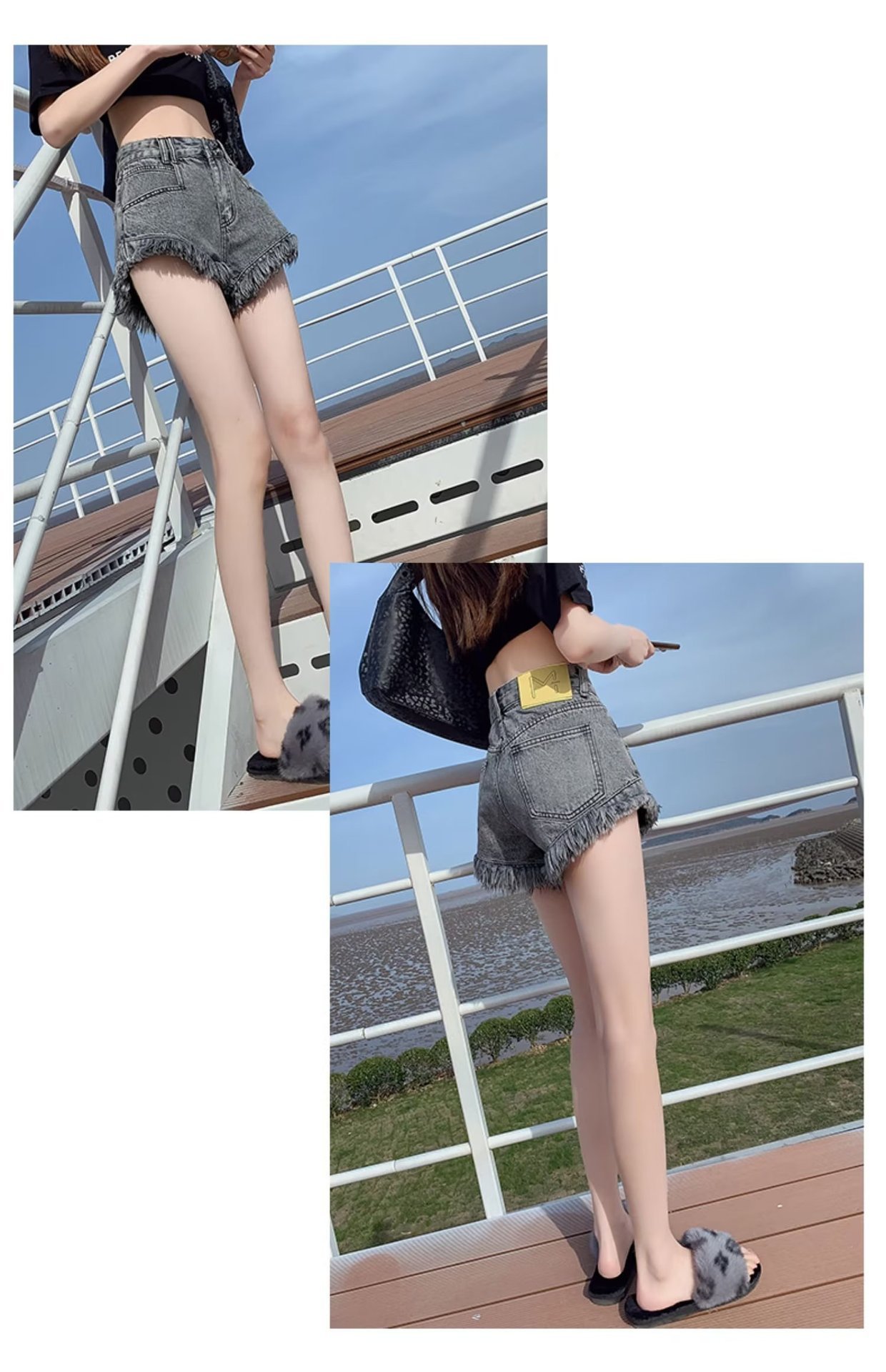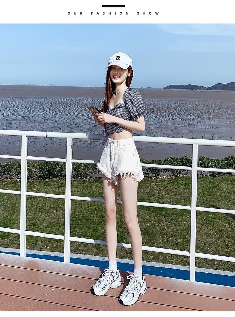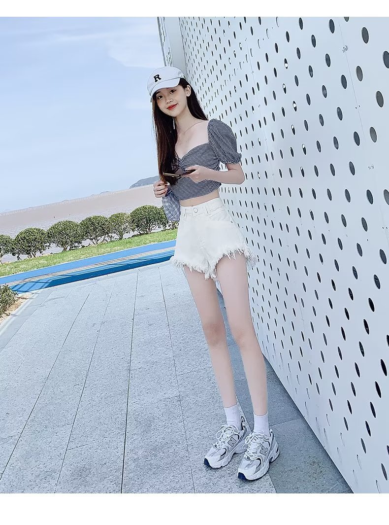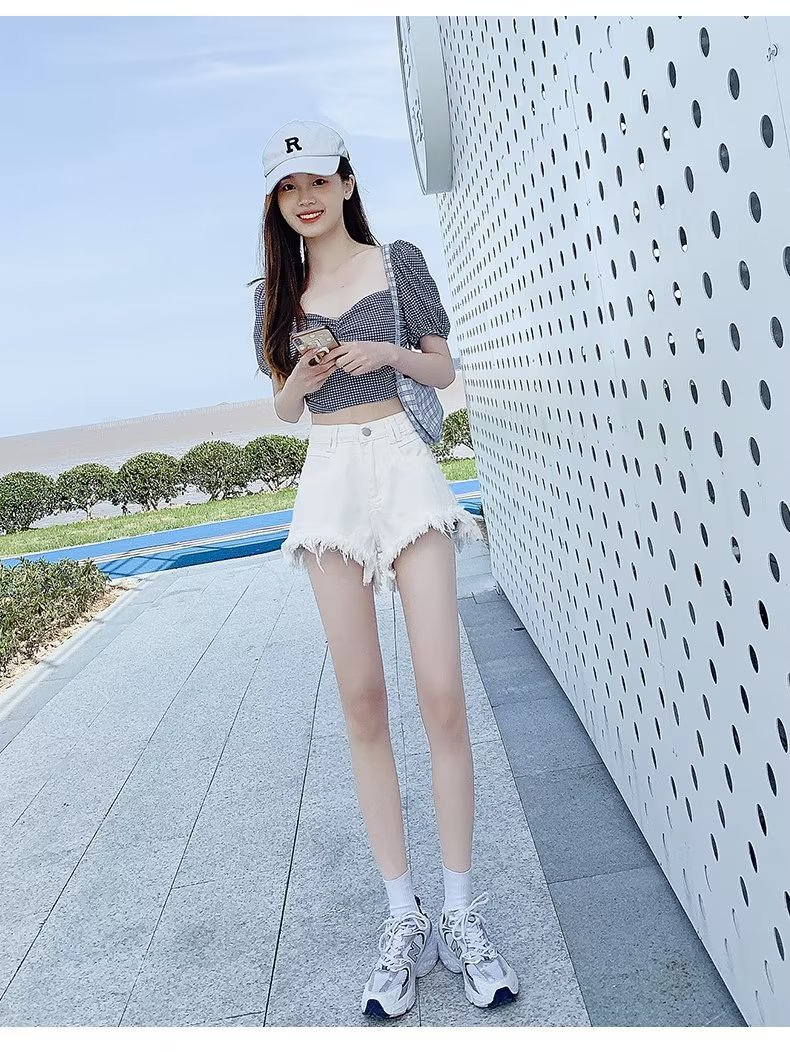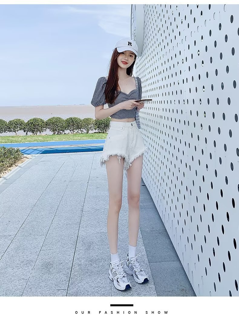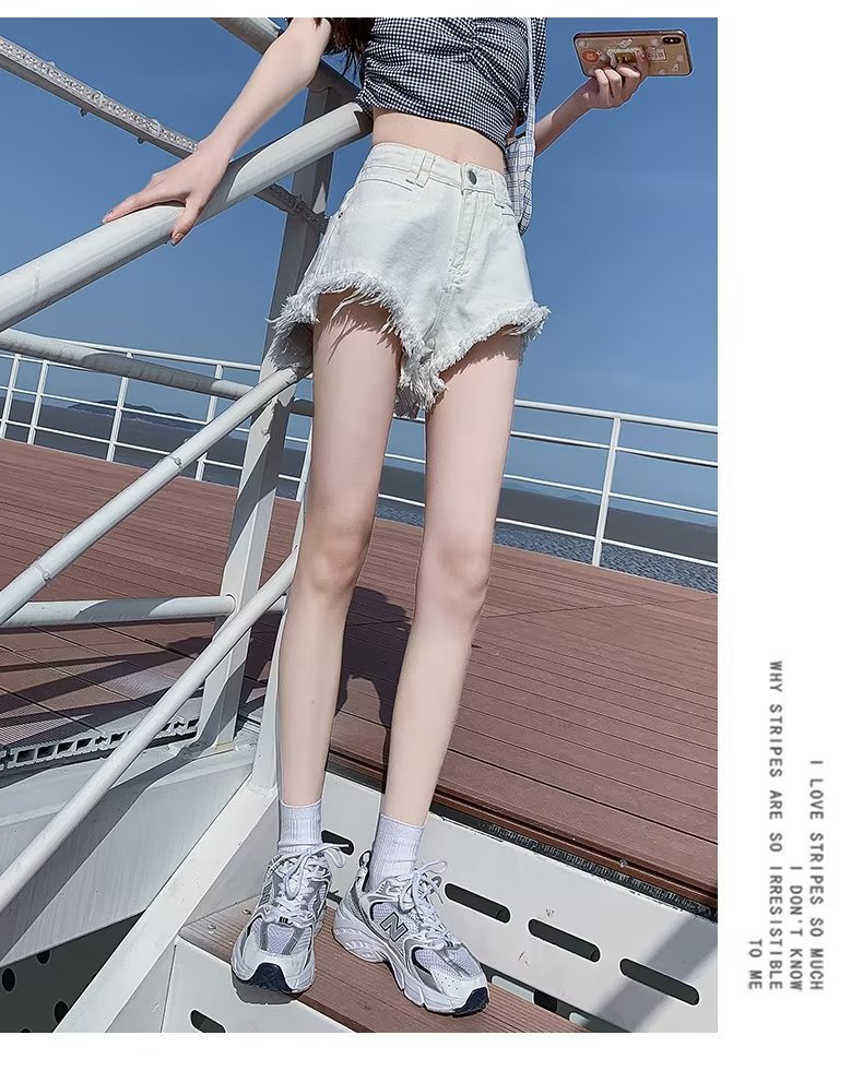 높은 허리 슬림 룩 핑크 데님 반바지 여성 여름 2023 새로운 스타일 작은 느슨한 산조각 슬림 룩 핫 바지