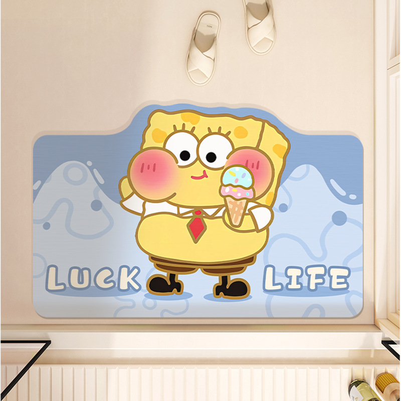 욕실 바닥 매트 만화 스폰지 밥 다이아몬드 진흙 흡수성 빠른 건조 화장실 문 미끄럼 방지 낙하 화장실 발 매트