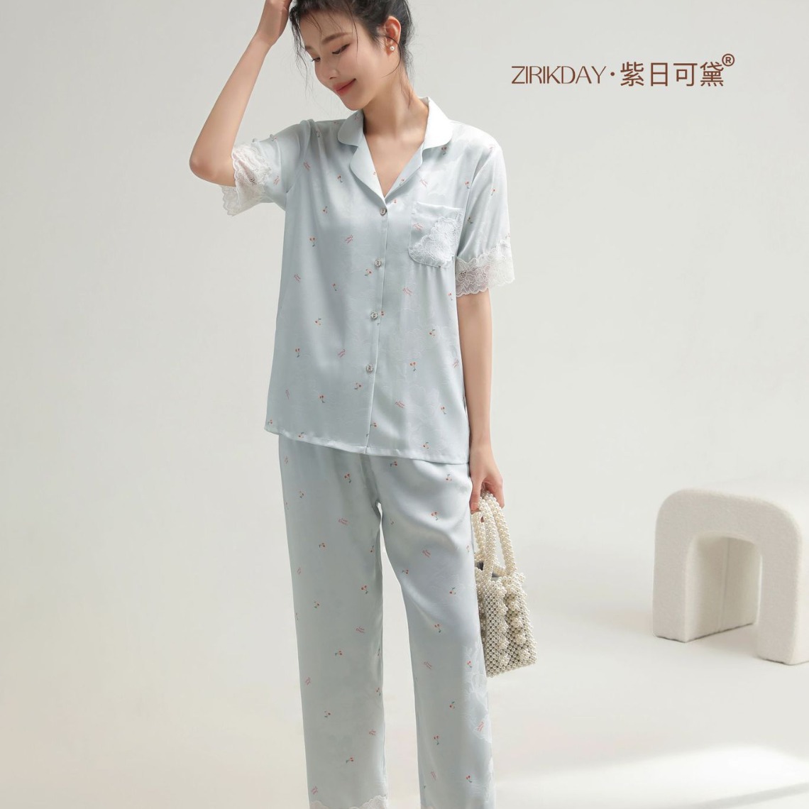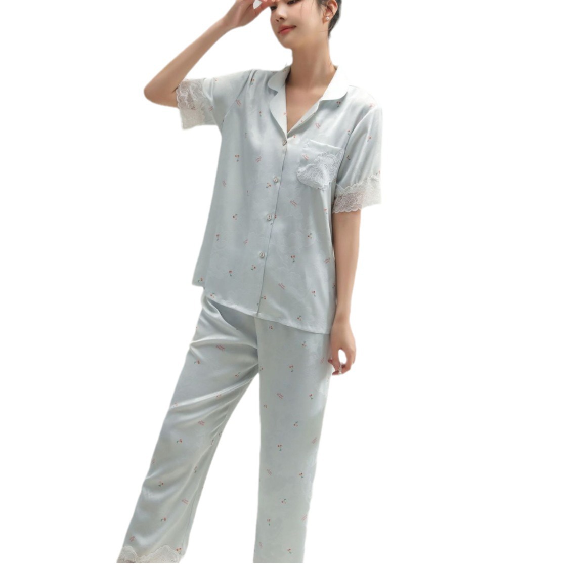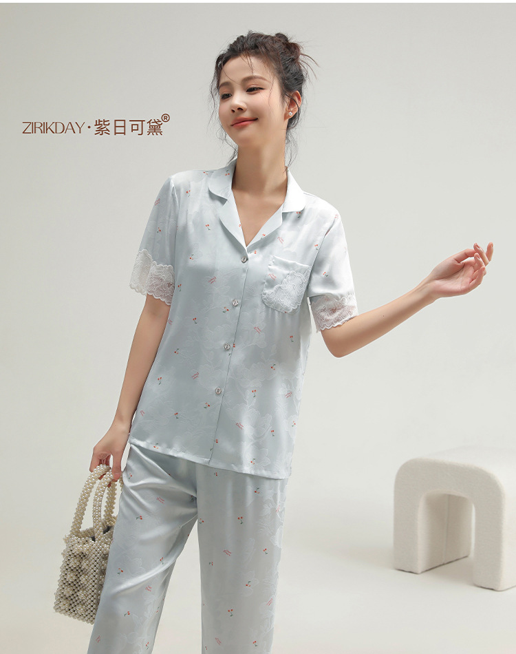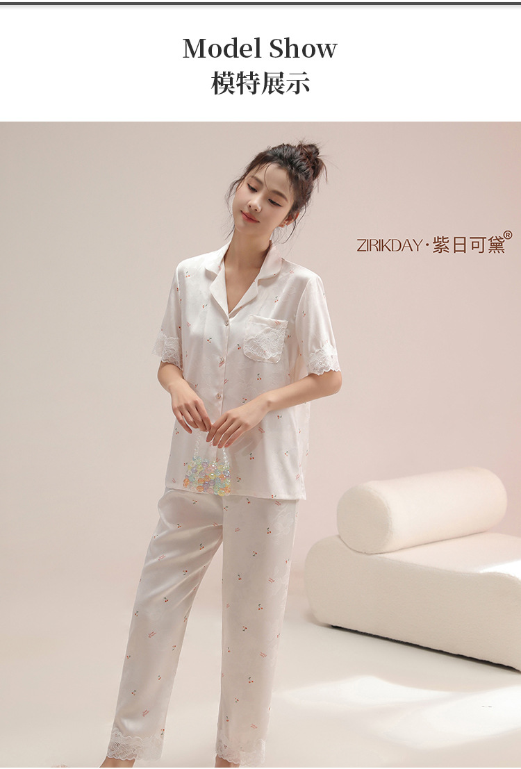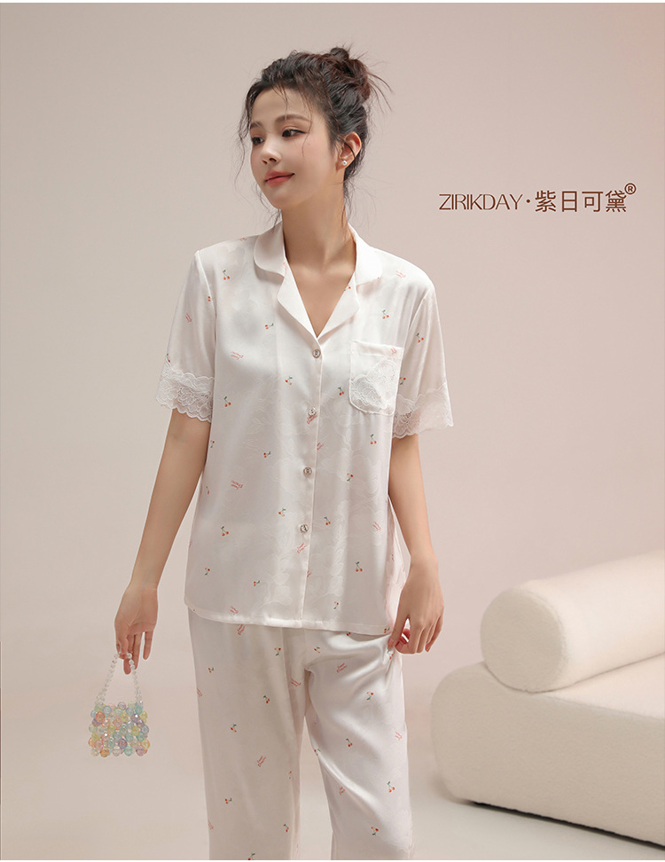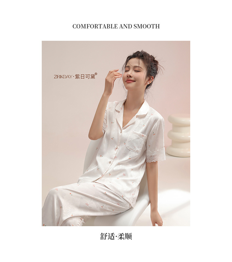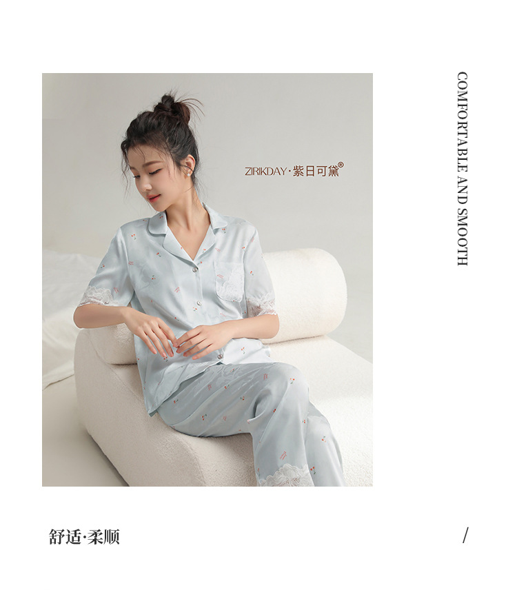 여성용 아이스 실크 잠옷, 여름용 얇은 반팔 실크 세트, 봄, 가을에 외부 착용 가능, 대형 사이즈, 고급 홈웨어