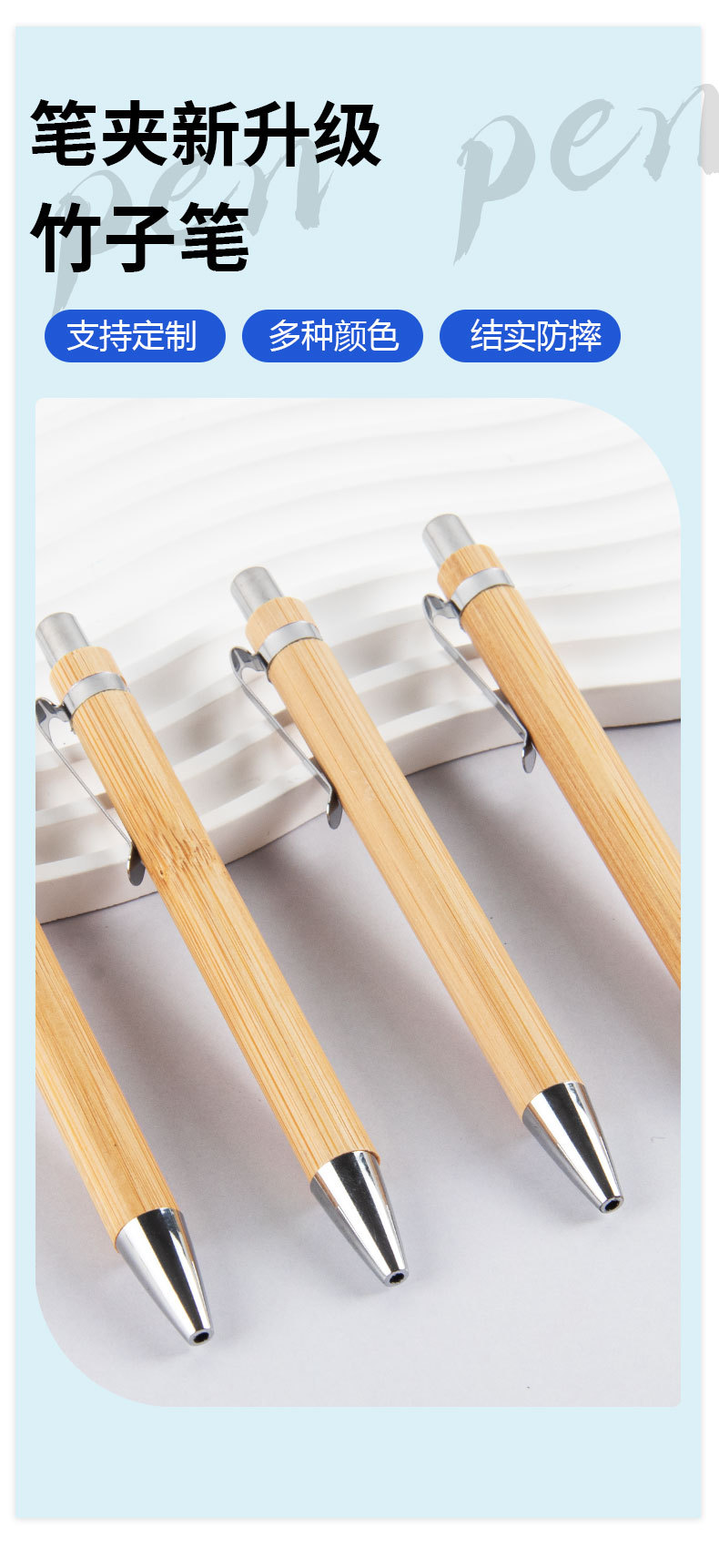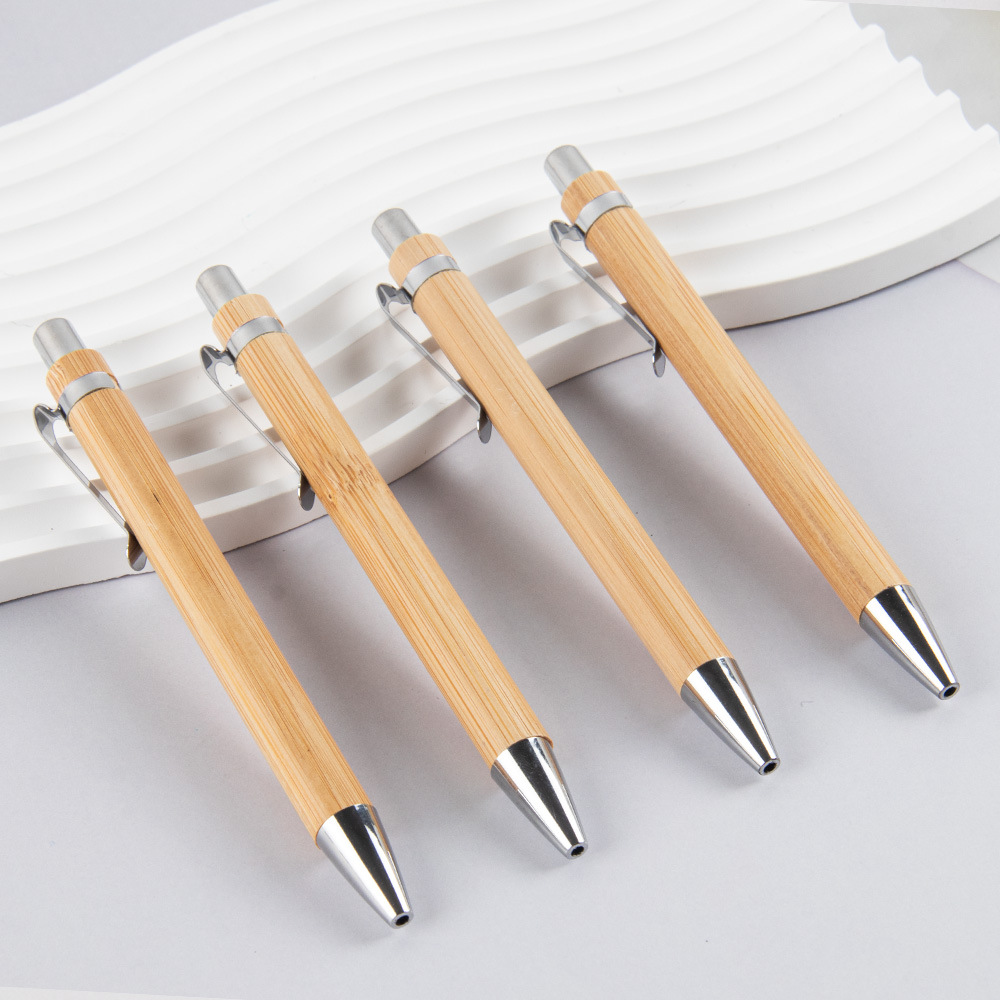 창조적 인 대나무 볼펜 사무실 문구 광고 선물 펜 인쇄 가능한 로고 재고 프레스 대나무 펜 도매