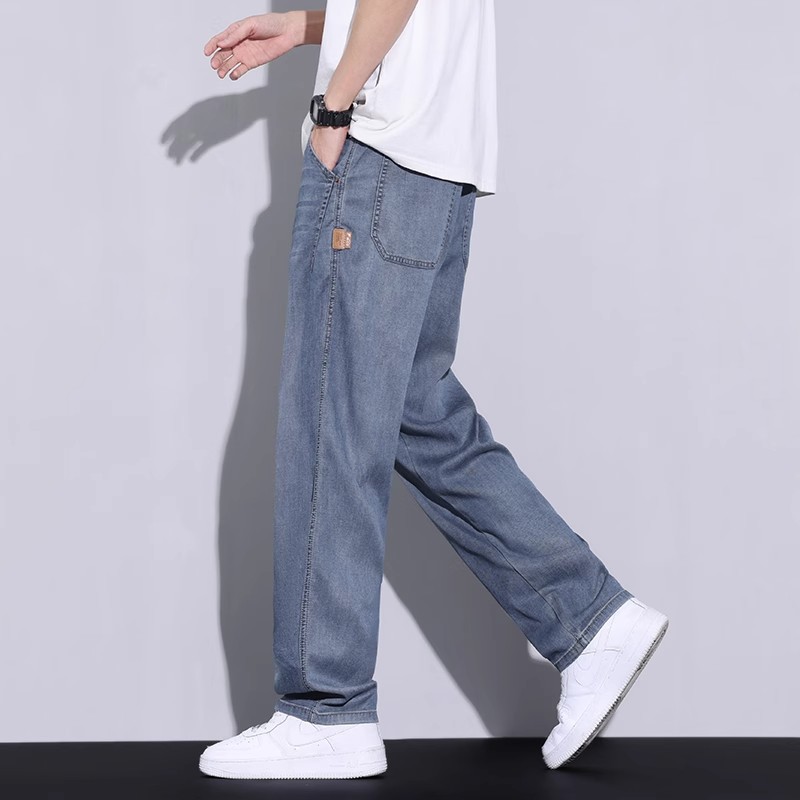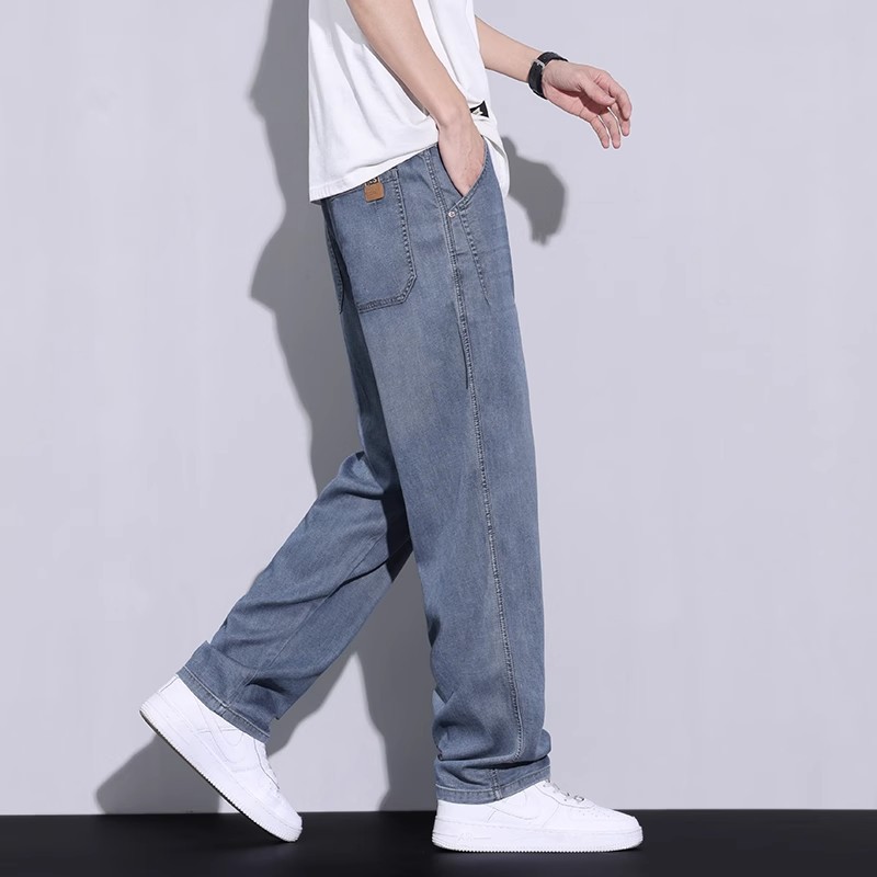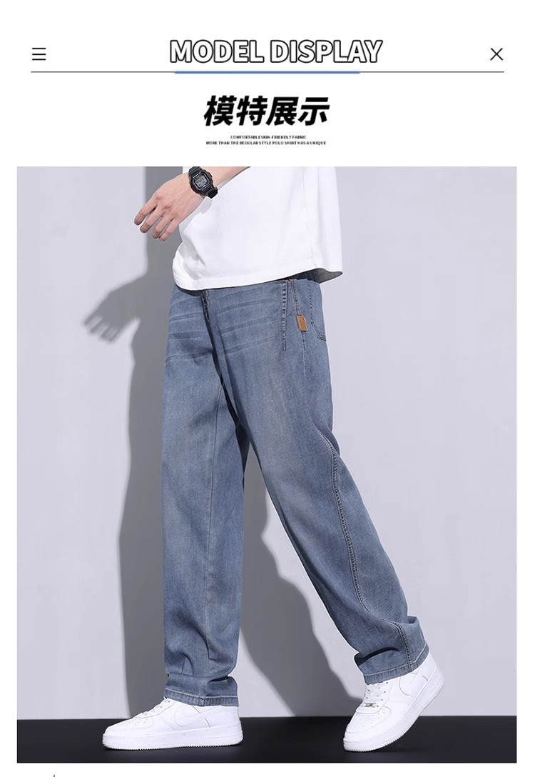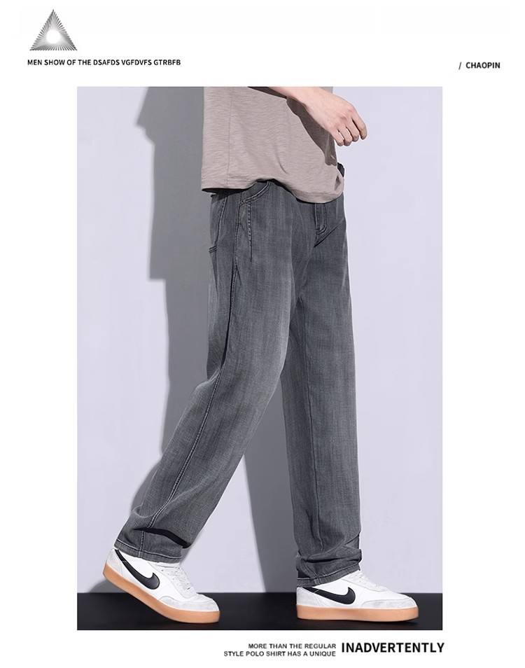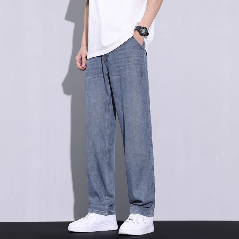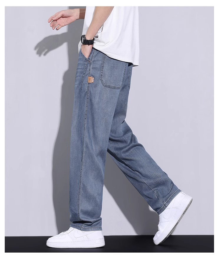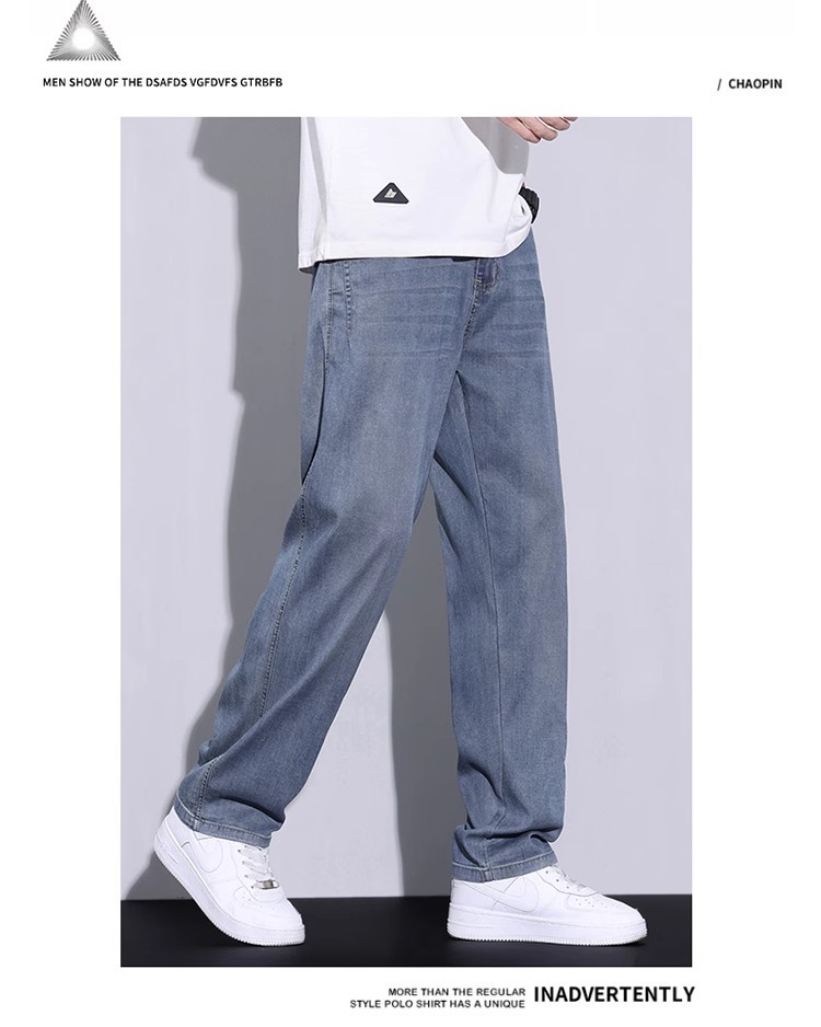 텐셀 스트레이트 청바지 남성용 여름 얇은 새로운 느슨한 넓은 다리 세척 미국 스타일 하이 스트리트 캐주얼 긴 바지