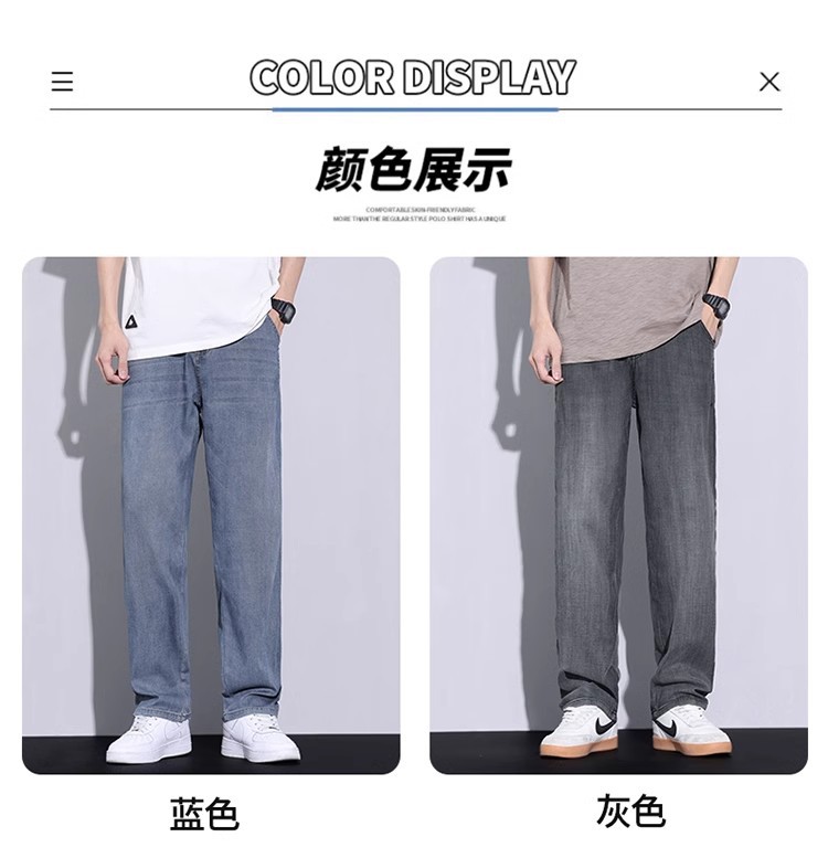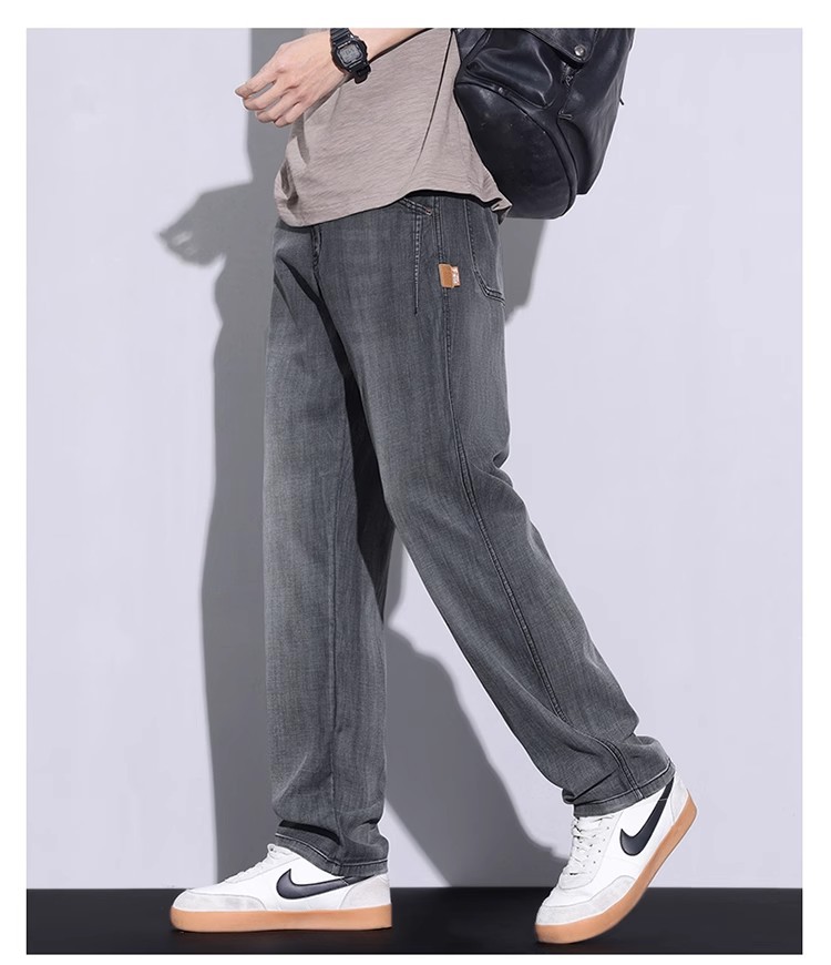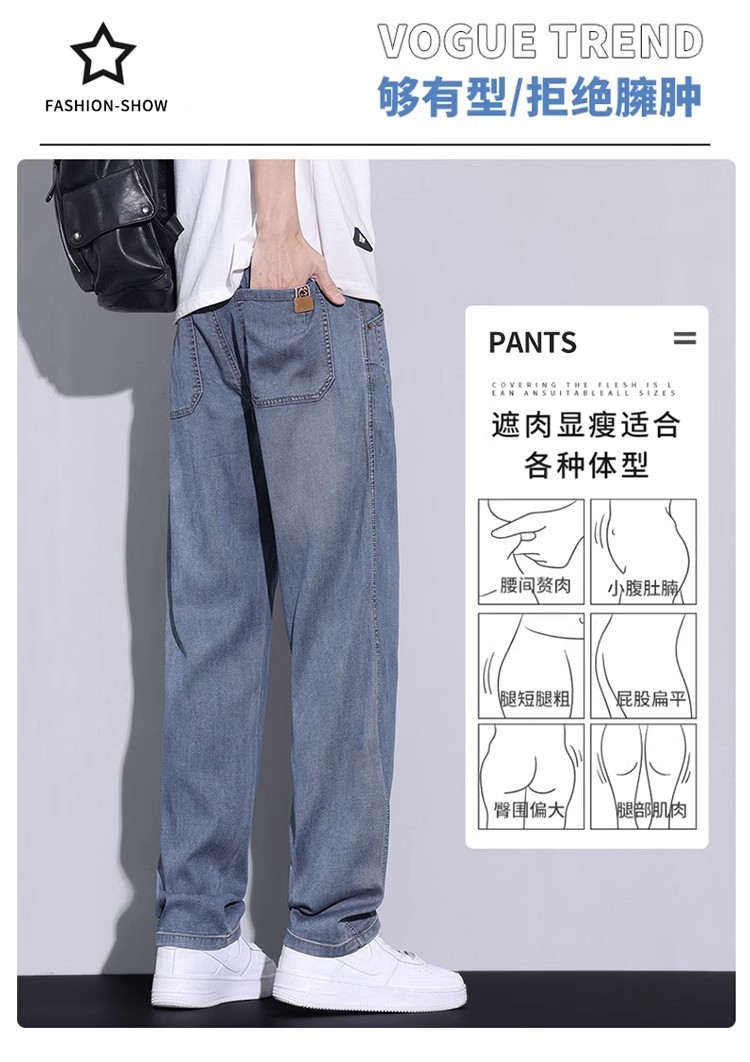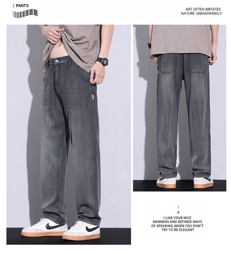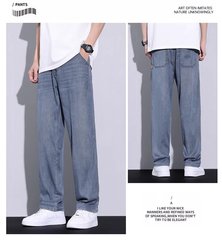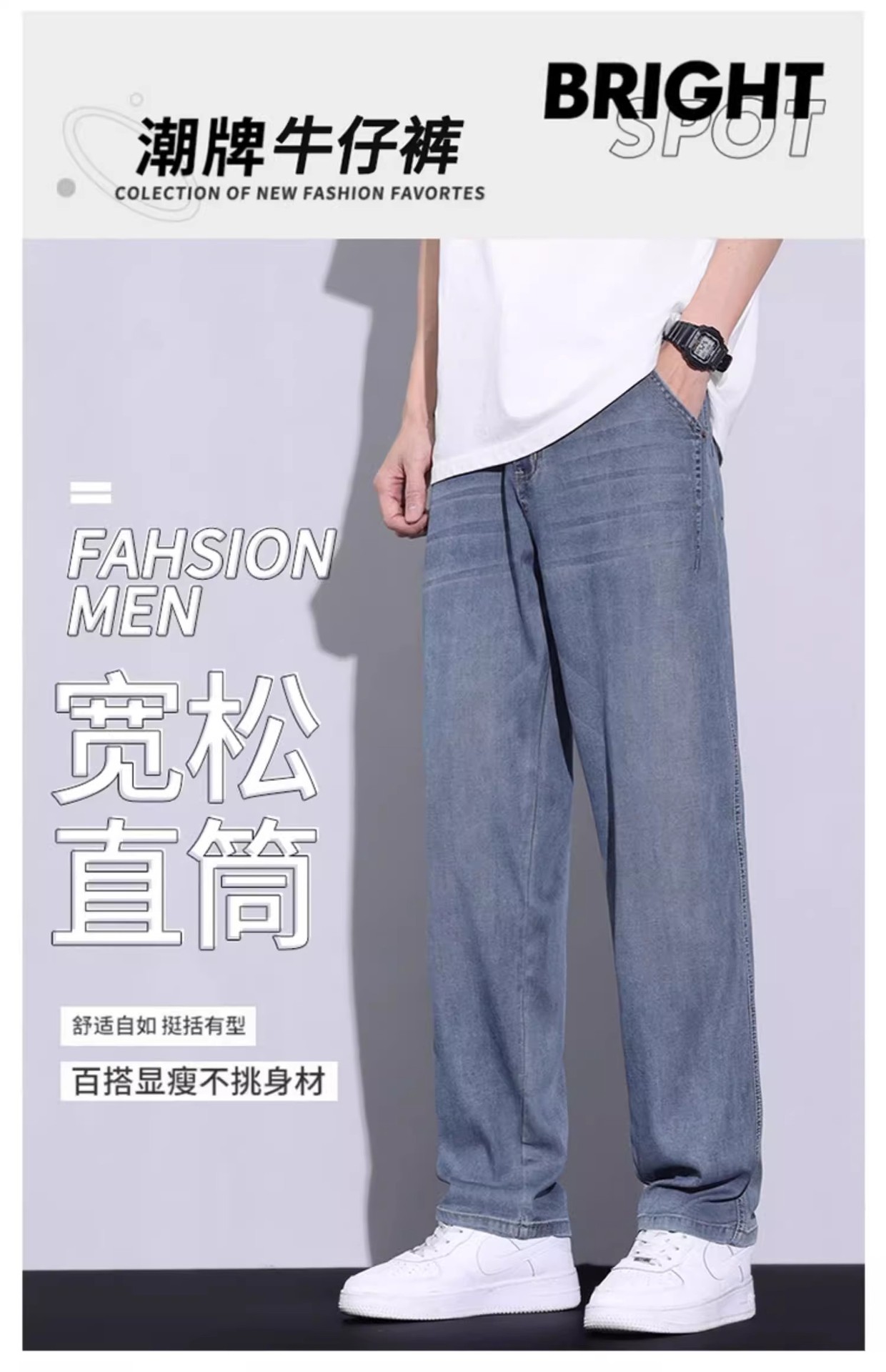 텐셀 스트레이트 청바지 남성용 여름 얇은 새로운 느슨한 넓은 다리 세척 미국 스타일 하이 스트리트 캐주얼 긴 바지
