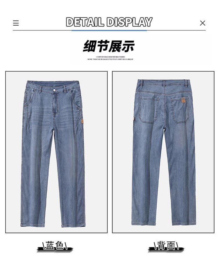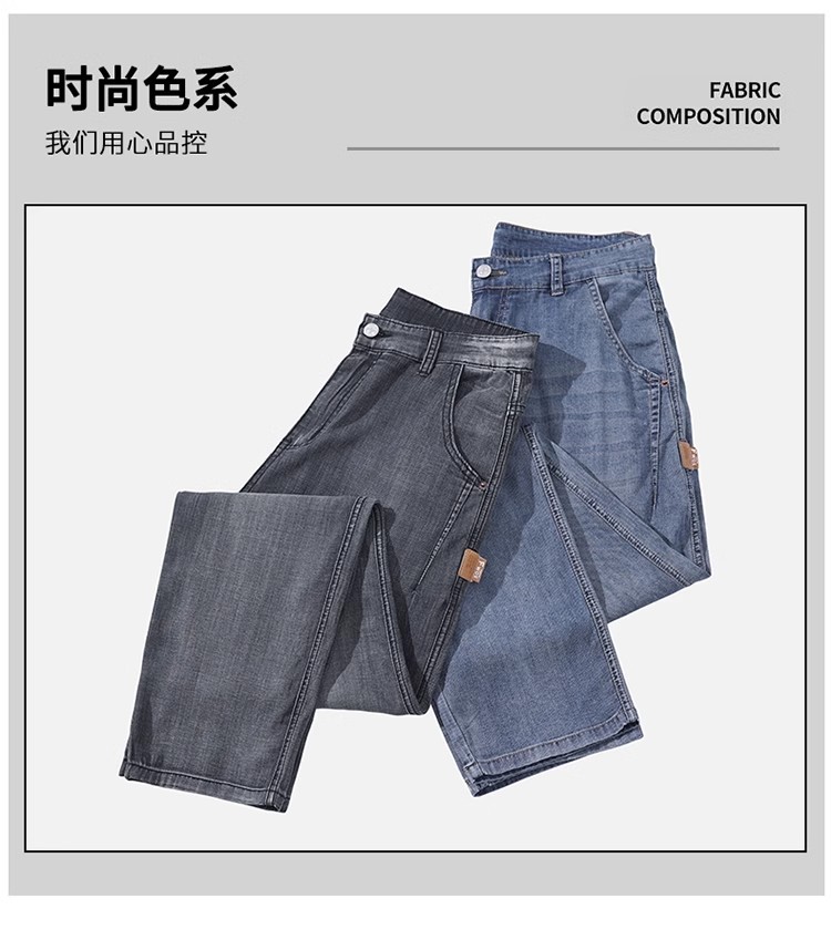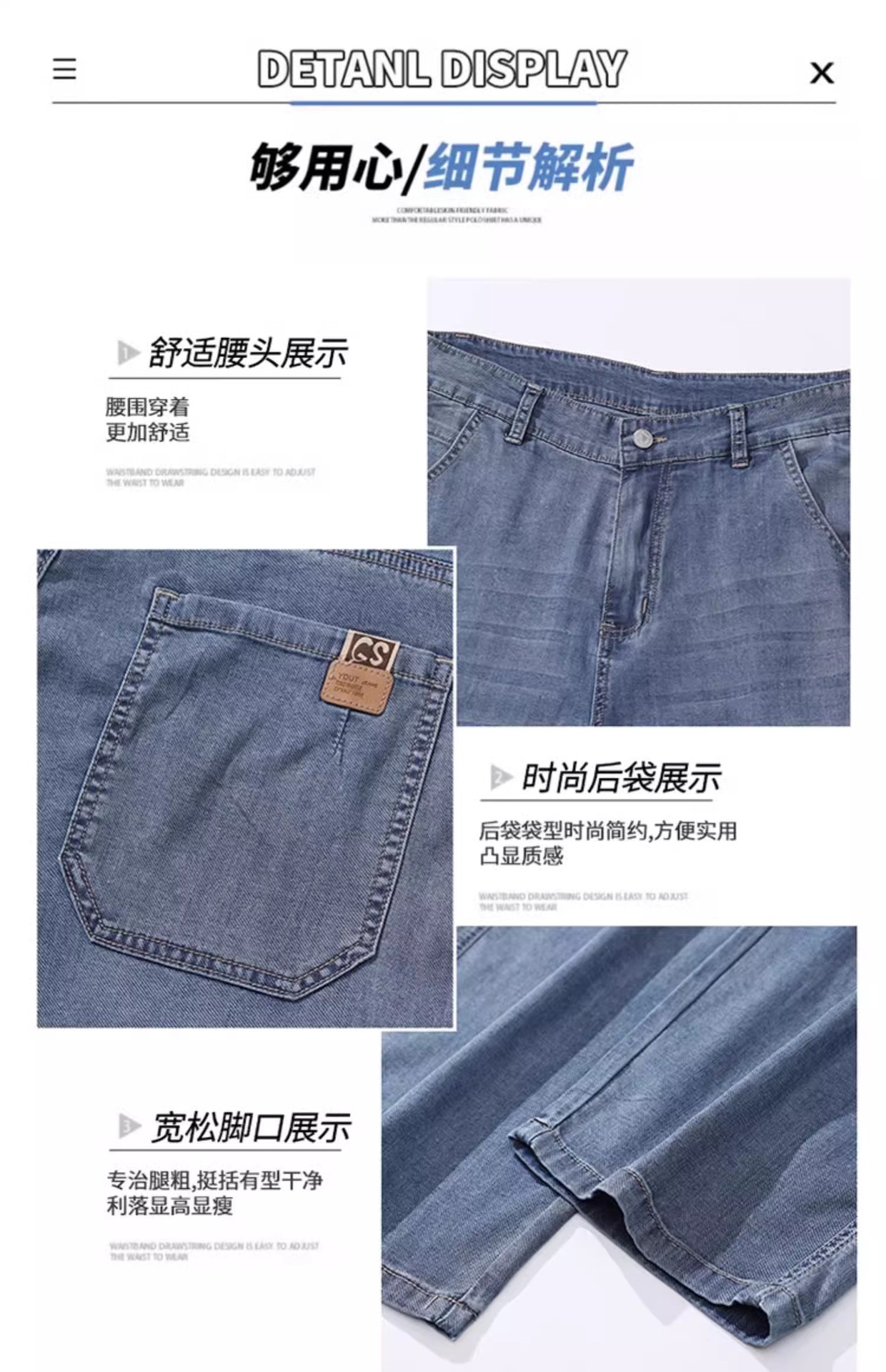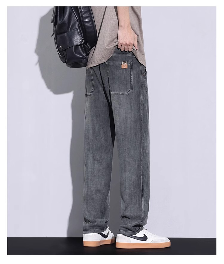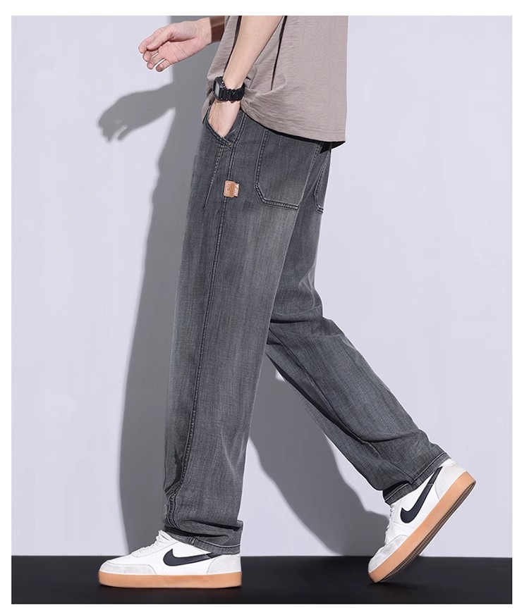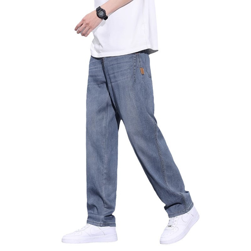텐셀 스트레이트 청바지 남성용 여름 얇은 새로운 느슨한 넓은 다리 세척 미국 스타일 하이 스트리트 캐주얼 긴 바지