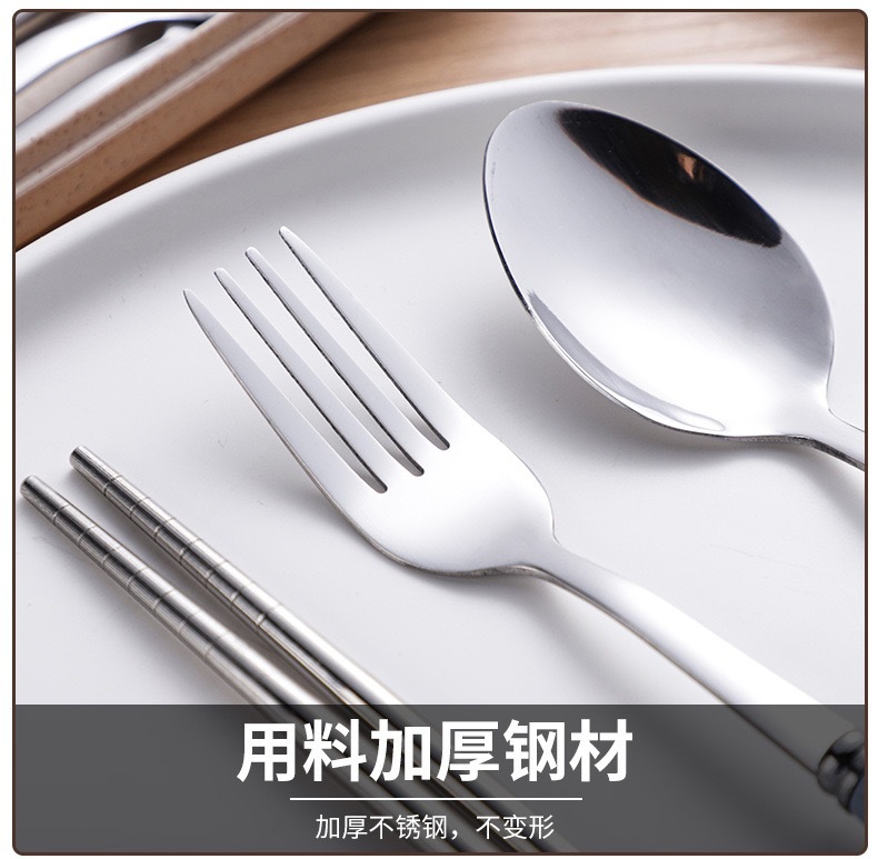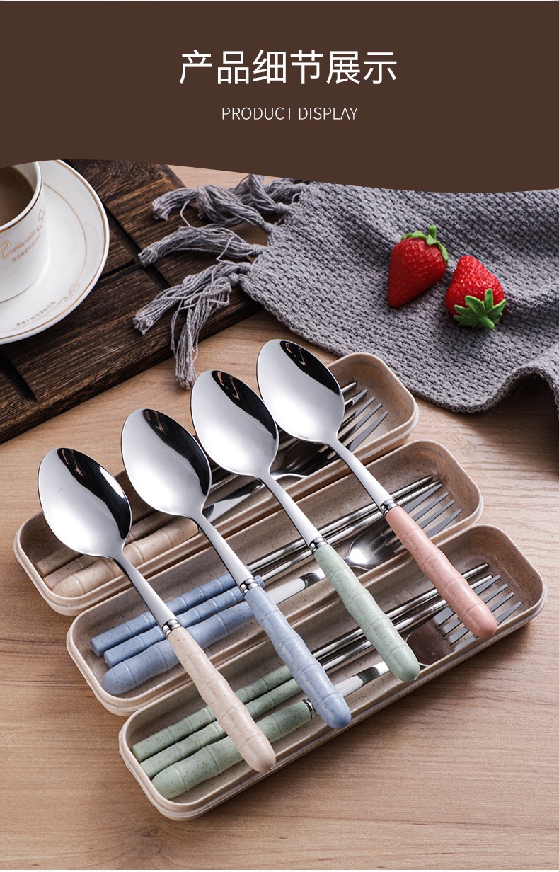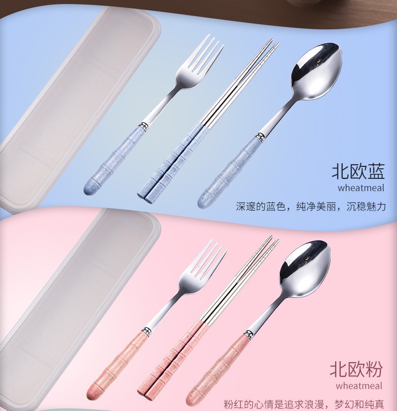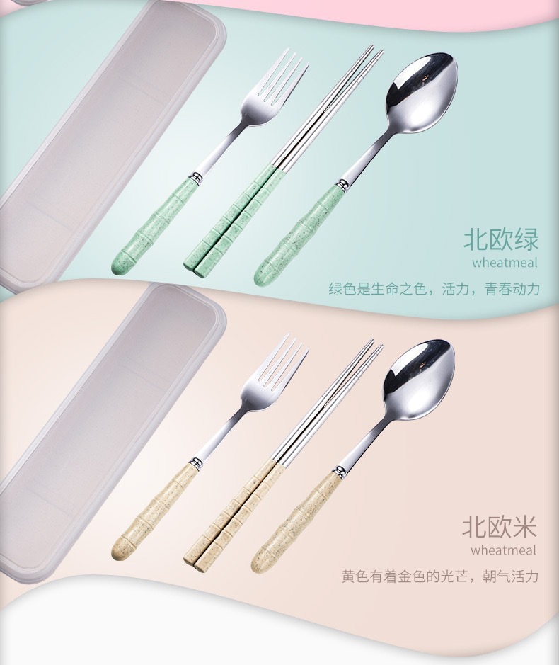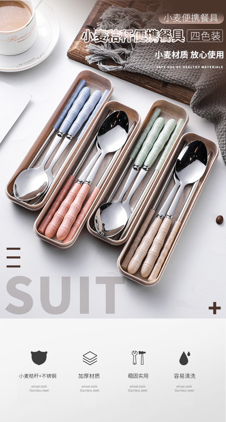 스테인리스 스틸 세트 포크, 스푼, 젓가락 밀짚 3종 세트 학생용 젓가락 스푼 선물 도매 인스타 스타일