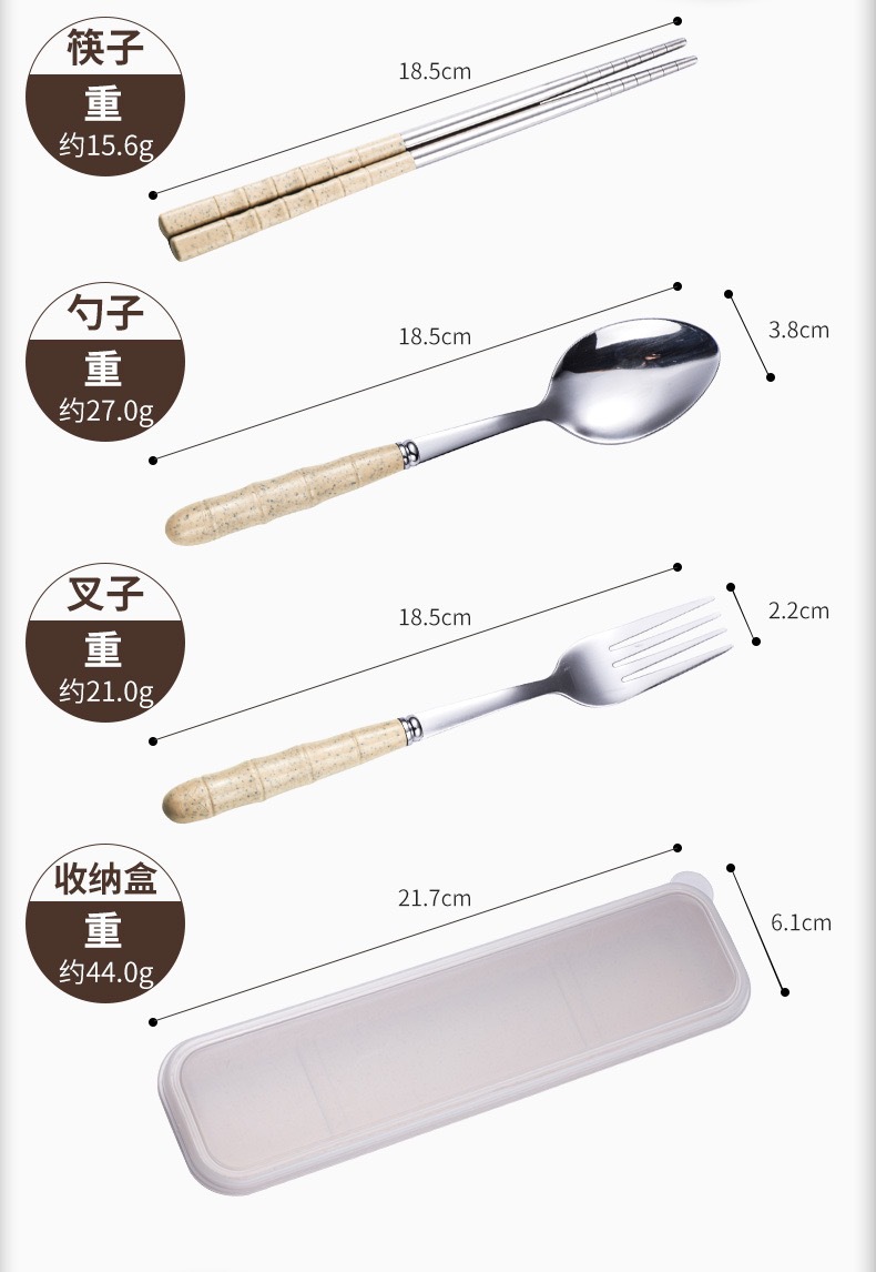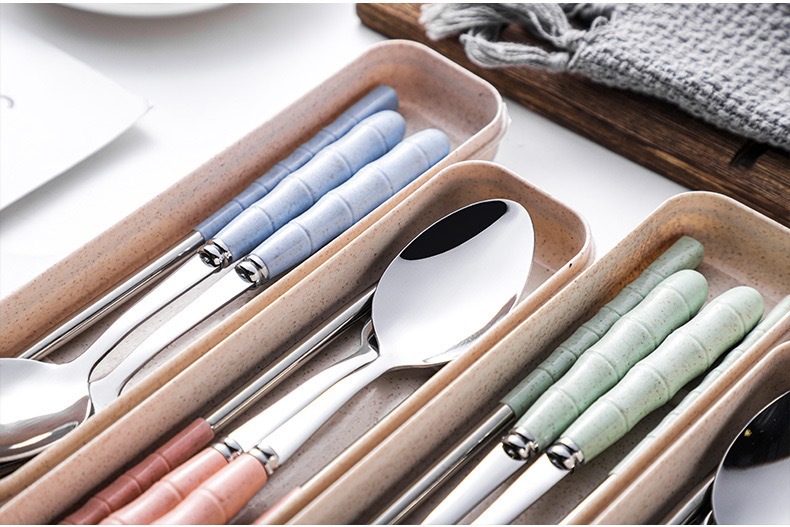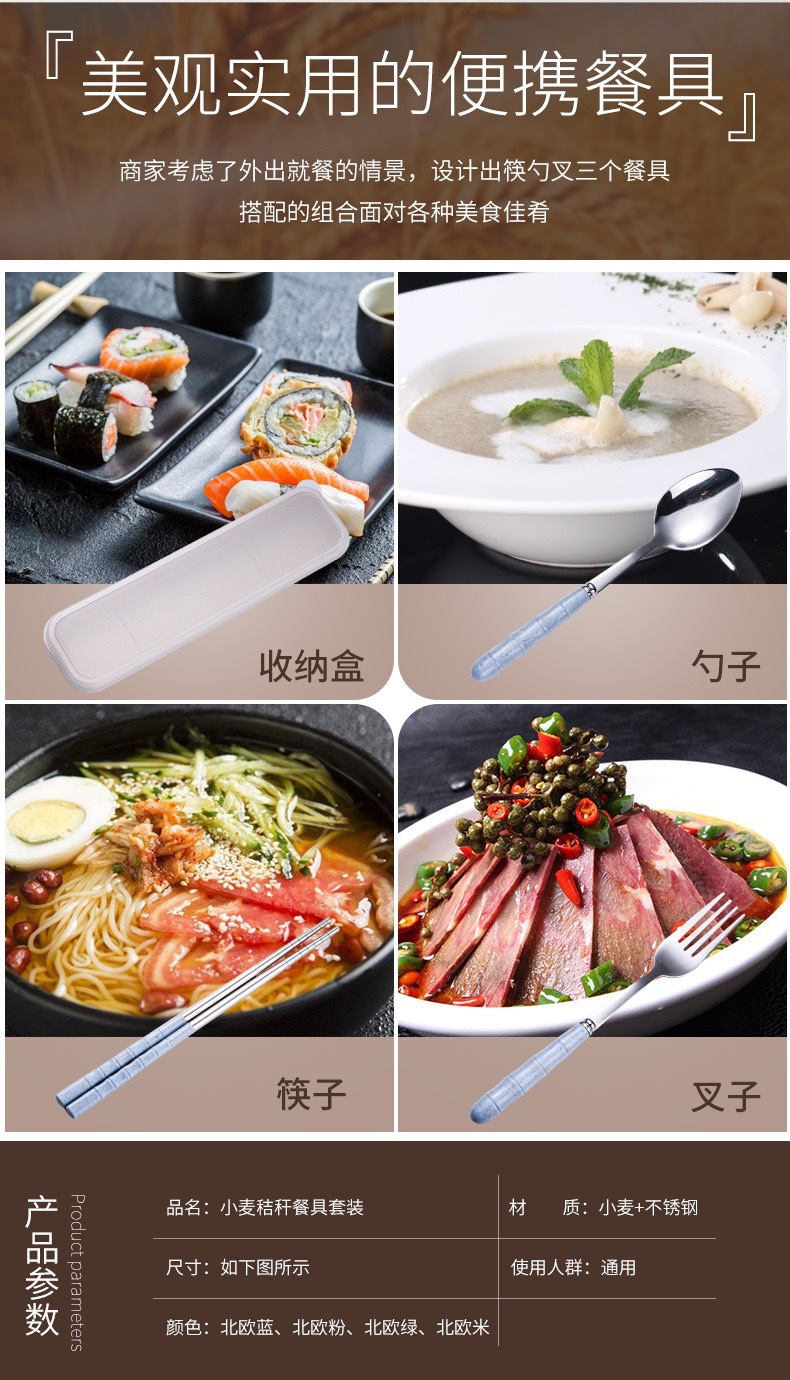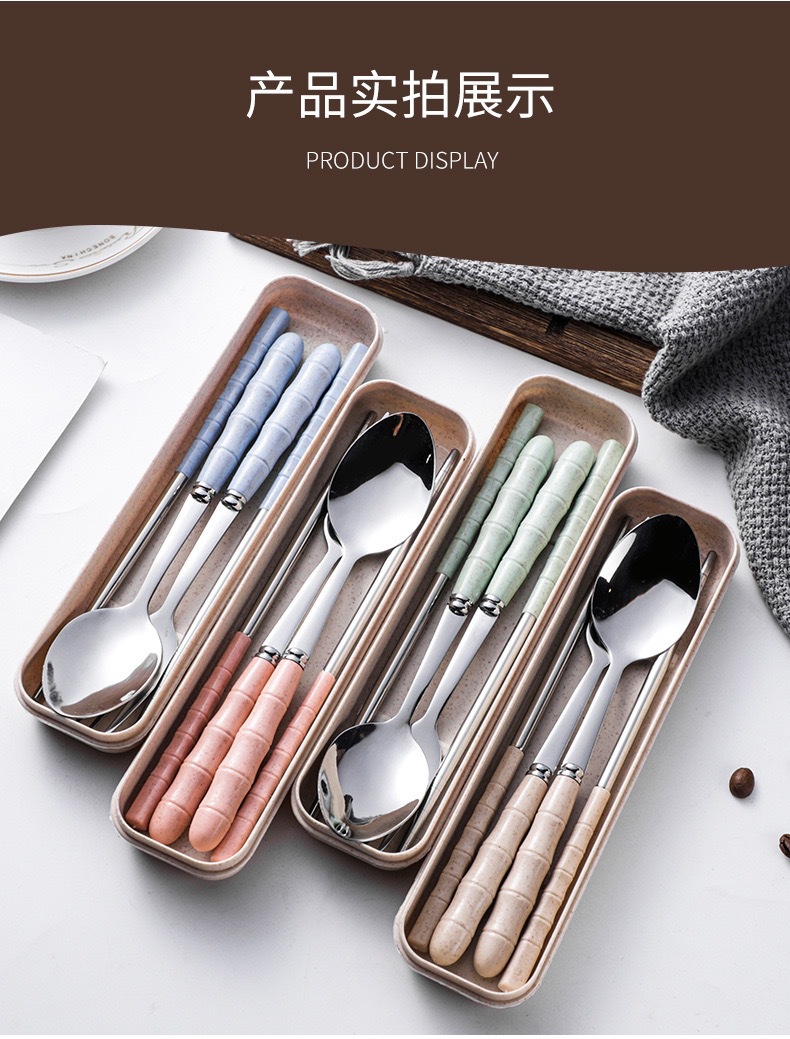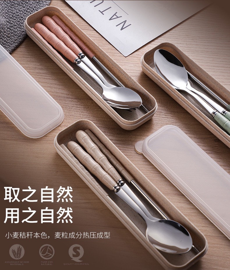 스테인리스 스틸 세트 포크, 스푼, 젓가락 밀짚 3종 세트 학생용 젓가락 스푼 선물 도매 인스타 스타일