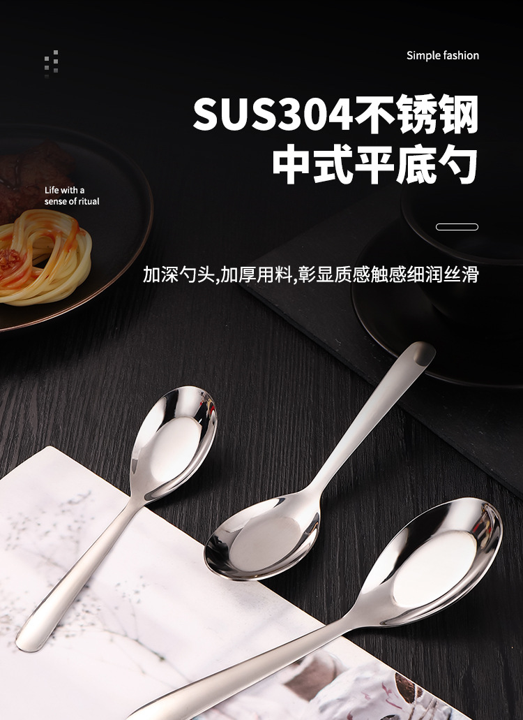 304 스테인레스 스틸 플랫 스푼 식기 가정용 중국 음식 스푼 고급스러운 호텔 스푼 레스토랑 스푼