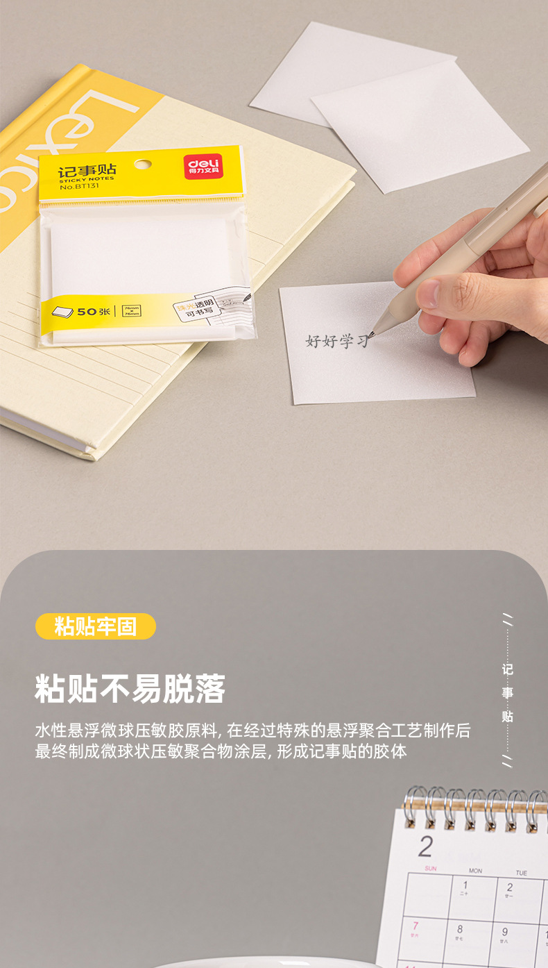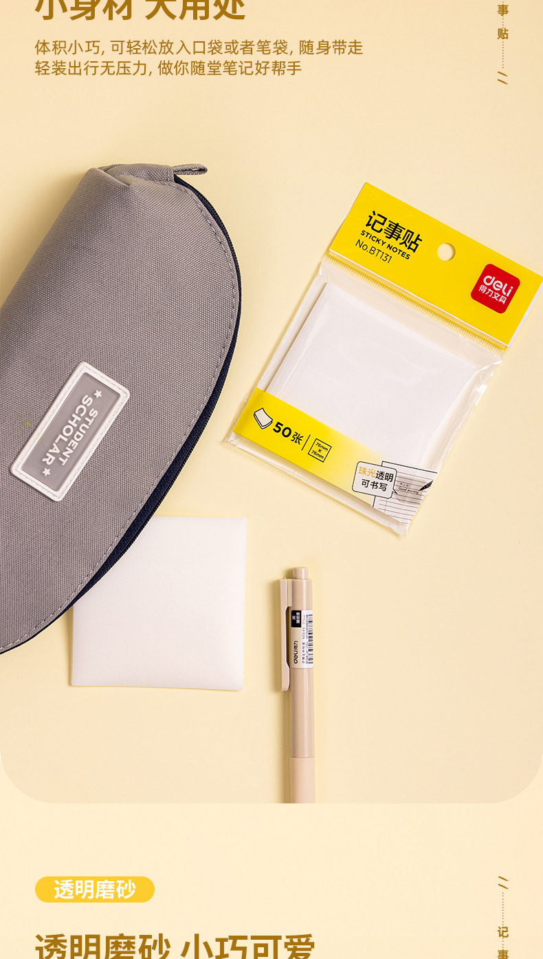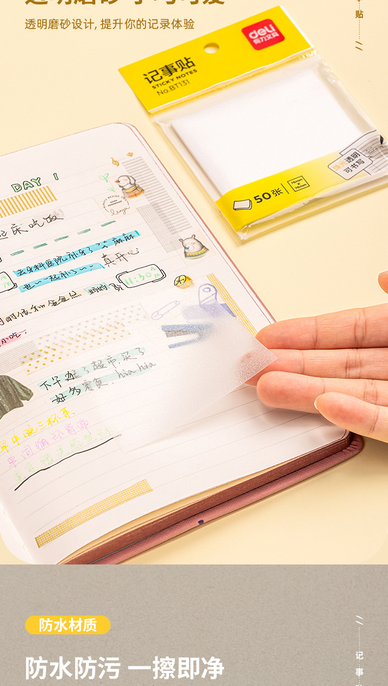 델리 BT131 메모장 76*76mm/50 (투명) 자체 접착 메시지 책 사무용품